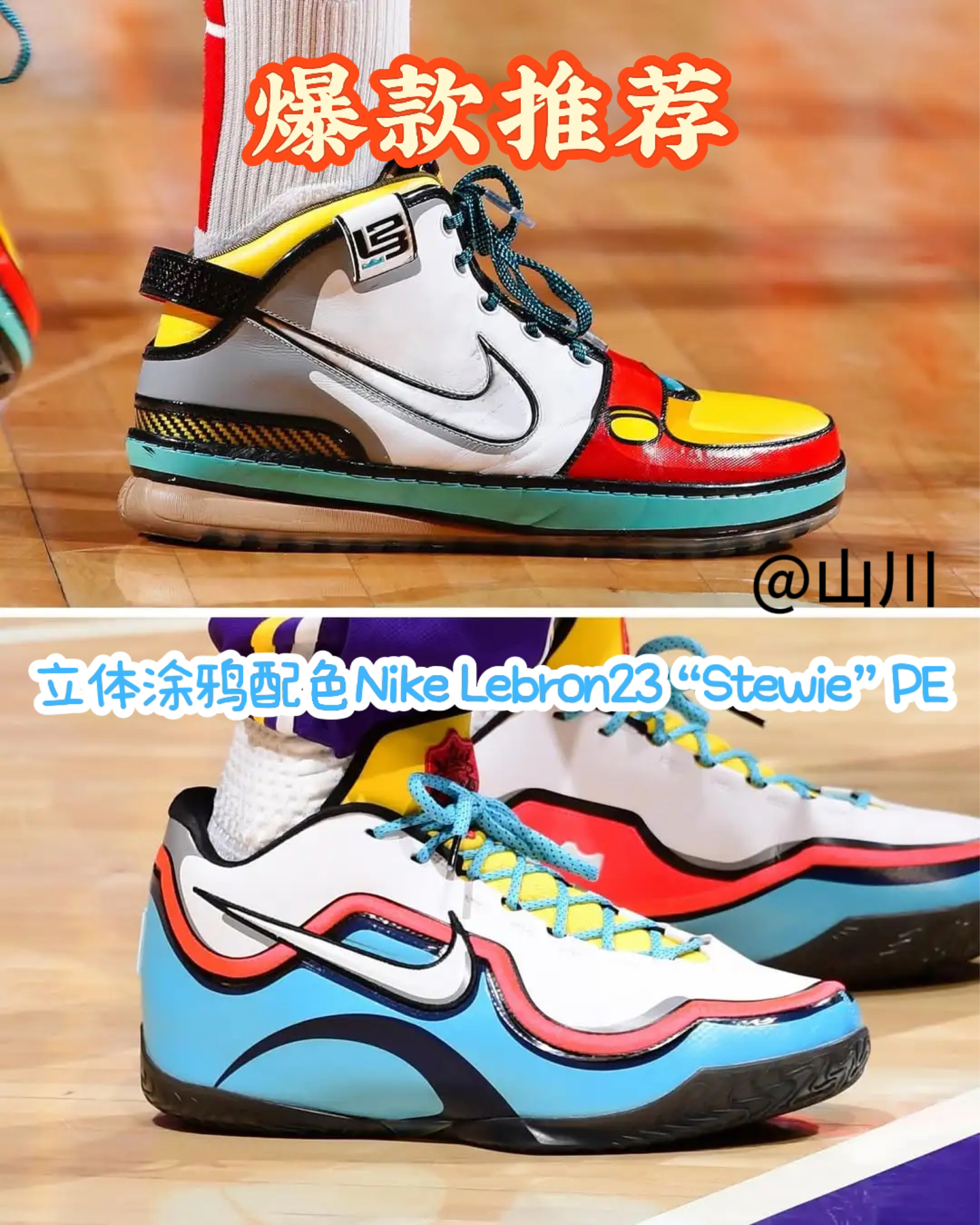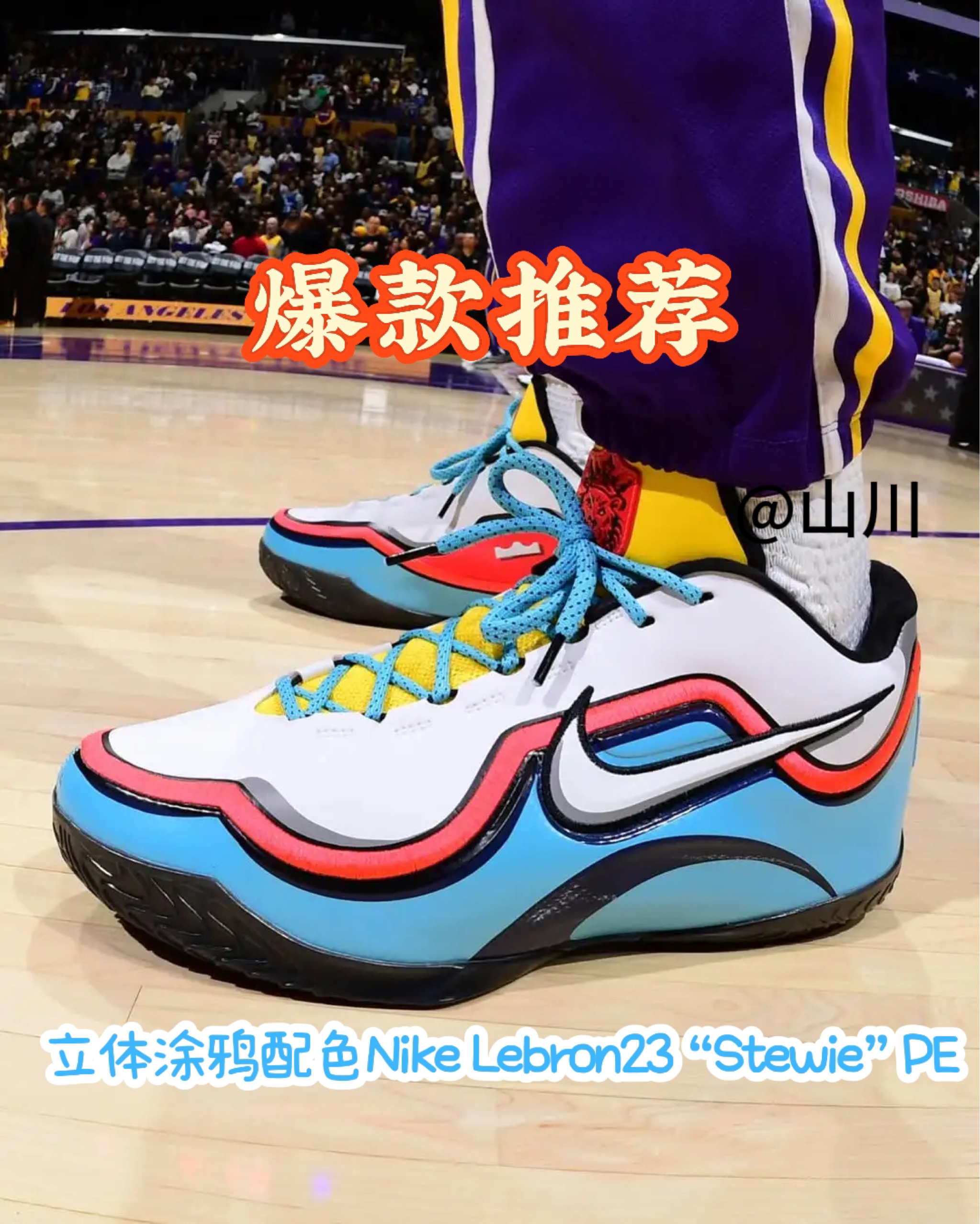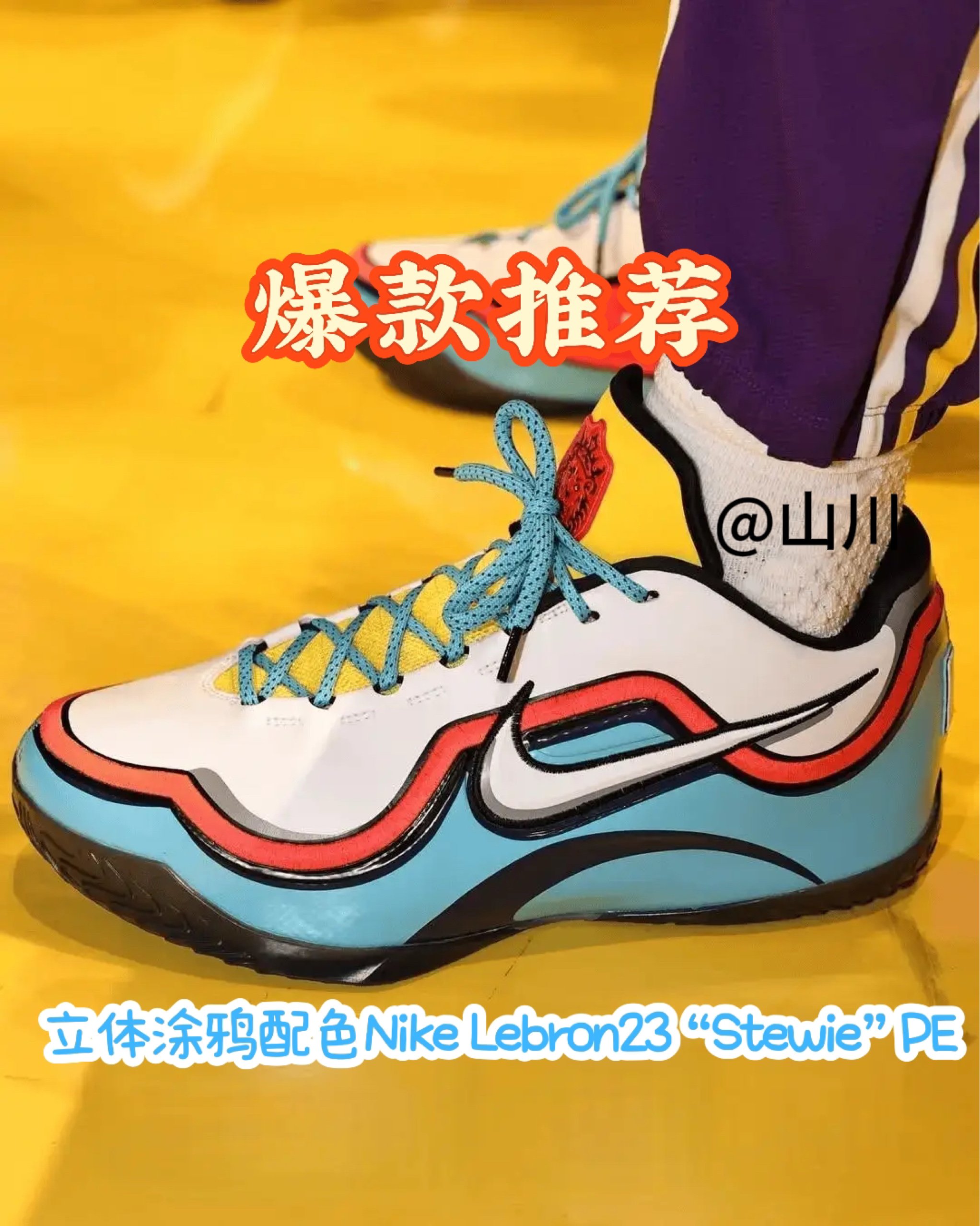 NBA常规赛焦点战落幕,湖人108-125不敌太阳,遭遇一场酣畅淋漓的失利。此役勒布朗-詹姆斯状态低迷,出战31分钟仅10投3中,贡献10分3助攻,进攻端手感冰凉未能带领球队扭转局势,赛场表现略显遗憾。 但赛场之外,老詹的上脚球鞋依旧赚足眼球!本场他选择上脚Nike Lebron23“Stewie”PE,立体涂鸦风格的配色设计极具视觉冲击力,鞋身以鲜明色彩碰撞搭配个性涂鸦图案,瞬间成为场边焦点。...
