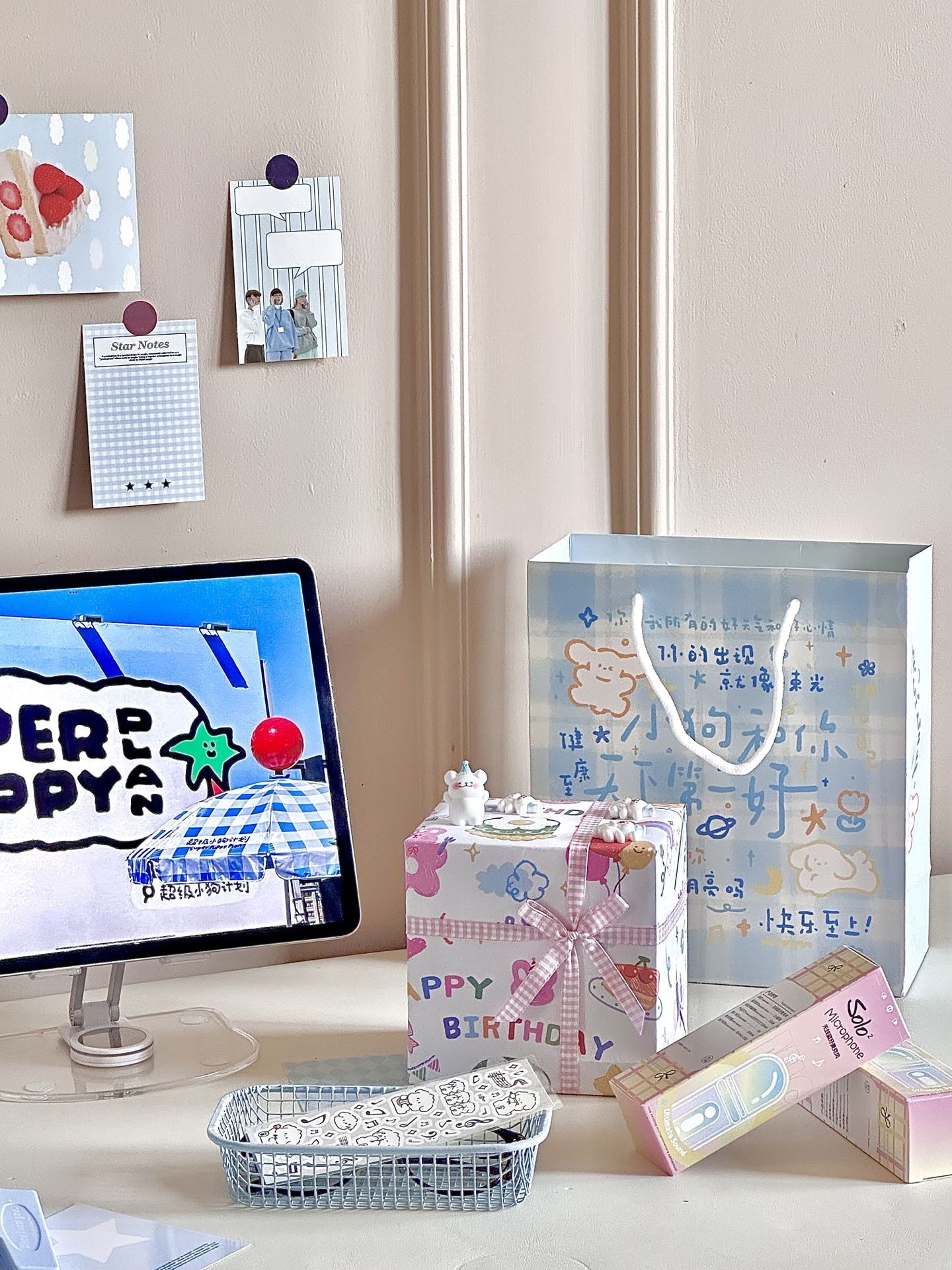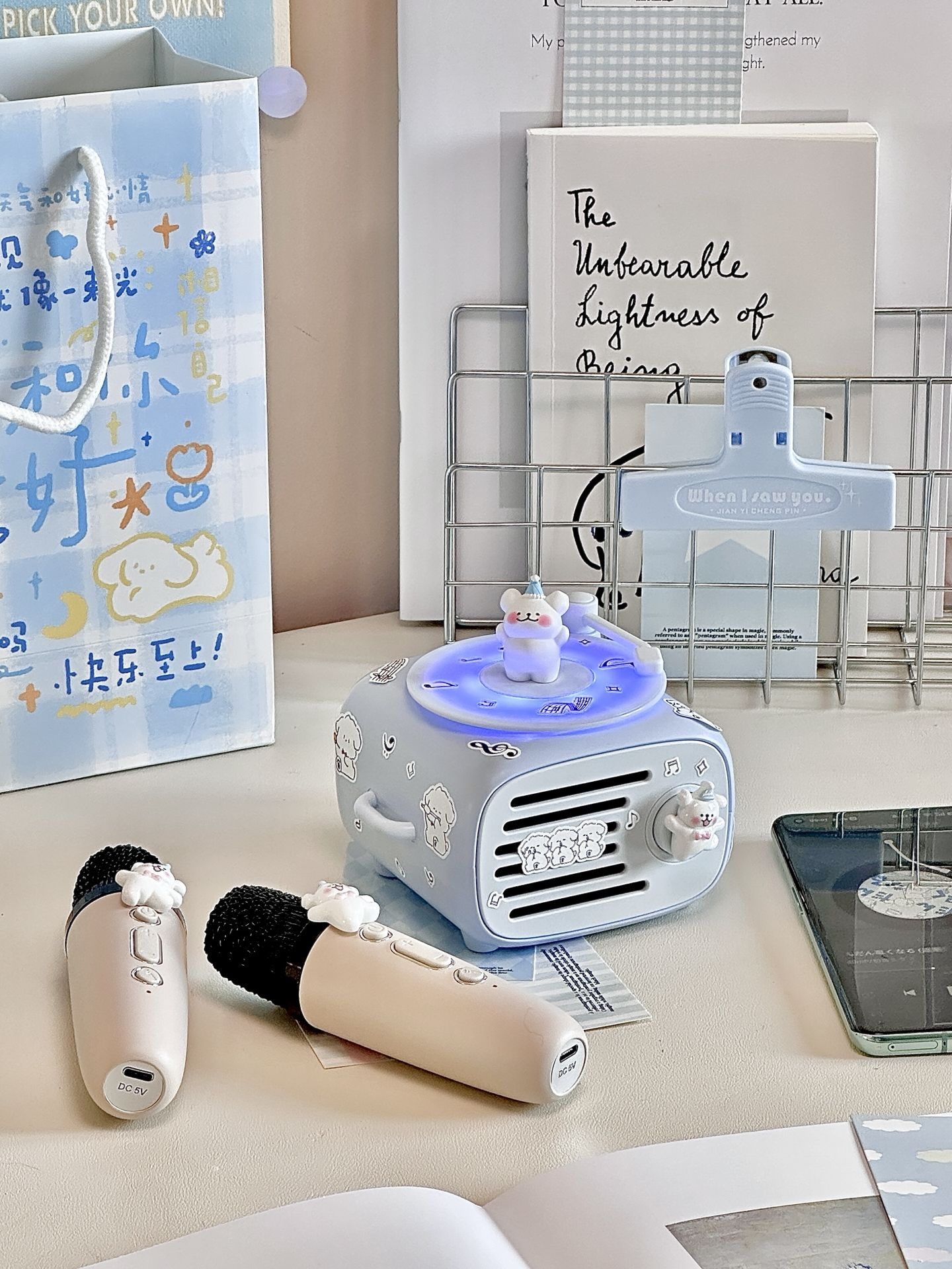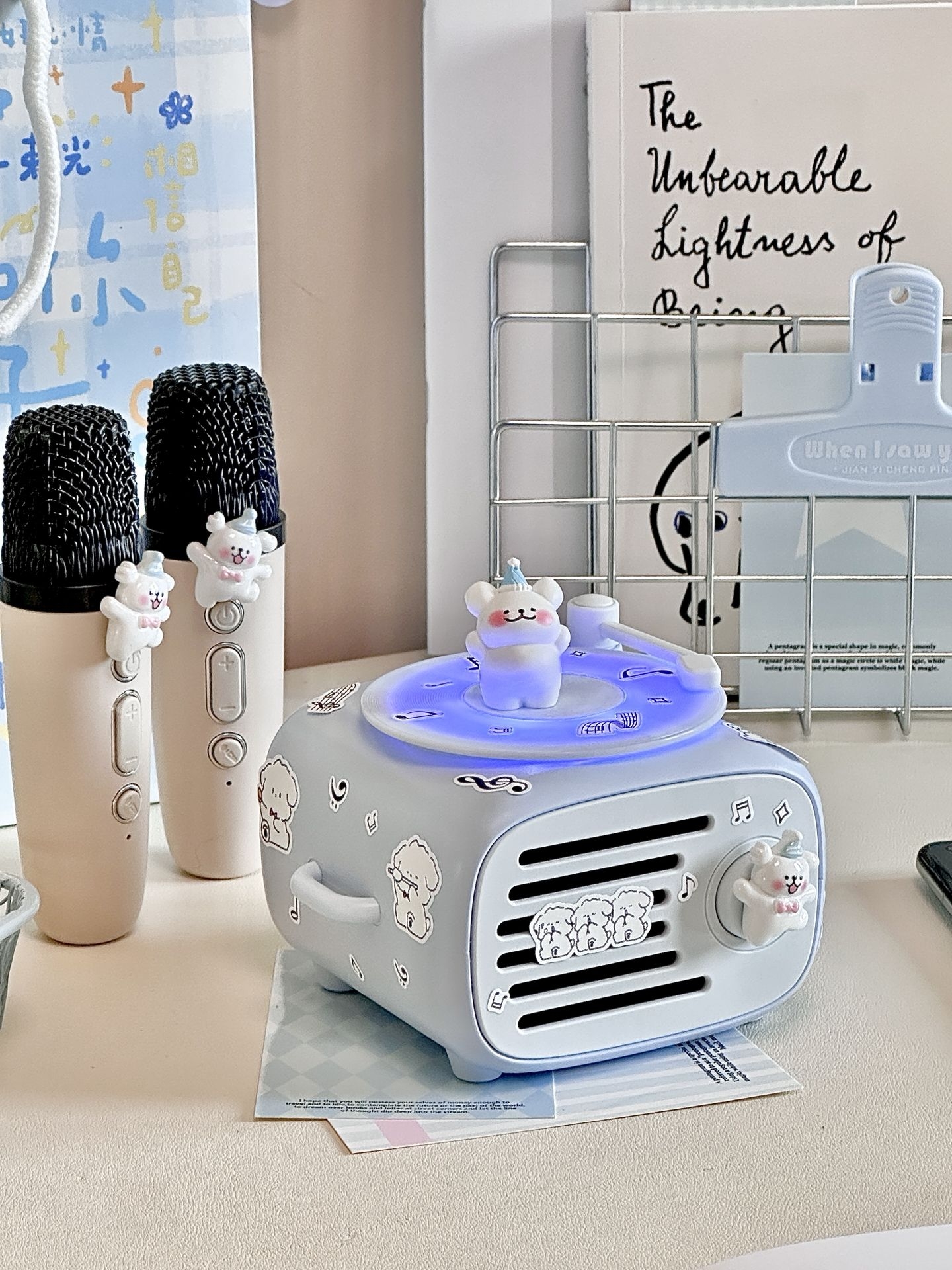 #拯救日常的数码 “小配件” 我永远不会拒绝蓝色!更何况还有小狗诶! 奶呼呼的蓝色🫧真的拿捏住了我的少女心 到手是已经用漂亮的纸打包好了 真的是让我从拆快递的那一刻就开始心动 让我惊喜的是连接蓝牙,转盘还会跟着音乐转动🎵 我用自带的配件浅咕了一下 一个奶蓝色的迷你桌面音响Get 还搭配2支🎤!爱k歌星人狂喜! 已经气成丹田的唱了一下午啦~~~ #高颜值桌面蓝牙音响 #520送礼新灵感 ...