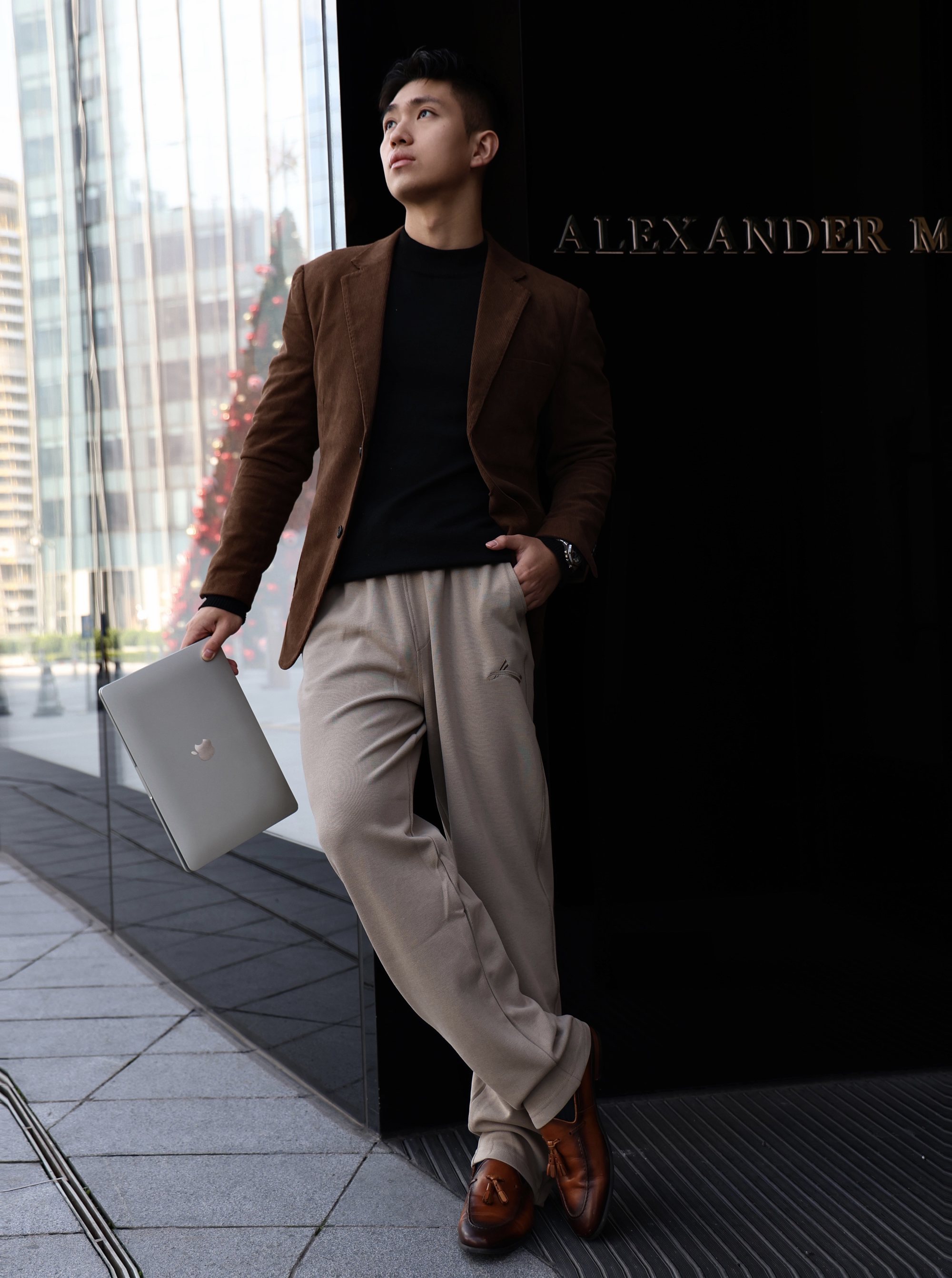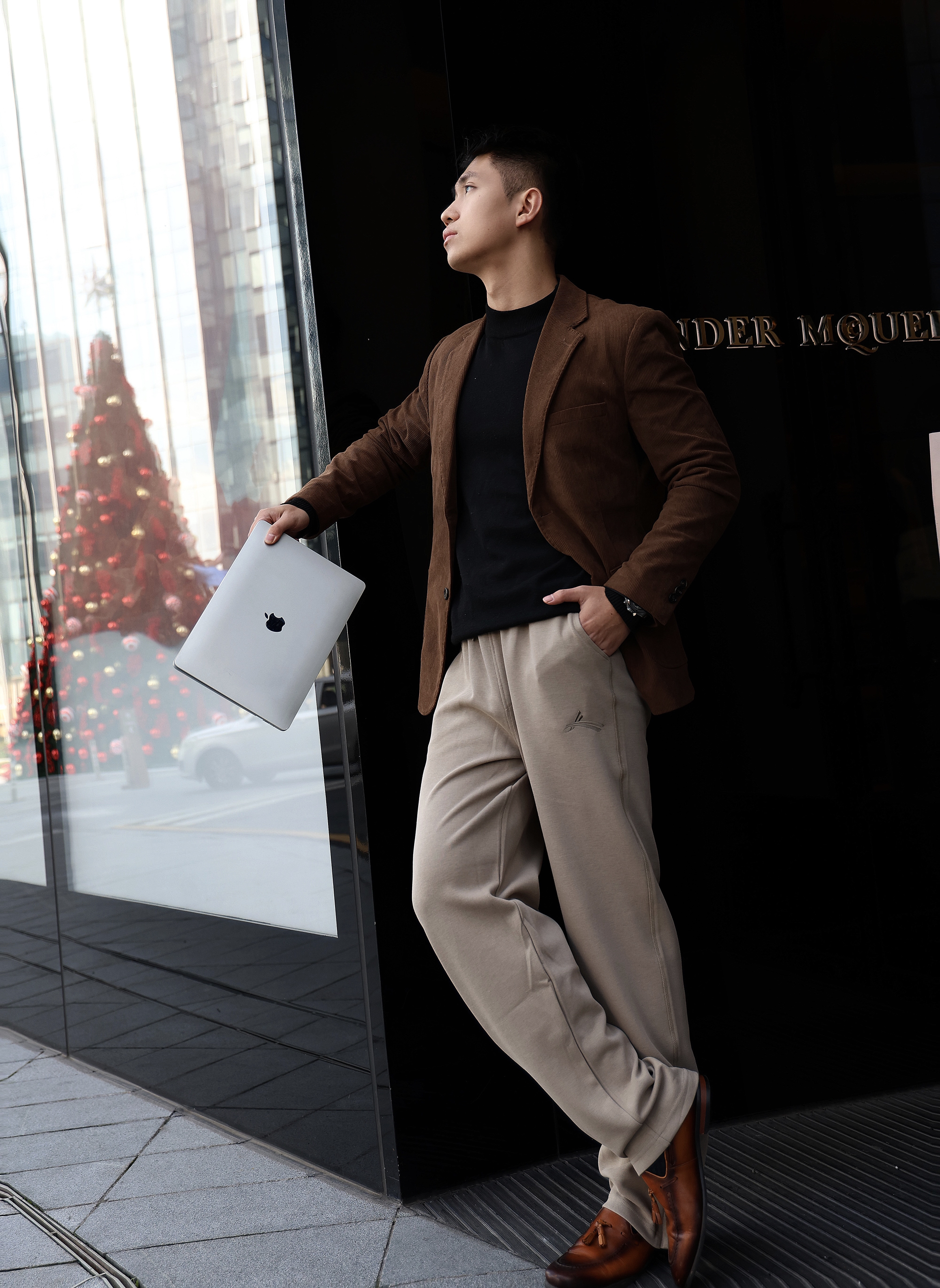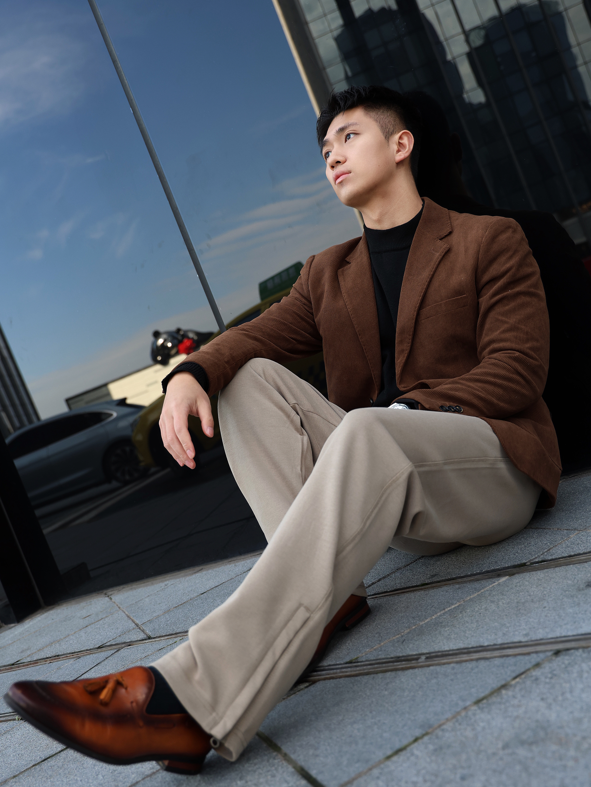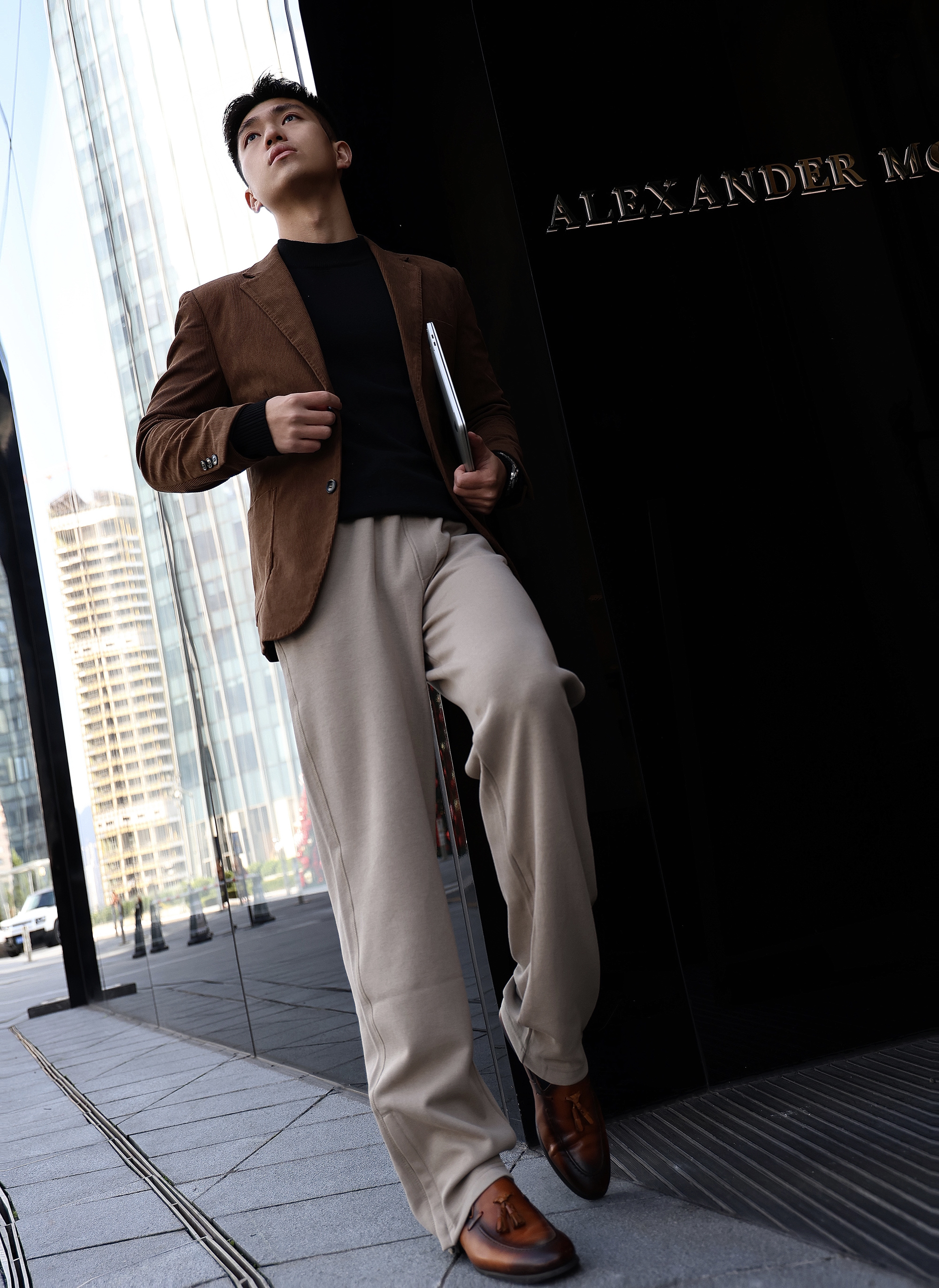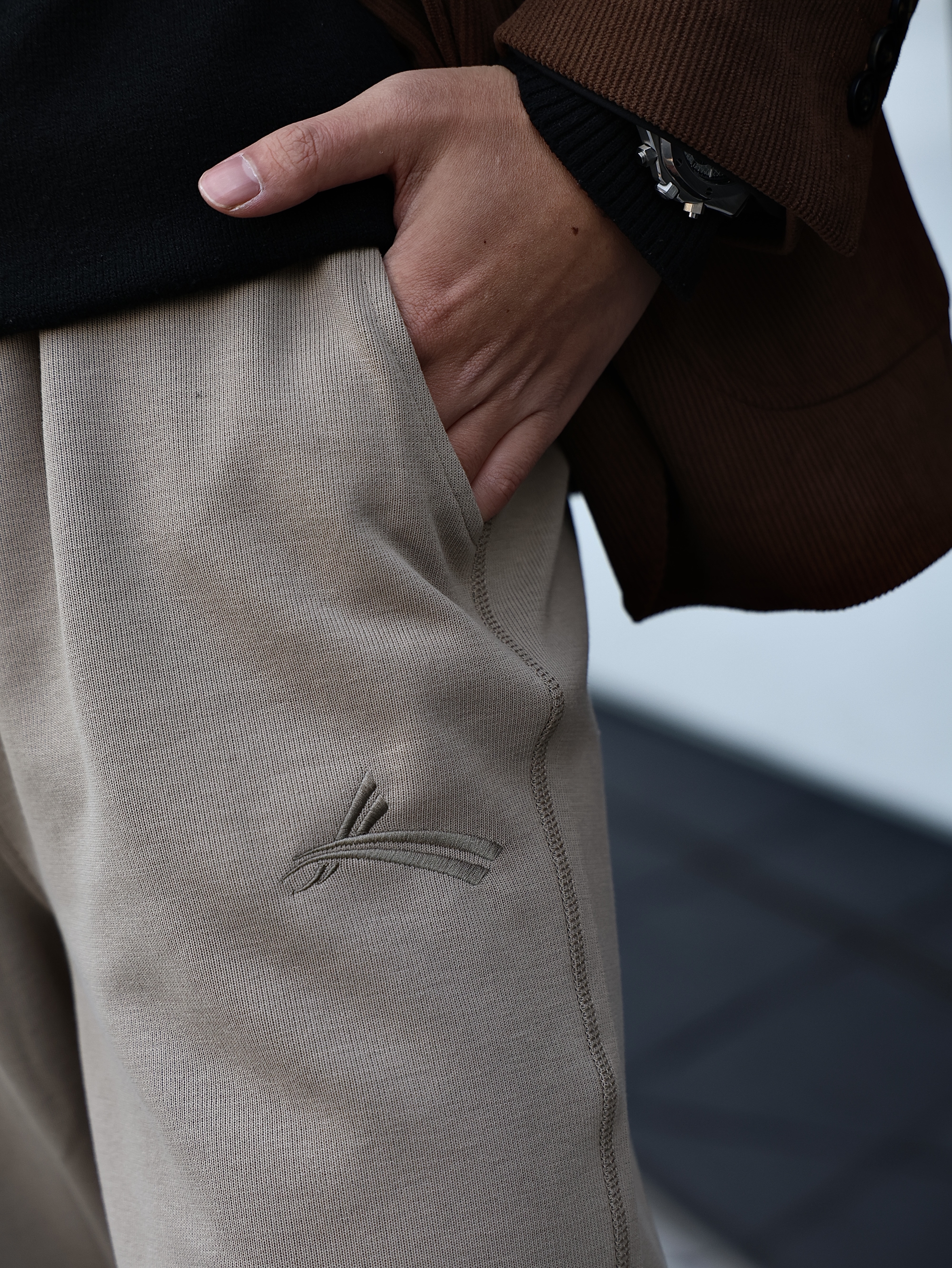 今天上身咖啡色西装➕沃兰迪休闲运动裤 不紧绷的同时还会显腿长效果 微宽松版型真的很棒