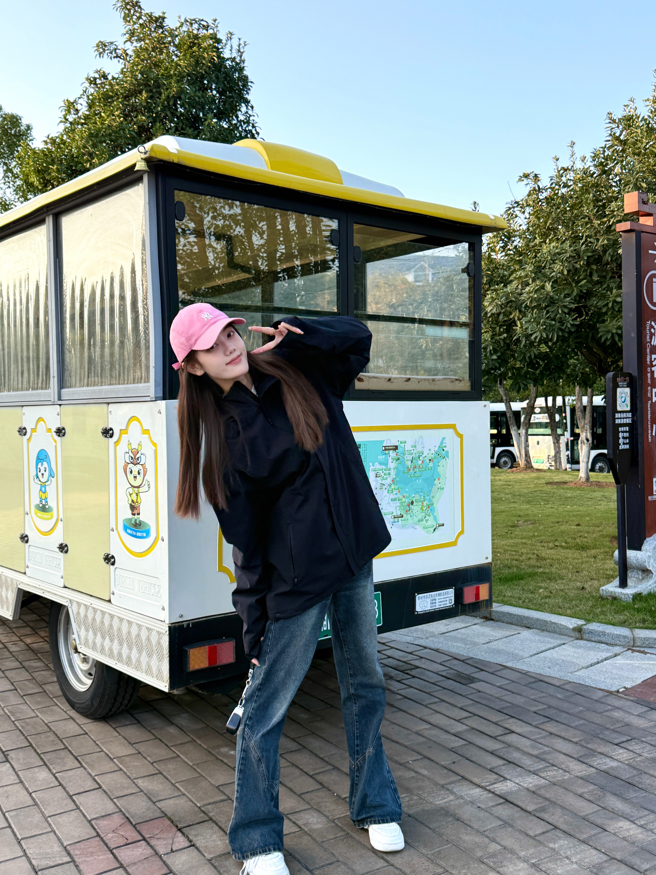今年超火的“户外甜酷风”!粉色MLB帽子不仅显白,还瞬间打破了黑色外套的沉闷。🐾 骆驼冲锋衣的宽松版型藏肉又显瘦,和微喇牛仔裤组成“上宽下窄”的万能公式,巨显腿直!
