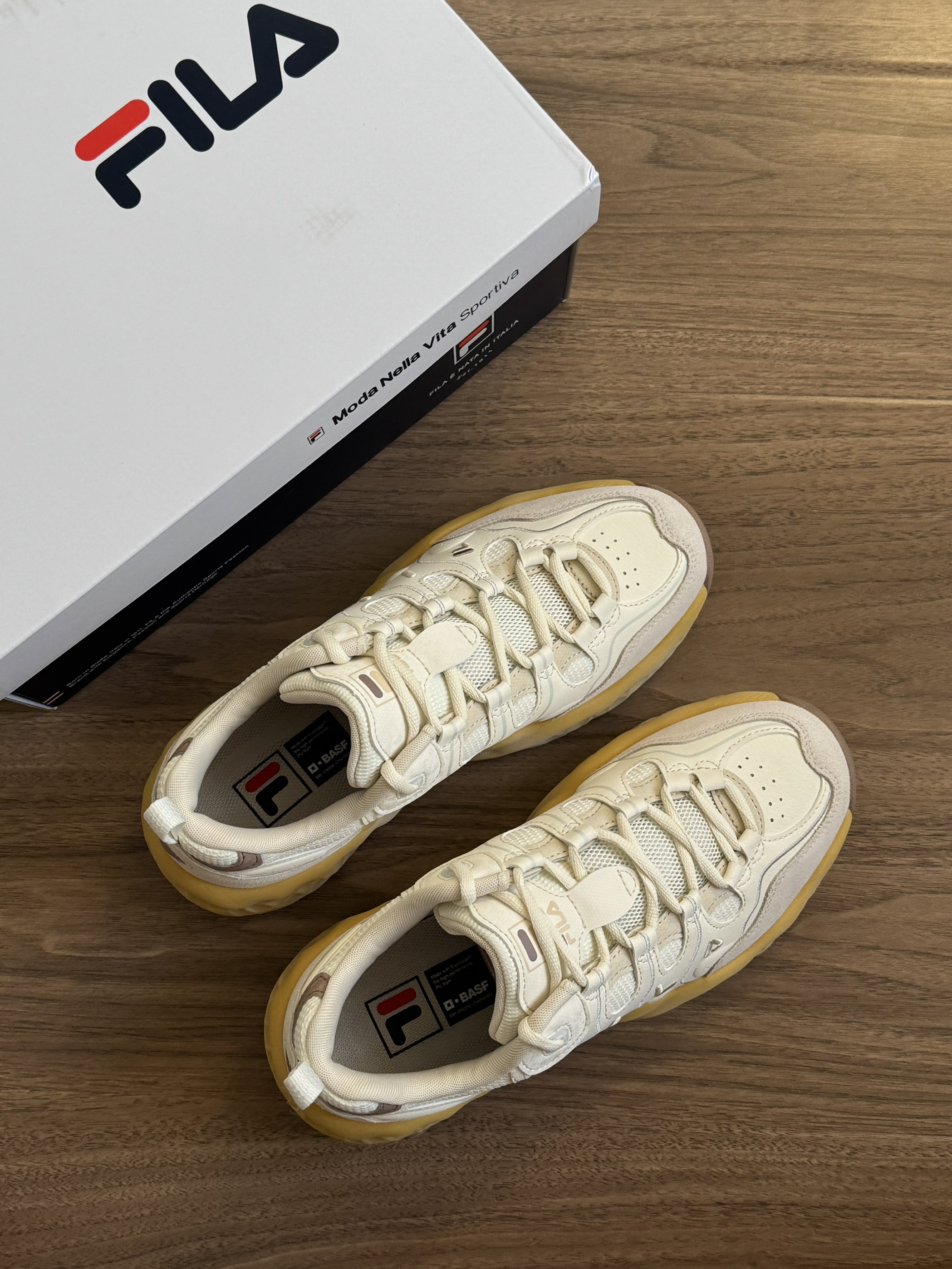 真的美到我了✔️ 脚感超级好的FILA老爹鞋👟 上脚很轻很显高~ 鞋子的配色也很好看,很温柔☁️ 穿着很好走,搭配阔腿裤好显身材比例!