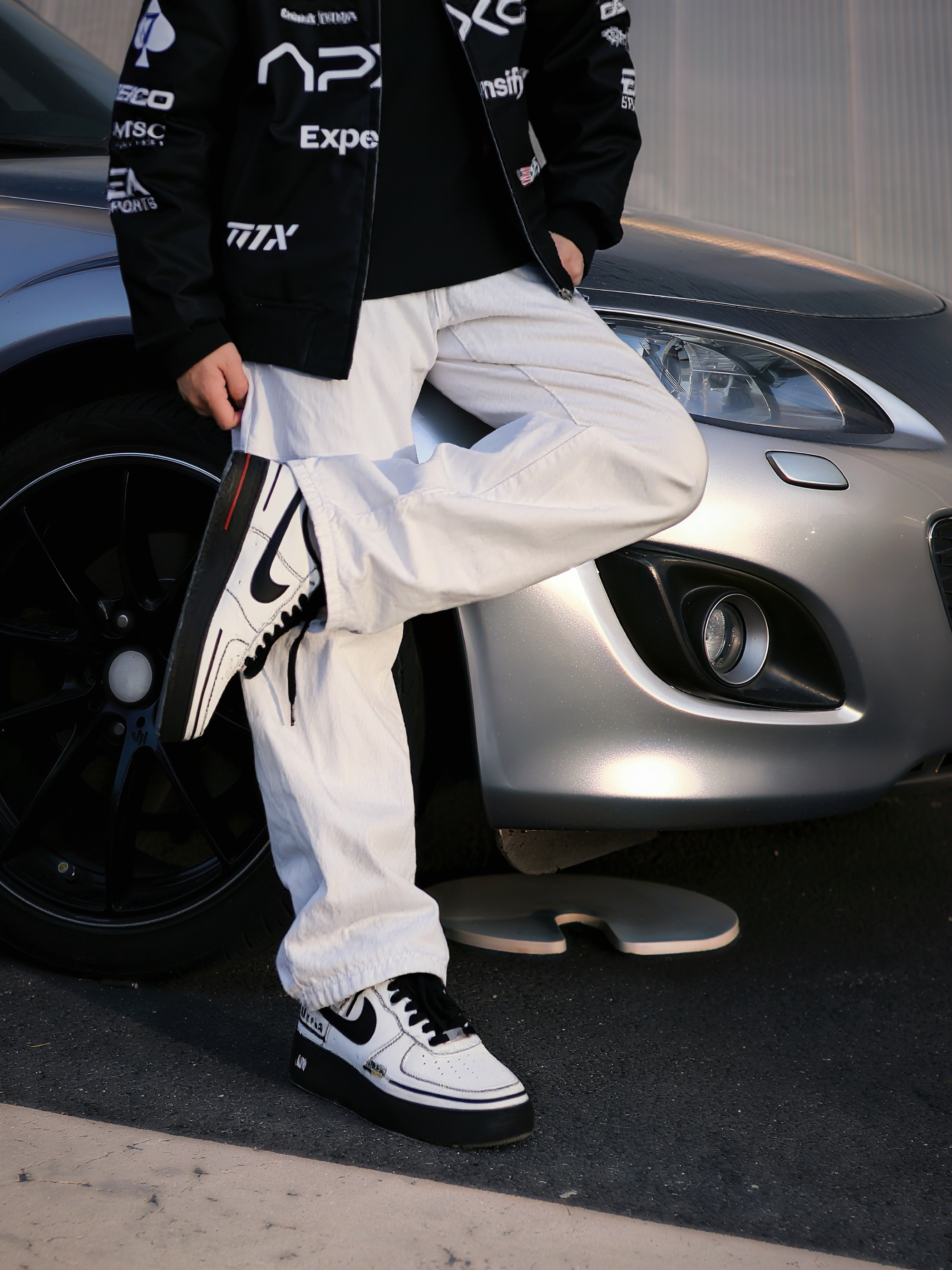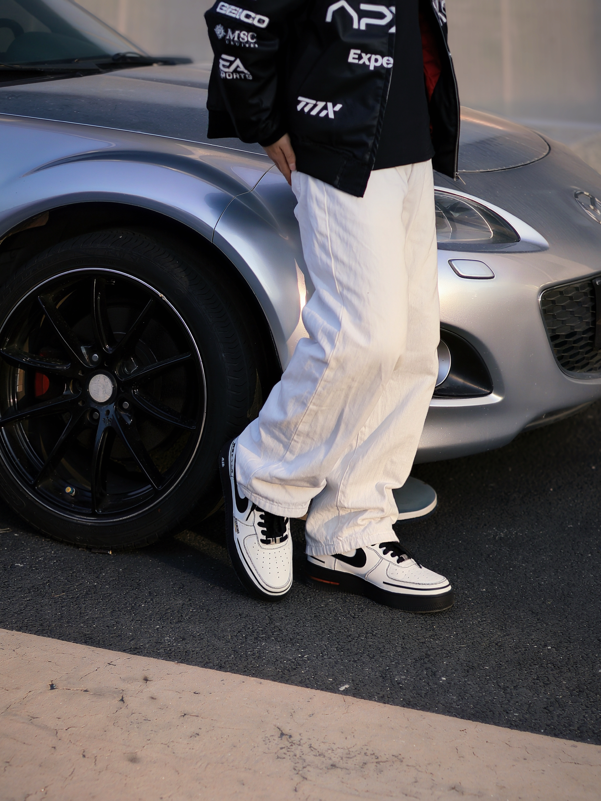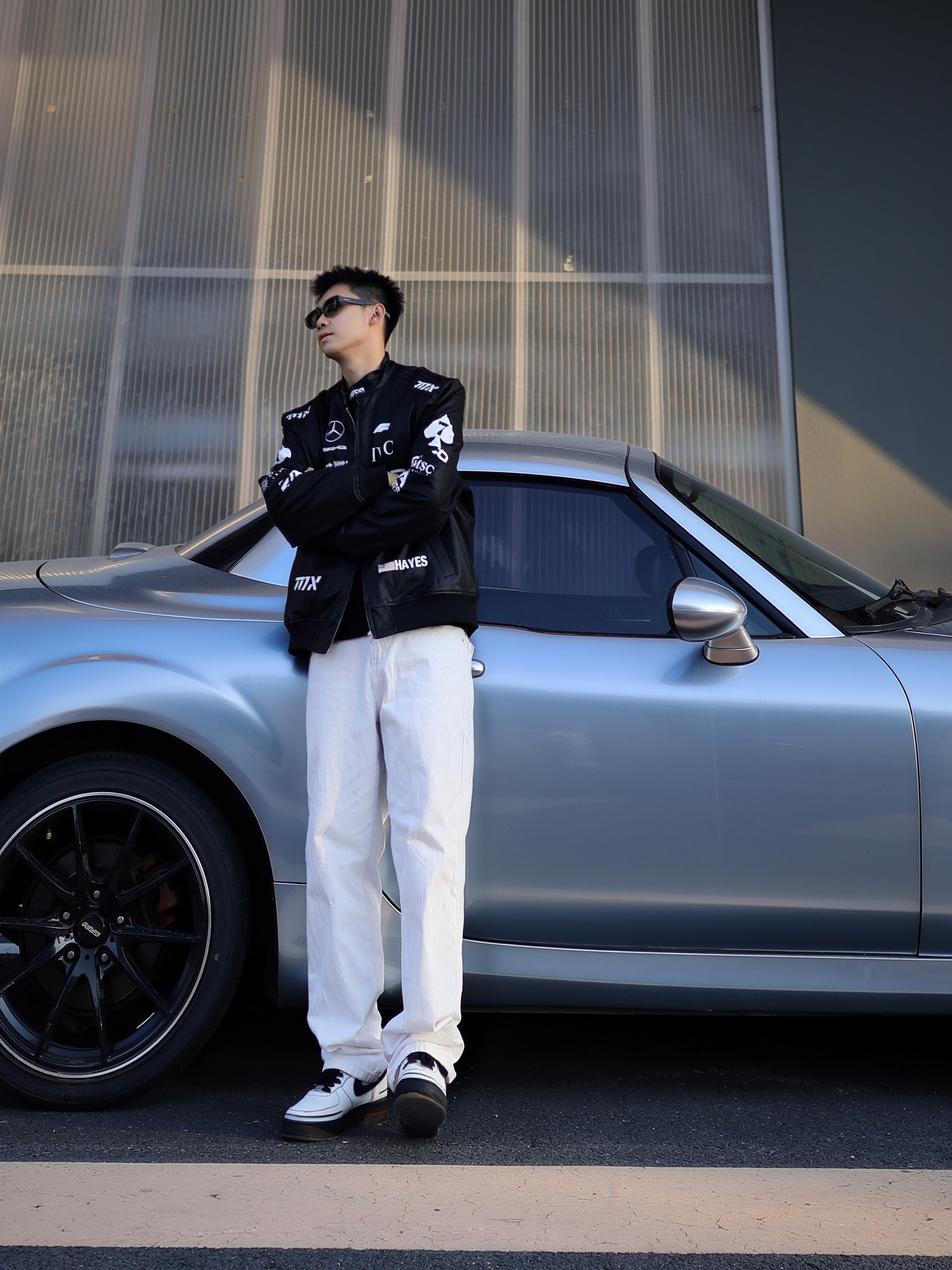 冬天机车服潮酷出街! ⬇️⬇️⬇️ootd 上身一件xx机车服 美式赛车字母满印 硬朗中自带复古感 下搭一条白色牛仔裤 更显简约干净 鞋子选择了nike空军一号 手绘设计暗藏小心机 最后再搭配一幅墨镜呼应起来 黑白搭配 出门轻松炸街💥