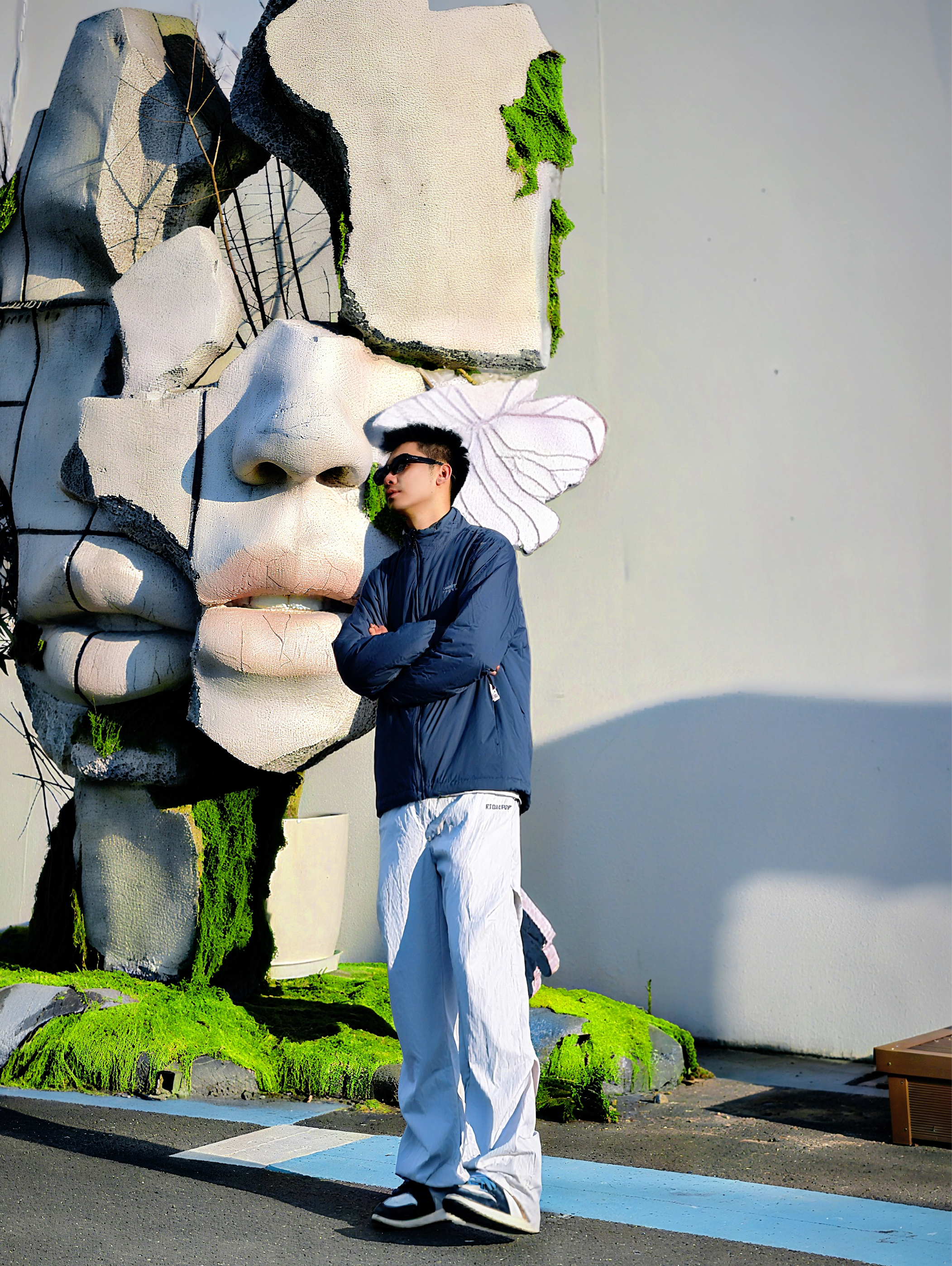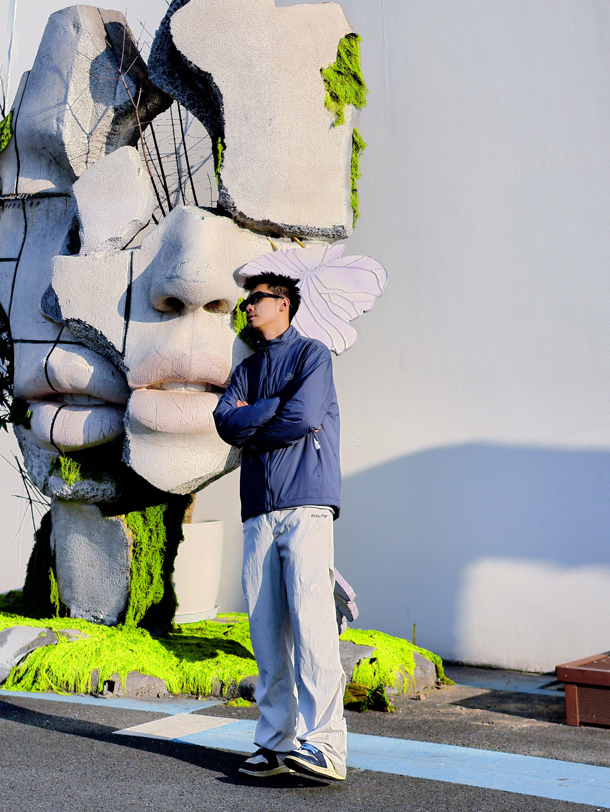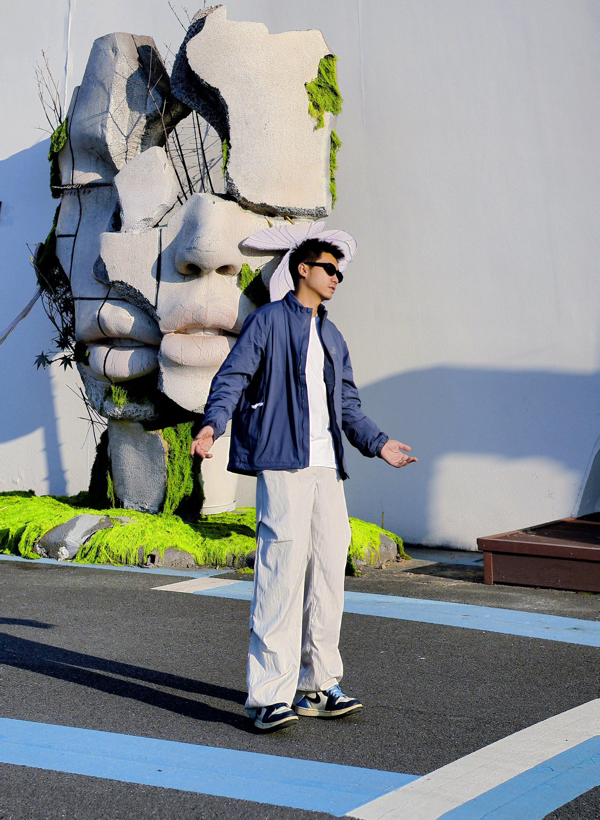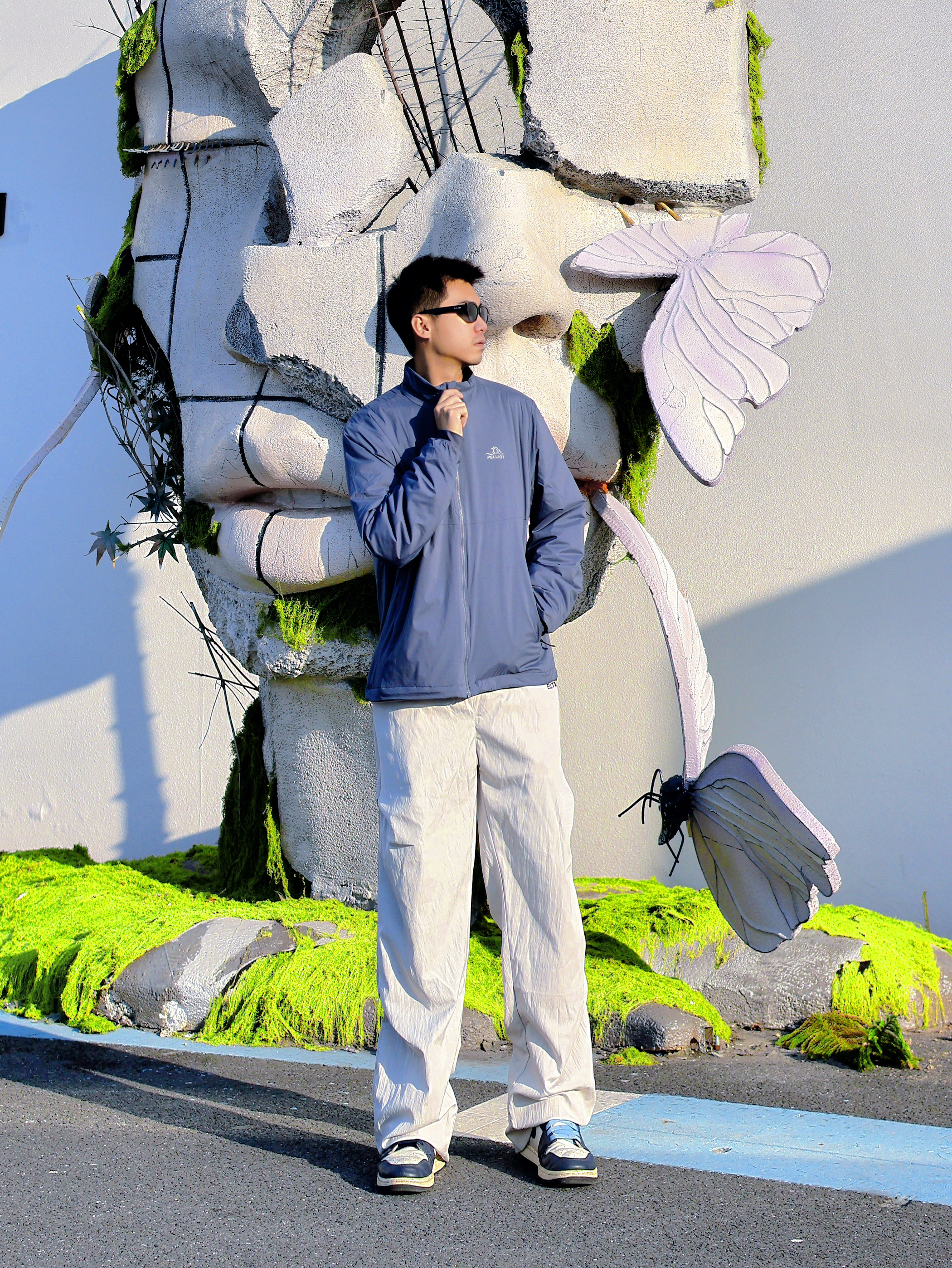 复古穿搭🧶藏青色太有感觉啦! 想要穿搭有亮点🌟撞色技巧要学好!! 例如我今天这套 利用基础的撞色 穿出复古🛹街头感~ 首先一件 PELLIOT 幽蓝棉衣 虽然轻薄但不失保暖性,穿起来不会显得臃肿 光是这一点我真的很喜欢!!🤤 裤子来一件白色弯刀裤更显气质 鞋子选择双白蓝aj1颜色上下呼应 再利用一副墨镜增加亮点 这样一套出街 可以说又帅又有回头率~