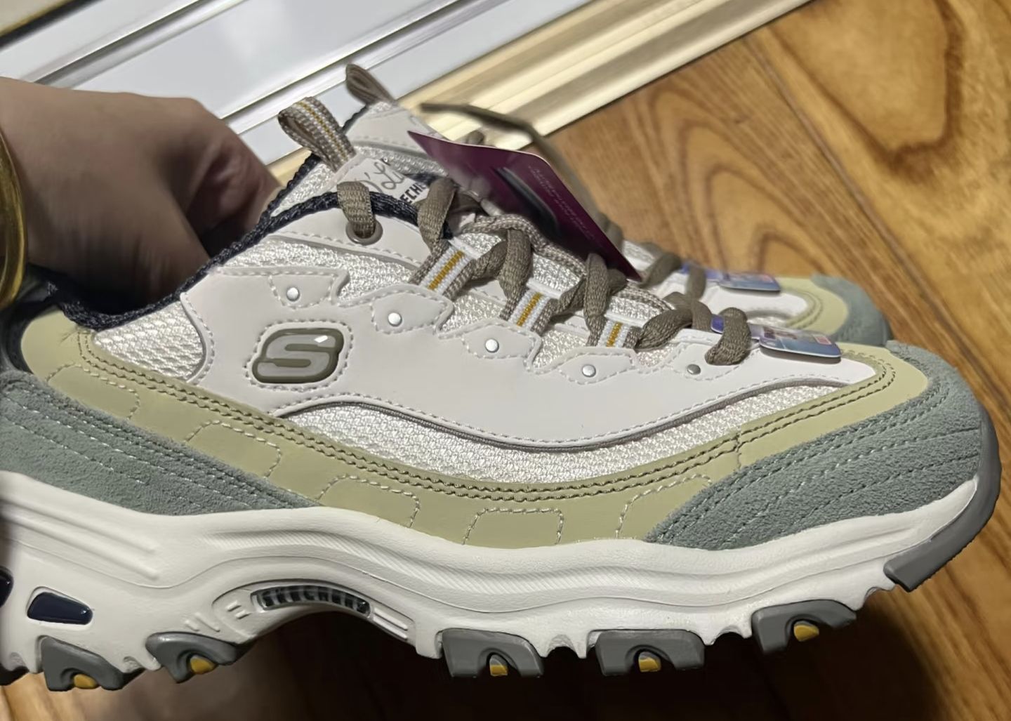 本篇笔记关联了Skechers/斯凯奇 D'Lites 1.0 奶茶熊 熊猫鞋 老爹鞋 闪穿鞋 厚底增高复古缓震百搭 女款/米白/橄榄绿等商品,为用户提供真实的使用体验和购买参考。