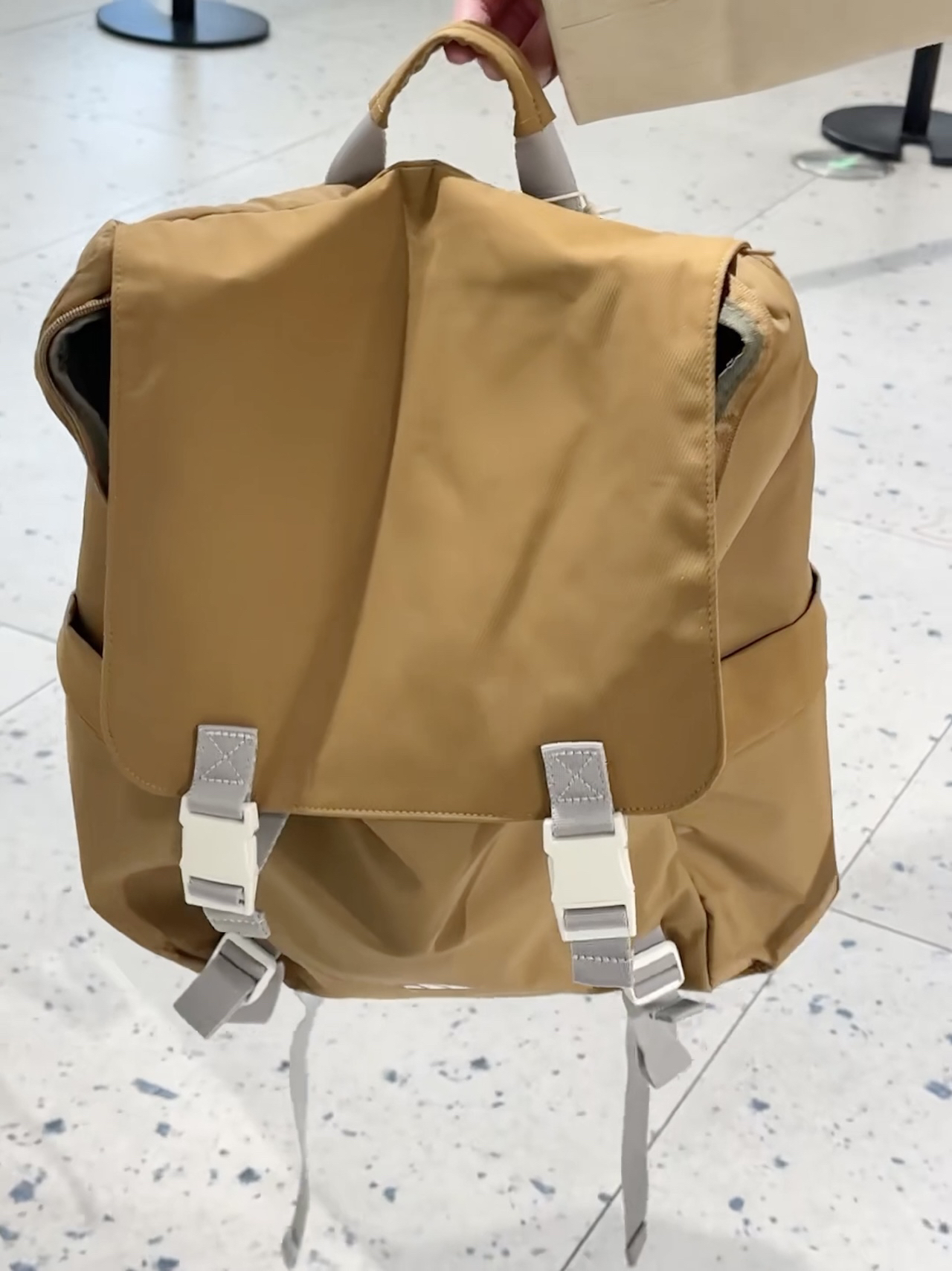介个爬山户外双肩包尊嘟吼吼看 沙漠配色 颜色还挺有质感的 自重还是挺轻的一款 而且介个容量还是蛮大的 搭配他们家的三条纹外套还挺好看的 可以美美出街喽