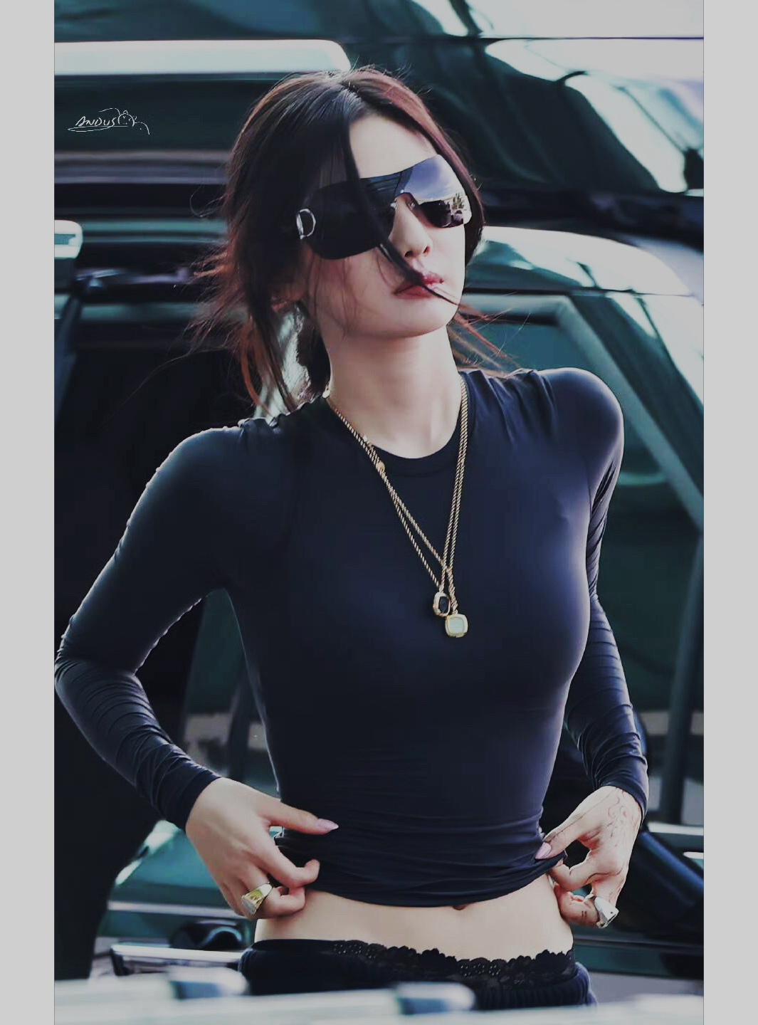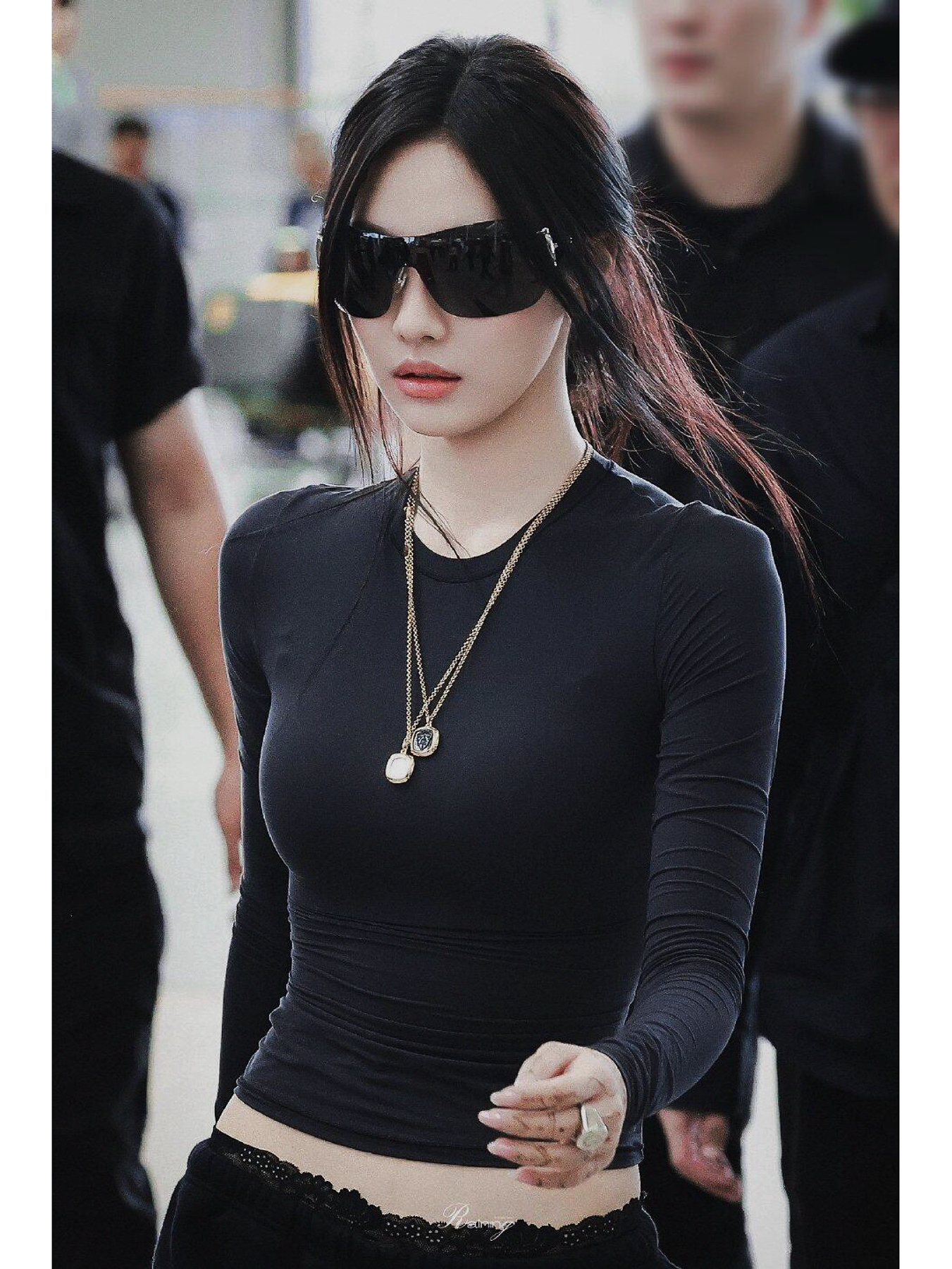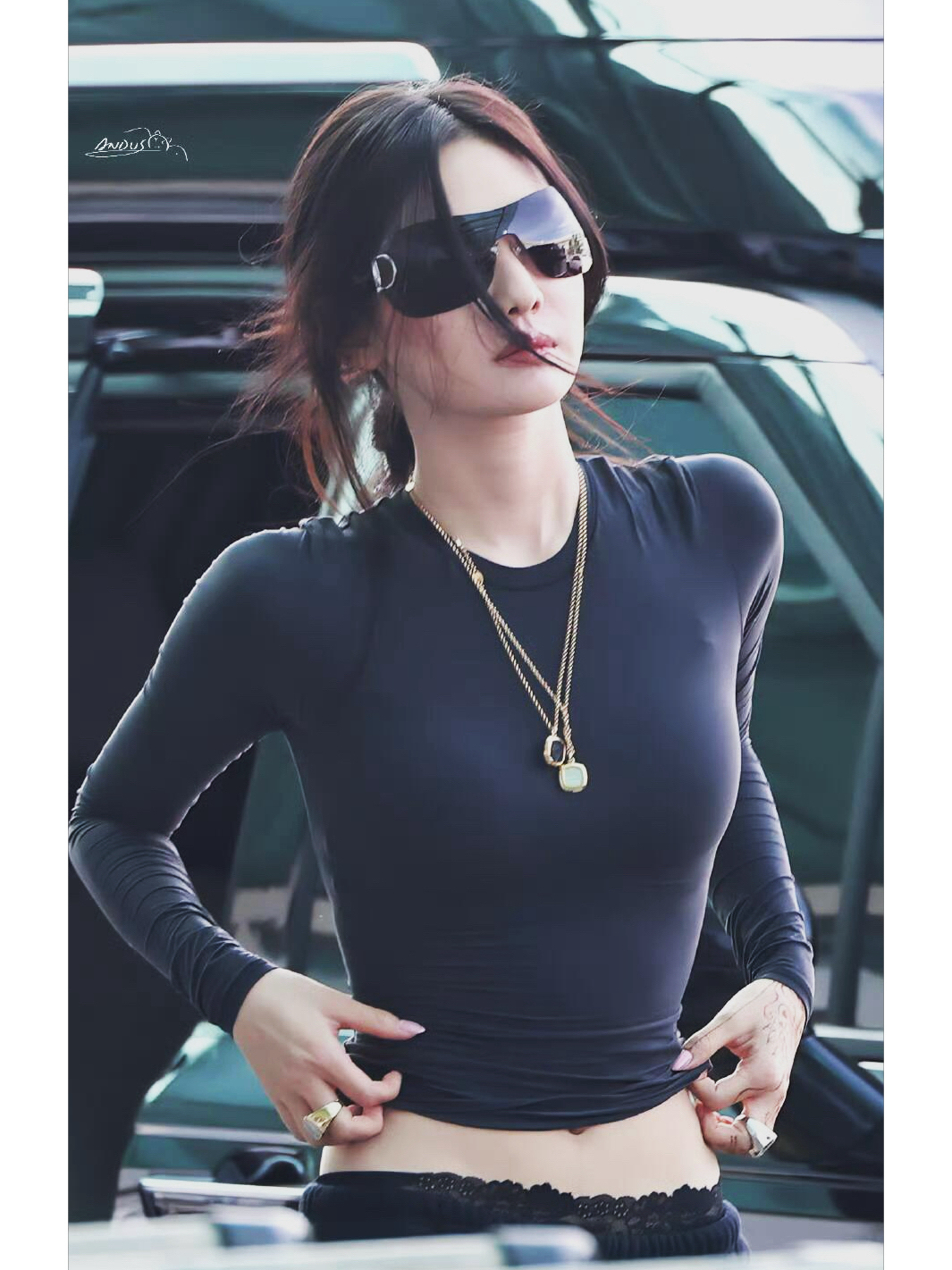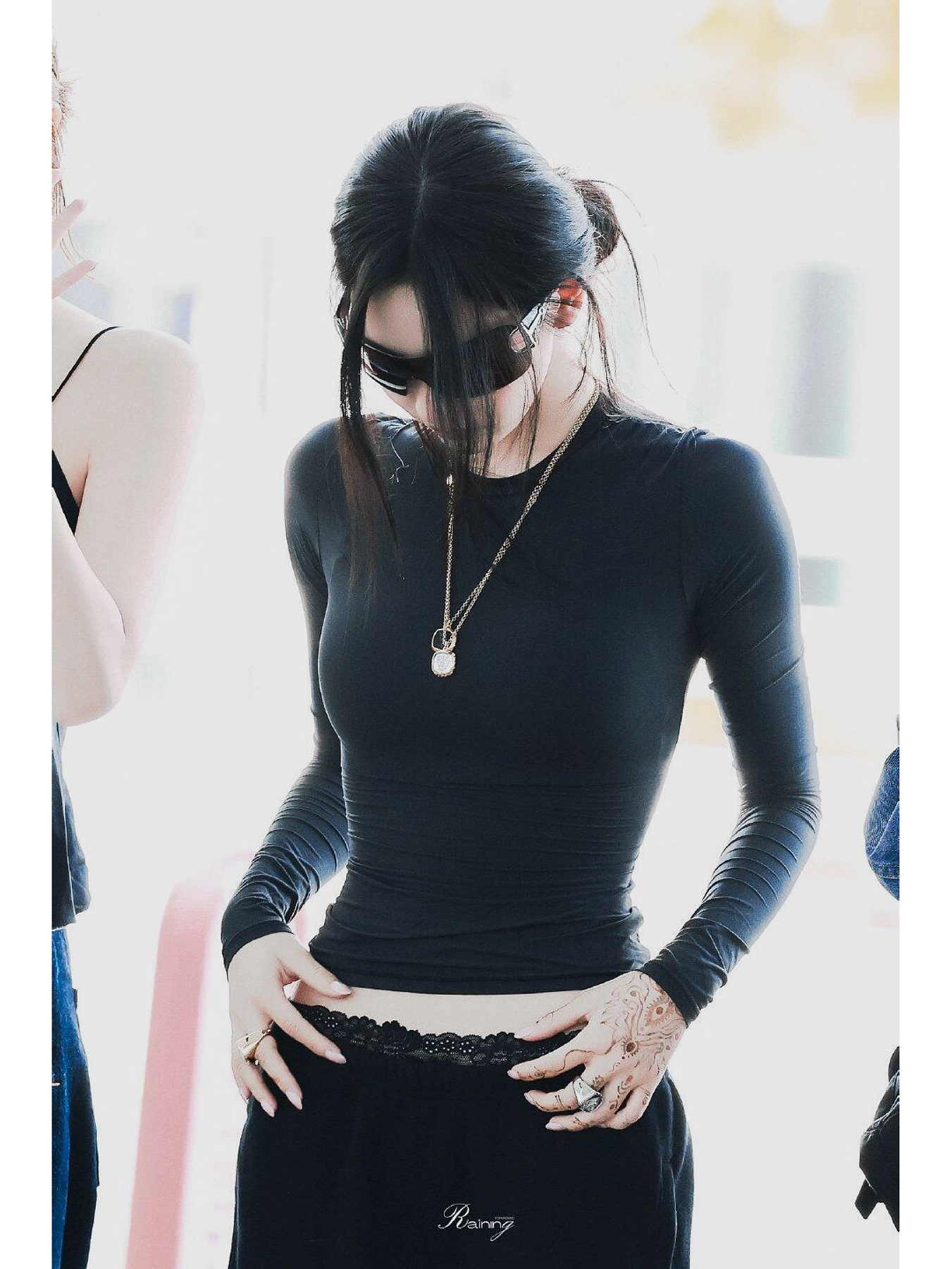宁艺卓这套全黑造型把“低调酷感”拉满!SKIMS紧身长袖衬出利落线条,叠搭蕾丝内搭添细节小心机,长链配饰中和沉闷,松弛又自带气场~