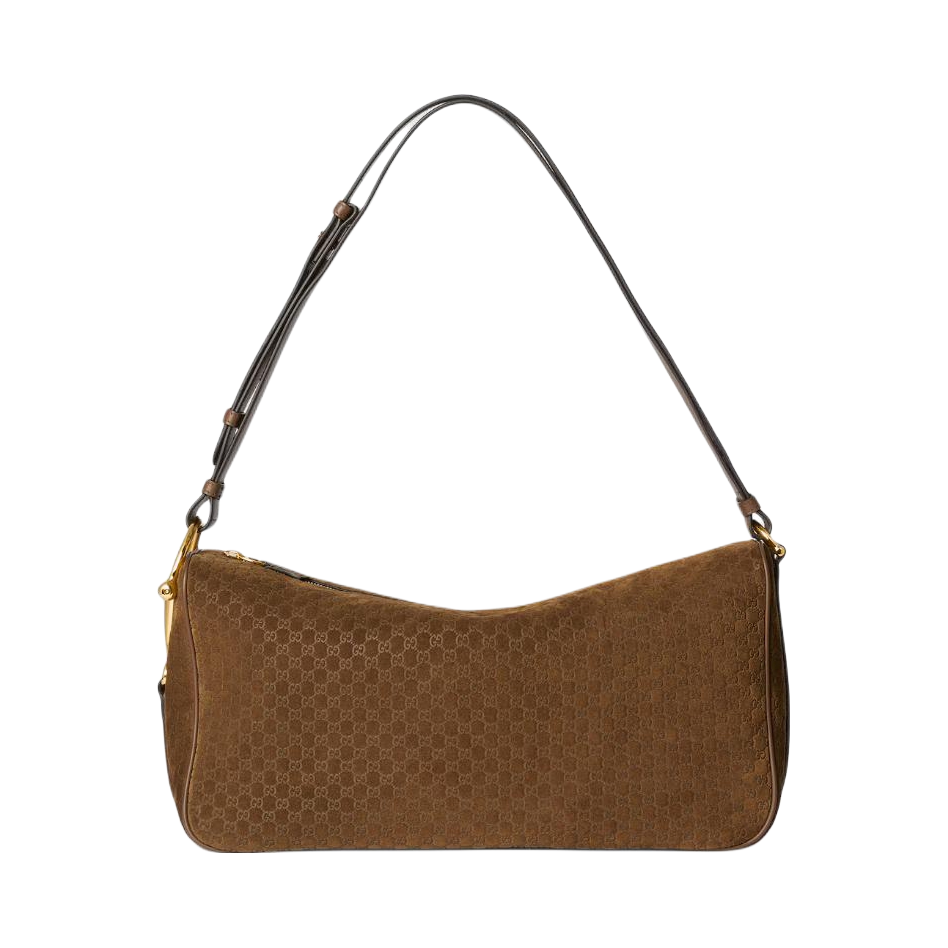 本篇笔记关联了Gucci/古驰 Horsebit Gucci Half 大号 压纹绒面革半马衔扣金色五金配件单肩包 棕色等商品,为用户提供真实的使用体验和购买参考。