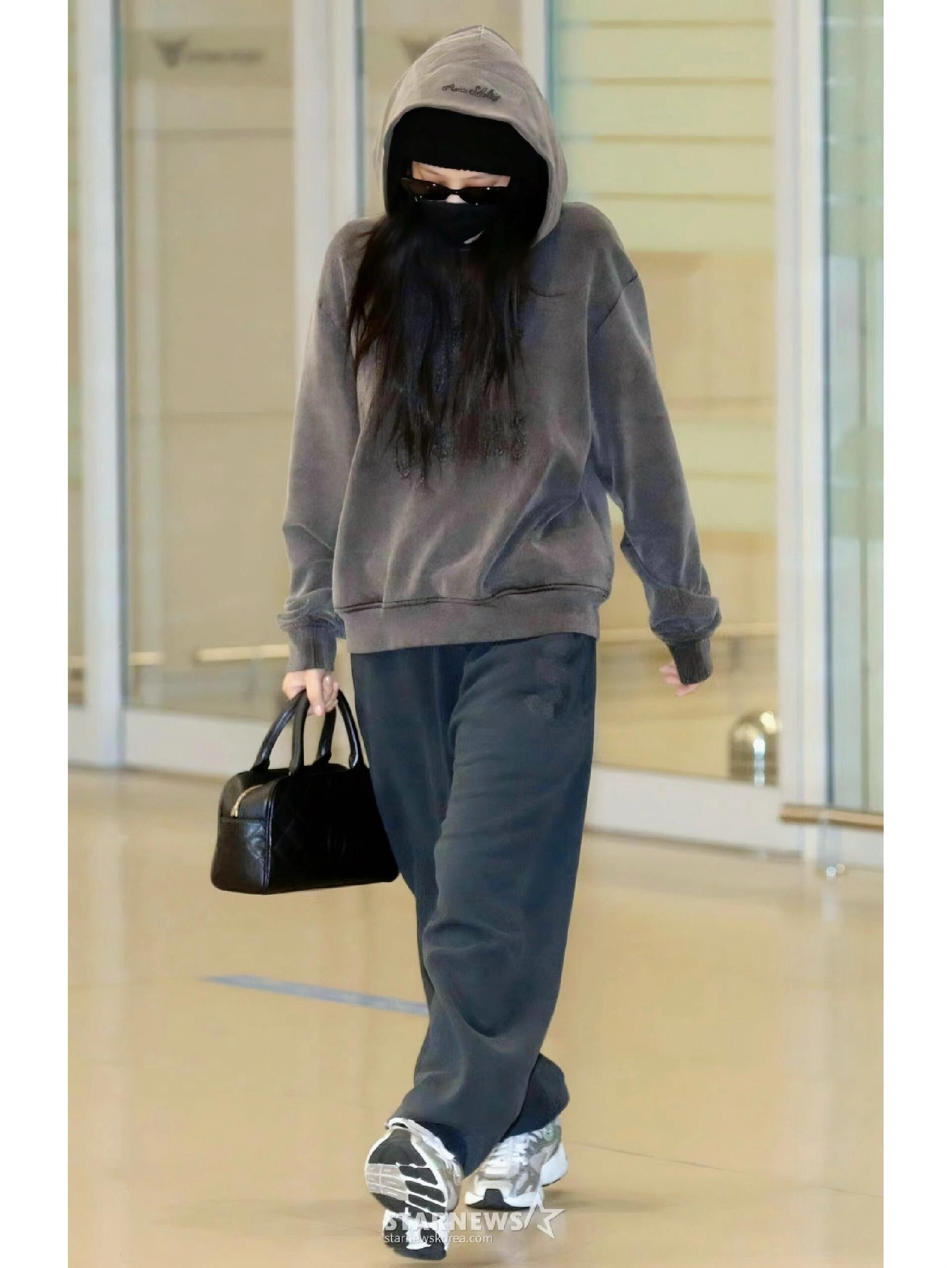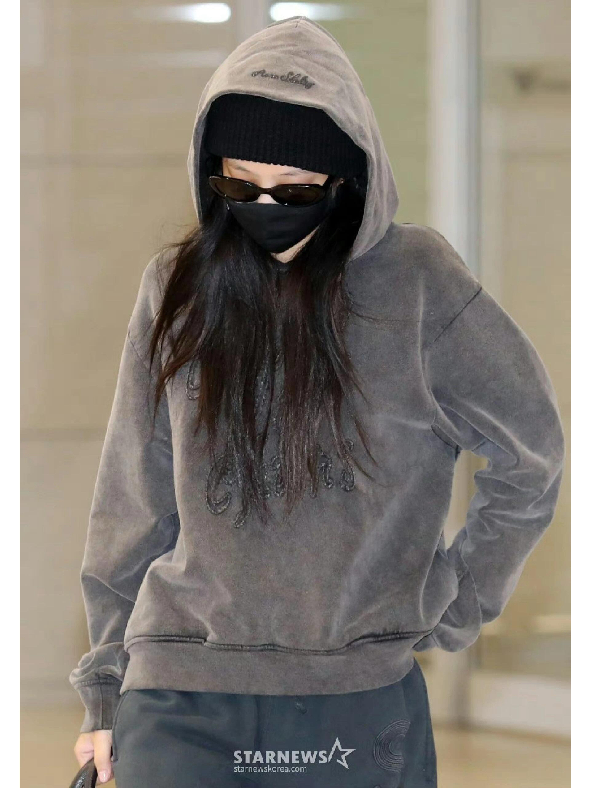 Jennie这身机场造型把松弛潮感拉满!Acne做旧灰卫衣自带慵懒滤镜,Gentle窄框墨镜添酷感,搭香奈儿菱格包和阿迪老爹鞋,舒适中藏着精致细节~