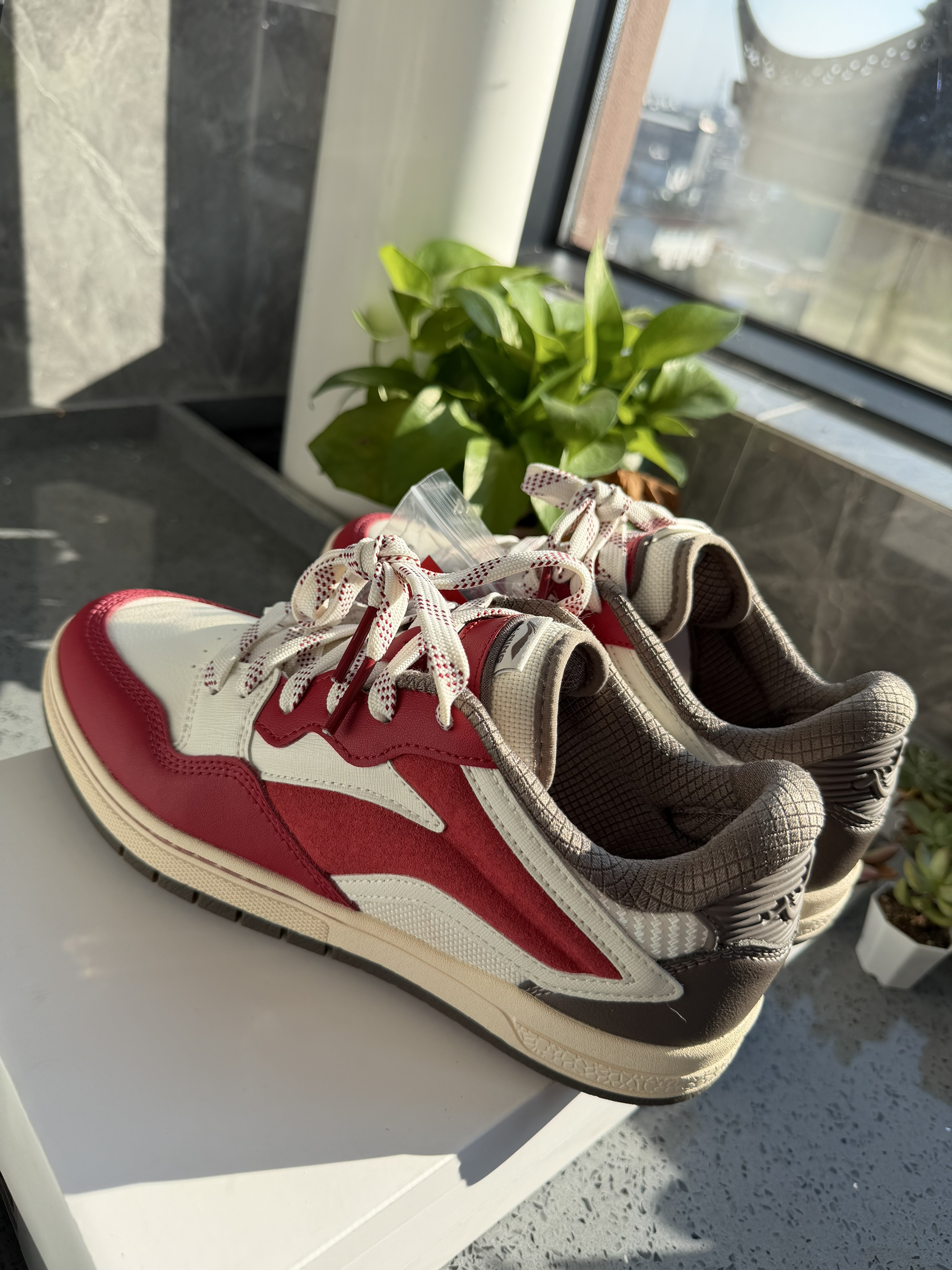 谁懂啊!刚拆箱这双Nike Vomero 5就忍不住来分享了! 低饱和度的米白+藏青配色,自带复古滤镜✨ 网眼+麂皮的拼接质感拉满,脚感软乎乎的(毕竟是老款跑鞋的底子),日常穿暴走都不费劲。 鞋后跟的几何纹路+鞋侧的条纹设计,细节处全是复古那味儿,配牛仔裤、运动裤都巨出片!而且这个配色不容易撞款,低调又有辨识度~ 最近复古跑鞋风这么大,这双闭眼入不踩雷!