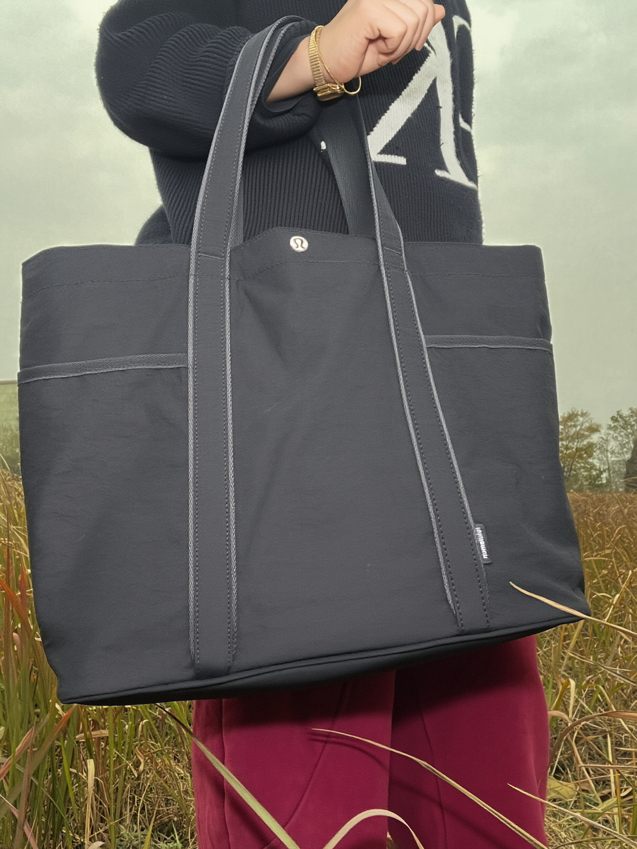 ululemon这款托特包,不仅做工精细,包包容量也很大的,非常适合日常通勤背 唯独缺陷就是不够硬挺,如果有个内胆会好很多吧 像这种大容量的包以后出门就不用在里面翻找东西