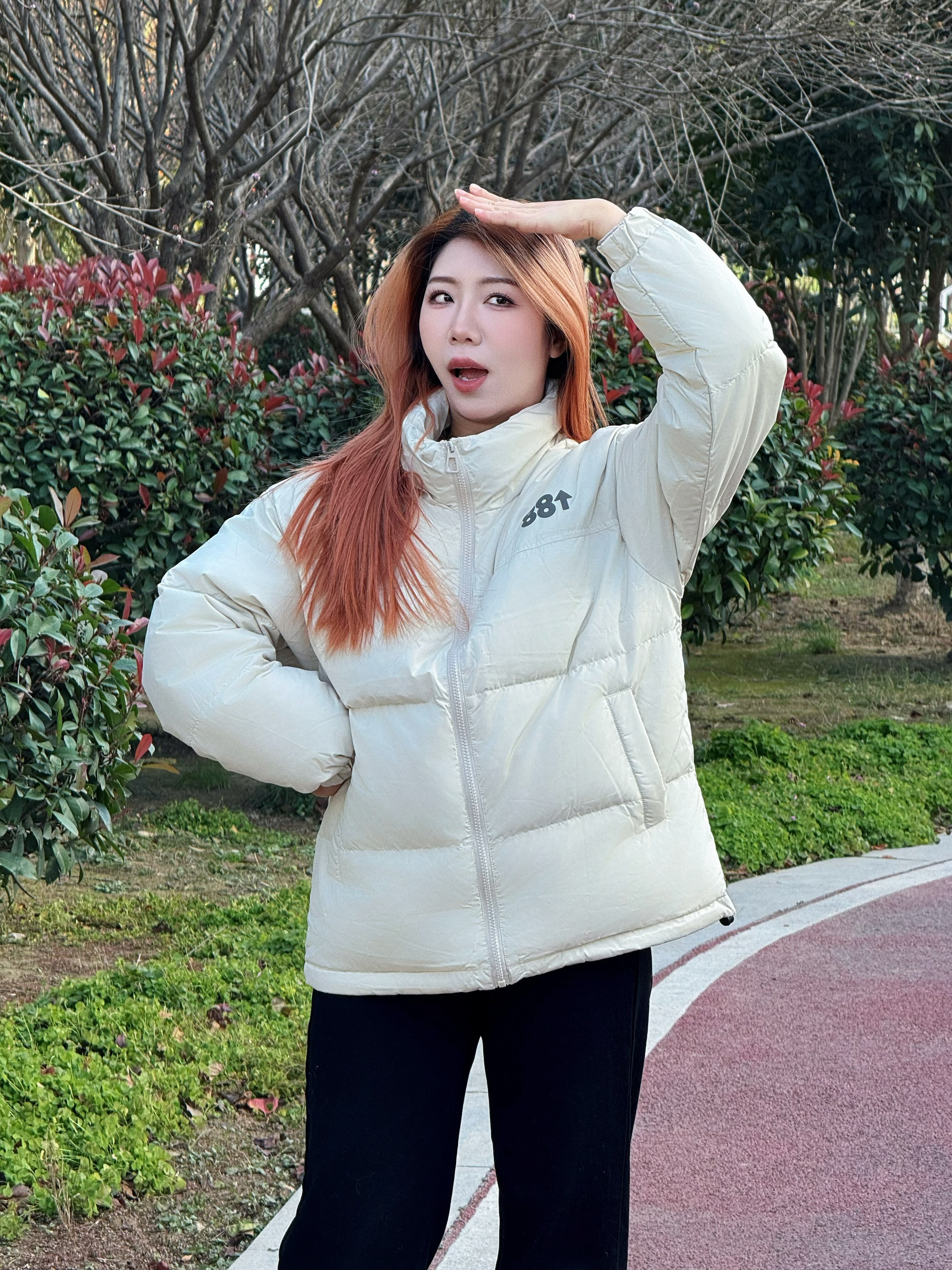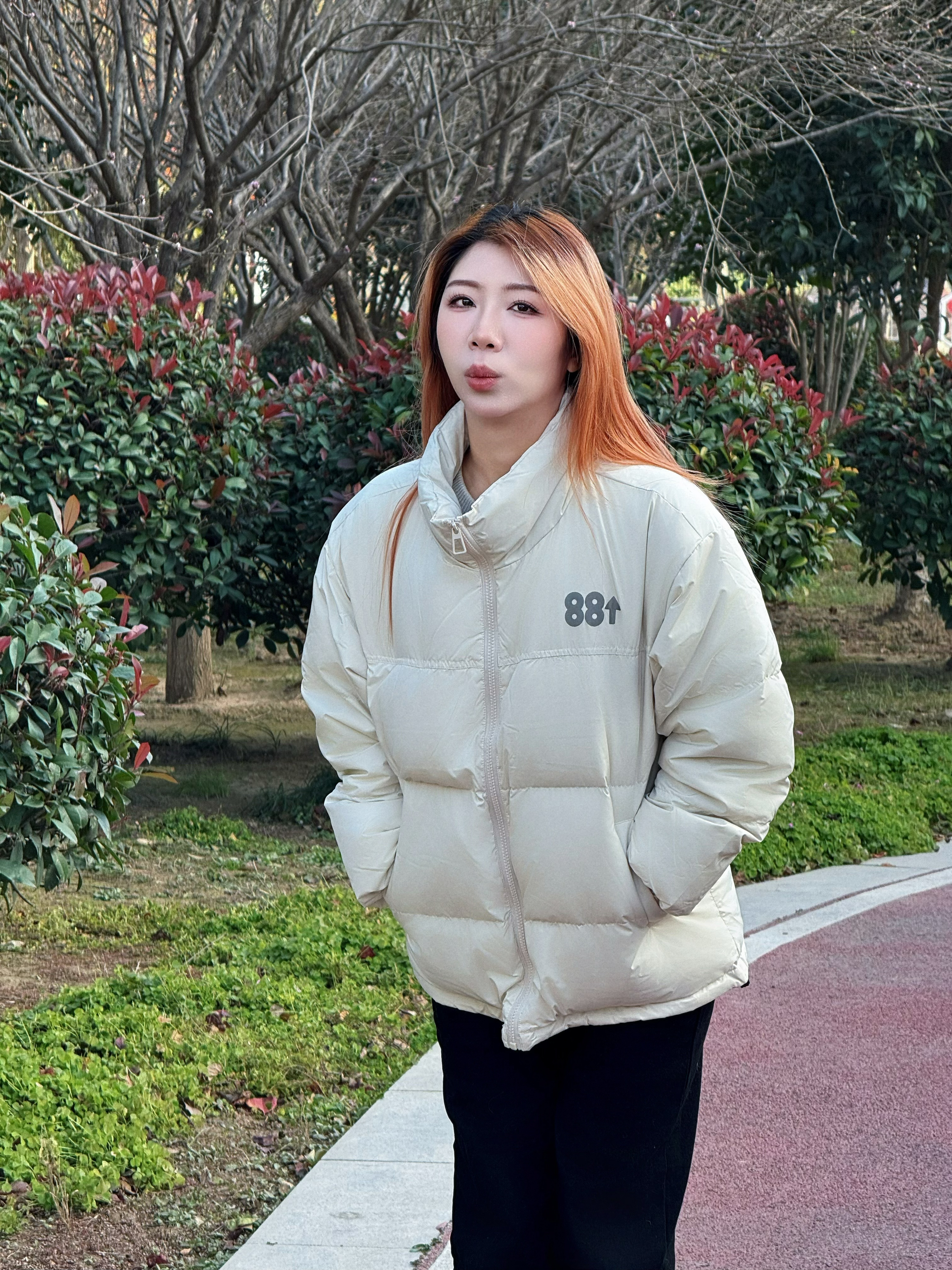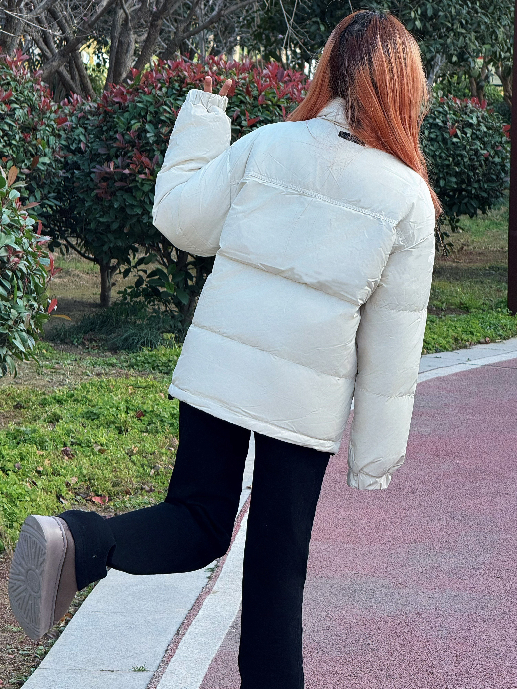 最近真的超爱秋冬,尤其是穿上这件入手的羽绒服后,心情都跟着明媚起来啦。 我身高165,体重94,穿的是S码,刚好合身,不会有紧绷感,也不会松松垮垮没型。 这件羽绒服是杏色的,颜色很温柔,在秋冬一片深沉的色调里特别亮眼。立领的设计不仅保暖,还能修饰脖颈线条,显得人很精神。衣服上的字母印花简约又时尚,增添了不少潮流感。 搭配上,我一般会选择黑色的紧身裤,像图片里这样,能凸显腿部线条,让整体造型更有层次...