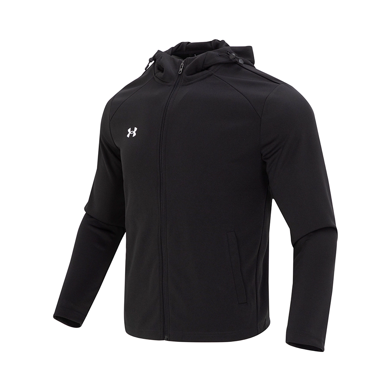 Under Armour 运动生活系列运动训练夹克来了! 经典黑色,抽绳连帽的设计,好看也实用 正中拉链顺滑不费力,双侧衣袖长短合适 微弹力袖口较贴合 正面UA Logo提升辨识度。袖口和下摆弹性收口 内里是单层面的,左右都有大内袋,挺实用的 全聚酯纤维面料,轻薄透气,弹力舒适! 穿着更舒适,尺码齐全,适合各种体型 我平常训练也太合适了, 运动休闲都能轻松驾驭! 我身高178体重135穿的L码...