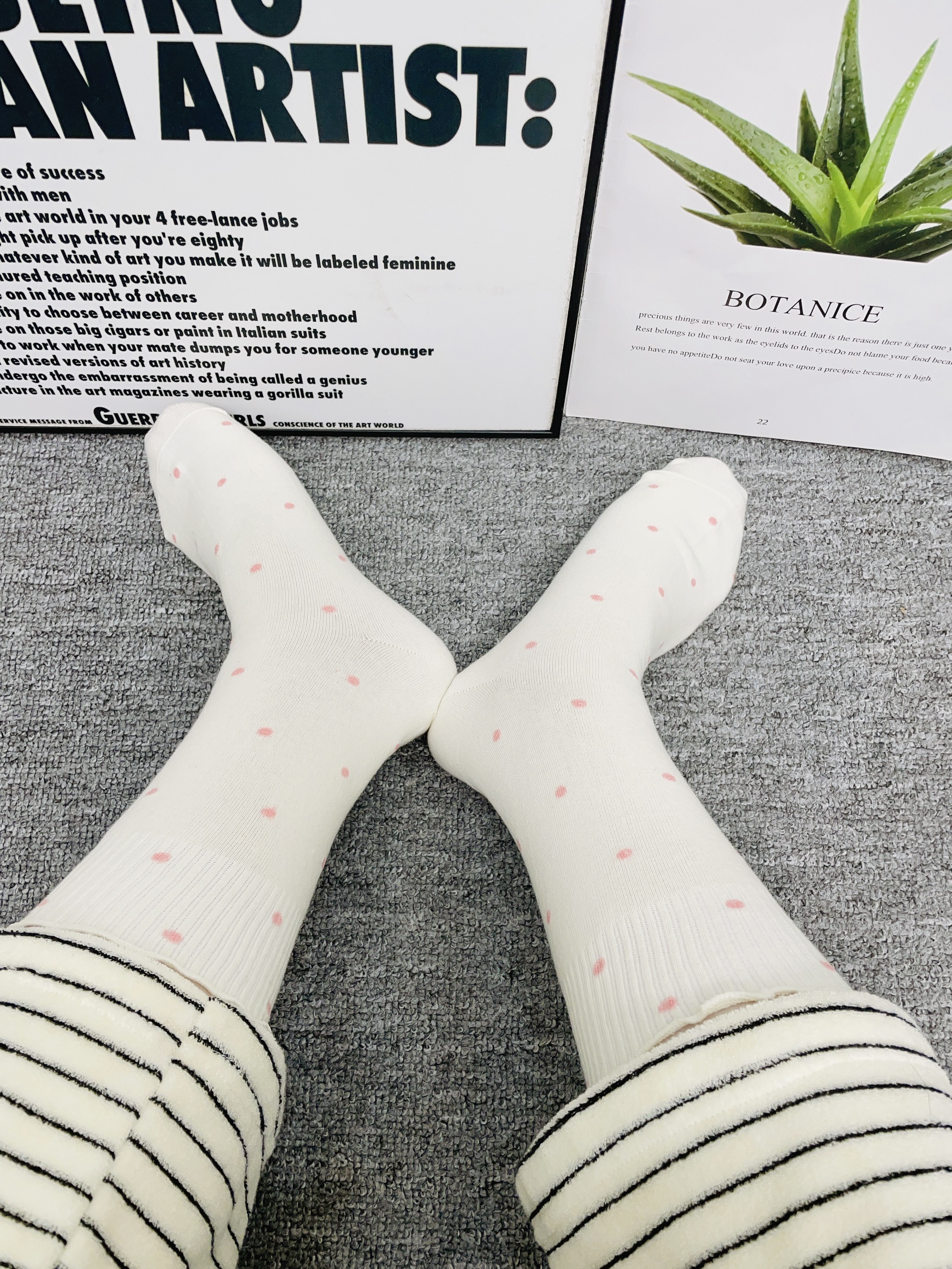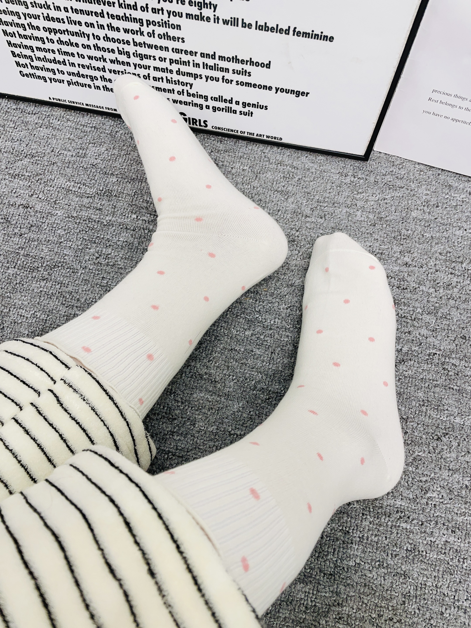 十二月的冬天刚好广东这几天下雨了降温比较冷 我给自己安排了新袜子 这款袜子配色简约好好看呢 我用手摸着面料hin柔软厚实 细节做的可以 我看着没有多余的线头啥的 上脚穿了我感觉蛮舒服的也不会勒脚又暖和 我觉得通勤外出随便搭都可