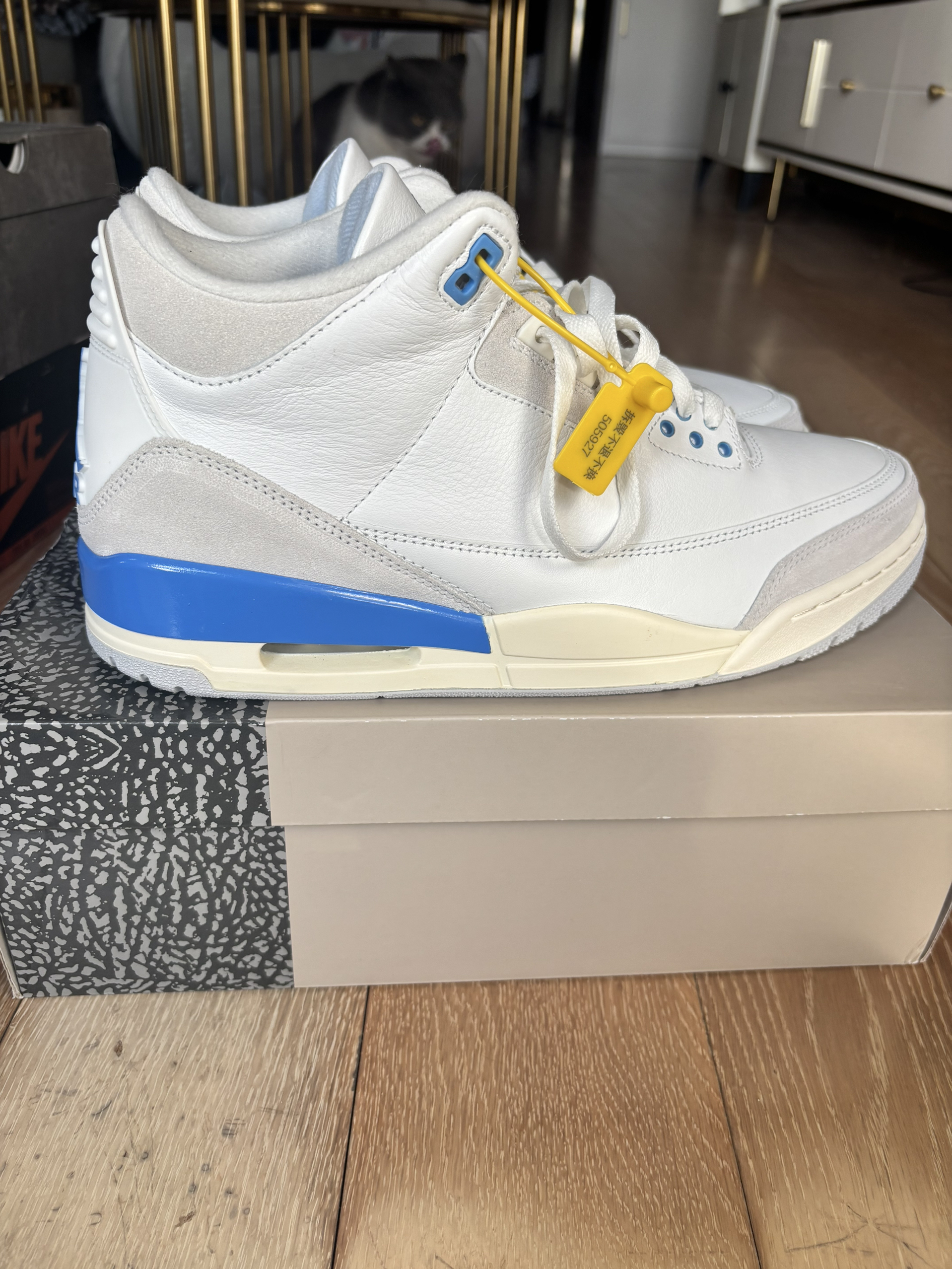 本篇笔记关联了Air Jordan 3 运动休闲鞋 潮流复古抓地支撑缓震合成革圆头 天蓝色/白色等商品,为用户提供真实的使用体验和购买参考。