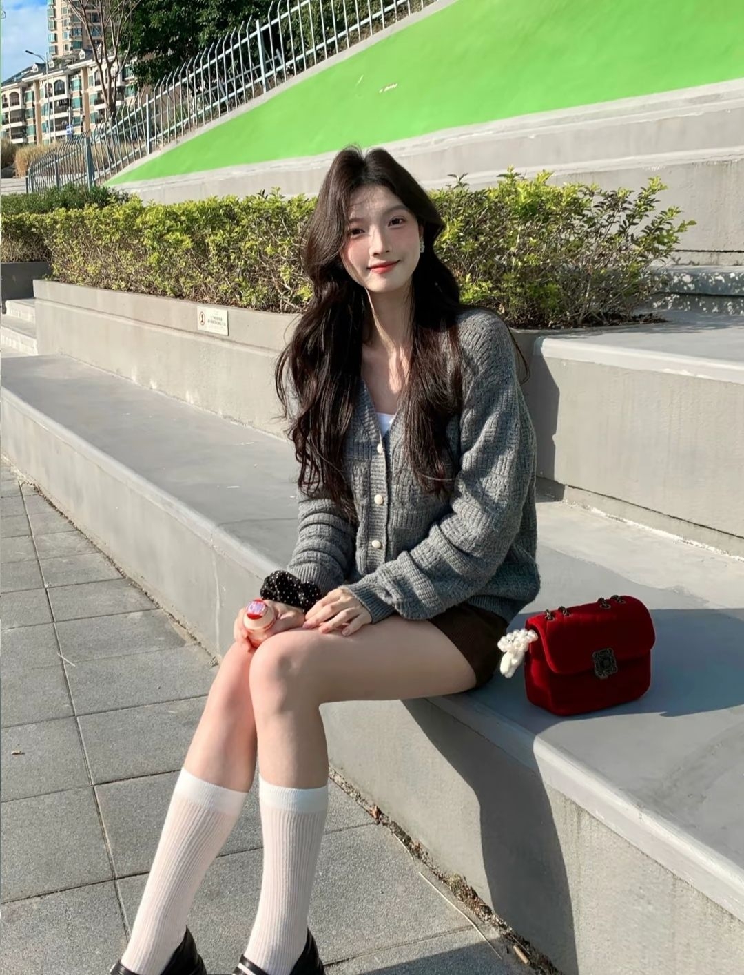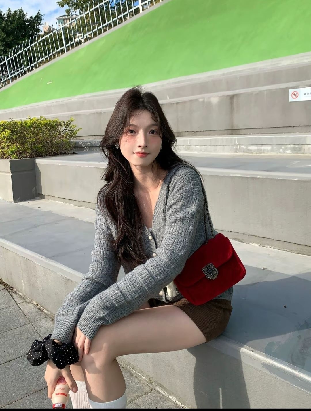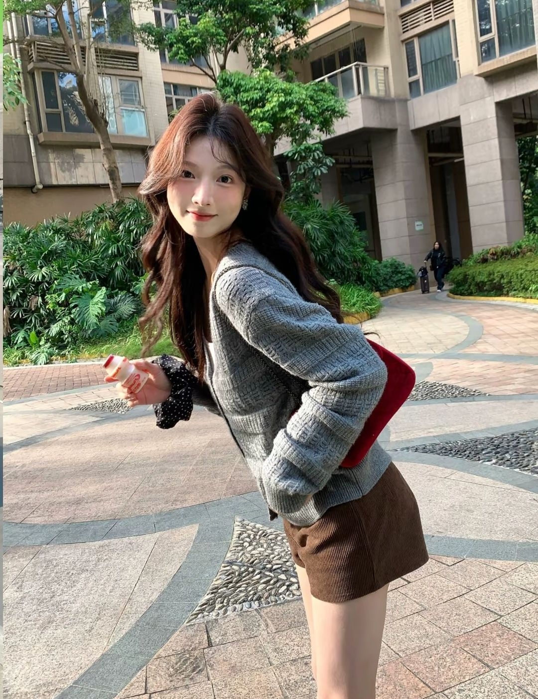 今天是灰开衫+棕短裤的温柔适配度呀~ 衣服软乎乎得像把阳光揉进了针织里☀️ 160cm/88斤穿这身 像把“日常松弛”缝进了穿搭里 包包的红色都跟着风晃出了小惊喜❤️ 连手里的小饮料都在冒轻快的气泡🫧 这样的灰调穿搭 会让你想和我一起晒晒太阳吗?🌞