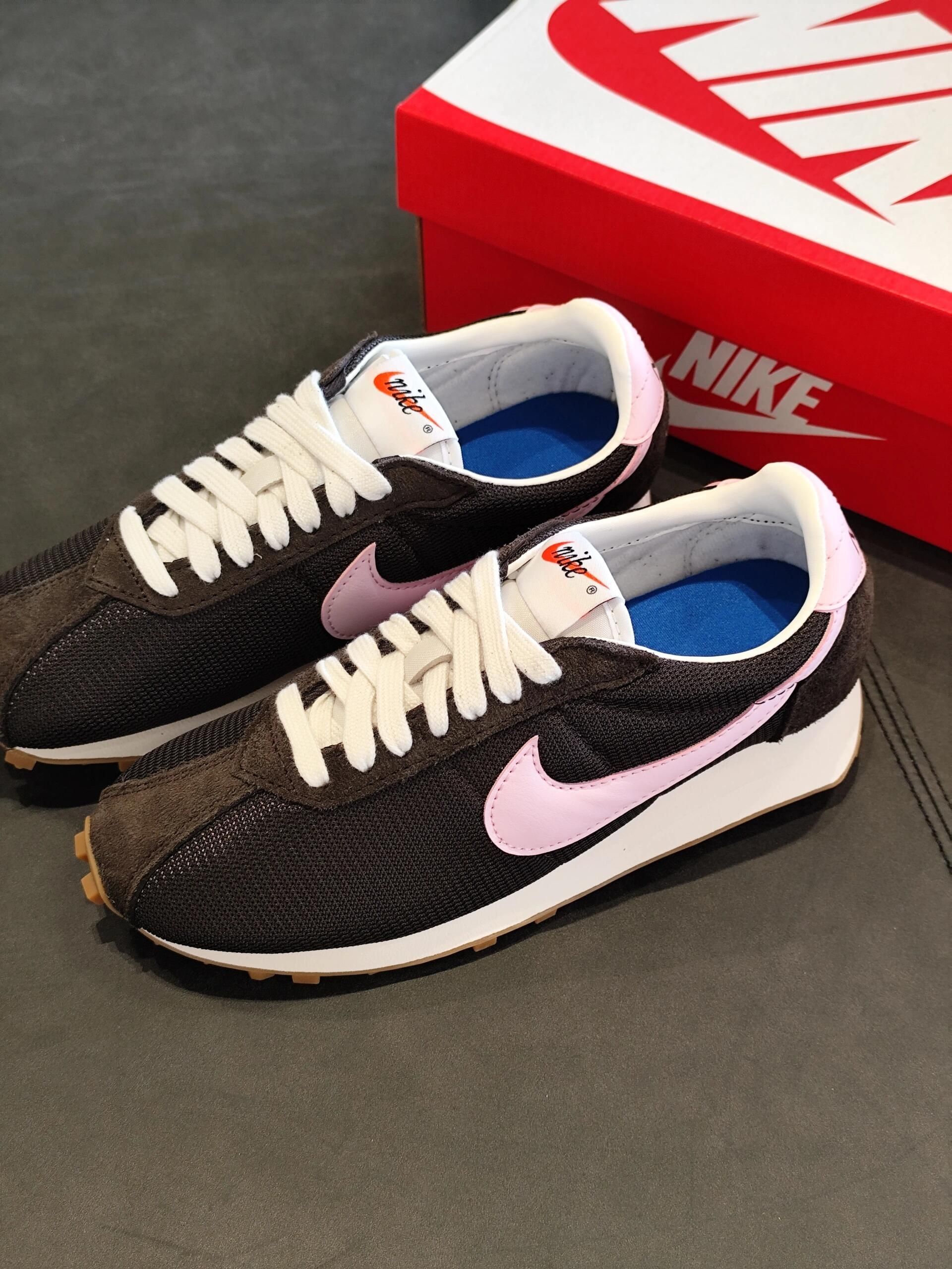 ✅ 核心亮点 1. 复古配色:黑棕基底碰撞粉色Swoosh,营造独特复古视觉 2. 轻盈透气:网面材质打造轻便鞋身,保持全天候足部干爽 3. 多场景适配:经典跑鞋轮廓,轻松融入通勤与休闲穿搭 🔥 穿着体验 ・ 日常行走轻盈无负担,透气性表现优异 ・ 撞色设计在简约穿搭中成为点睛之笔 ・ 鞋型经典,搭配牛仔裤或休闲裤皆宜