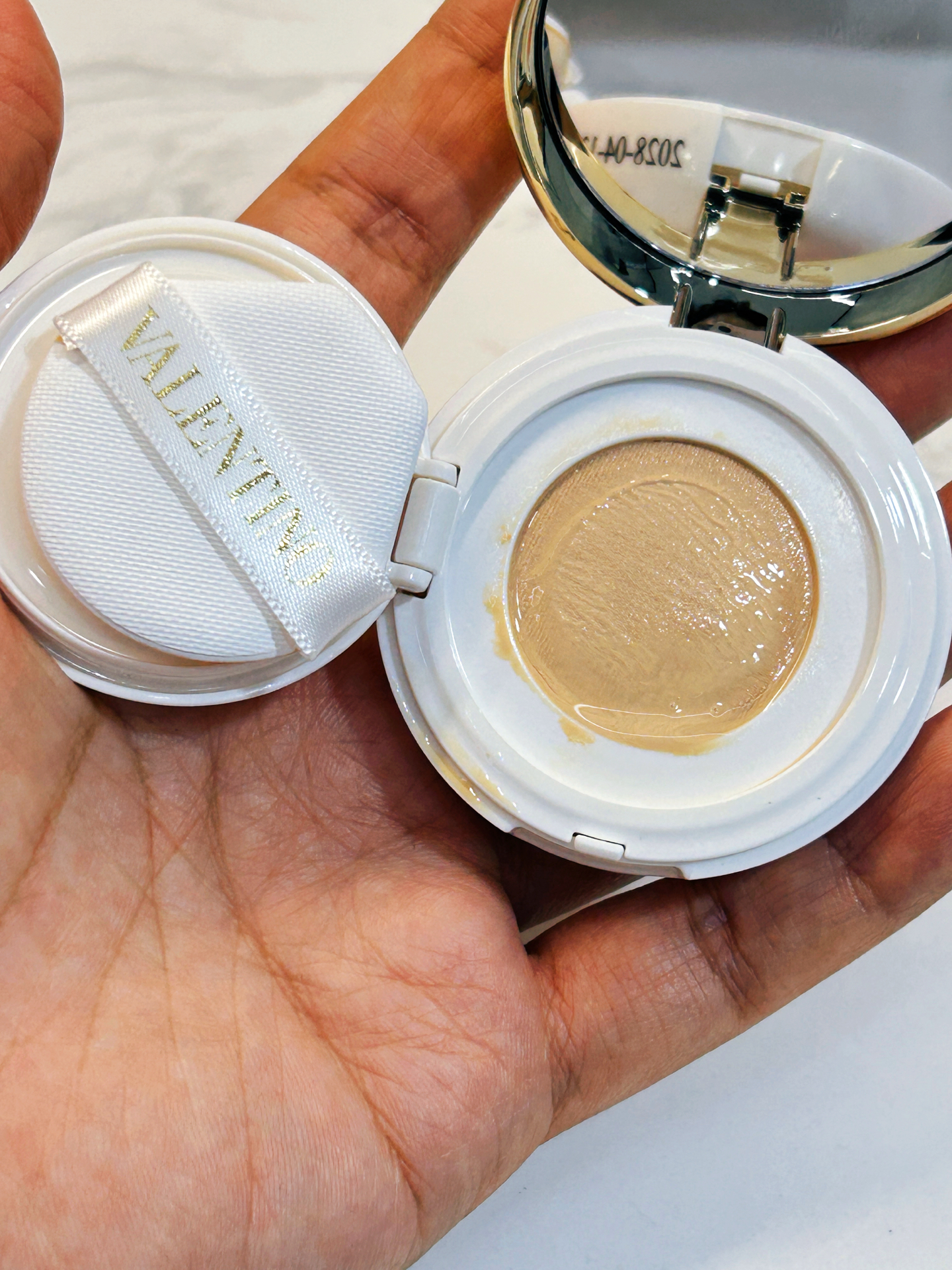 今天收到华伦天奴气垫小样啦~马上上手试了试🥰 它是水润的粉霜质地,内料是细密的奶皮网纱,粉感不算厚重还很细腻~遮瑕力我觉得还行,我用来遮防水防掉的眼线笔,效果勉强能看👀 持妆力倒能维持一天,整体用下来我还挺爱的~不过要是预算有限,入正装得考虑考虑钱包厚度哈🤔 #气垫界掌管持妆的神 #新手彩妆好物 #华伦天奴气垫 #华伦天奴水光气垫 #气垫推荐公认好用