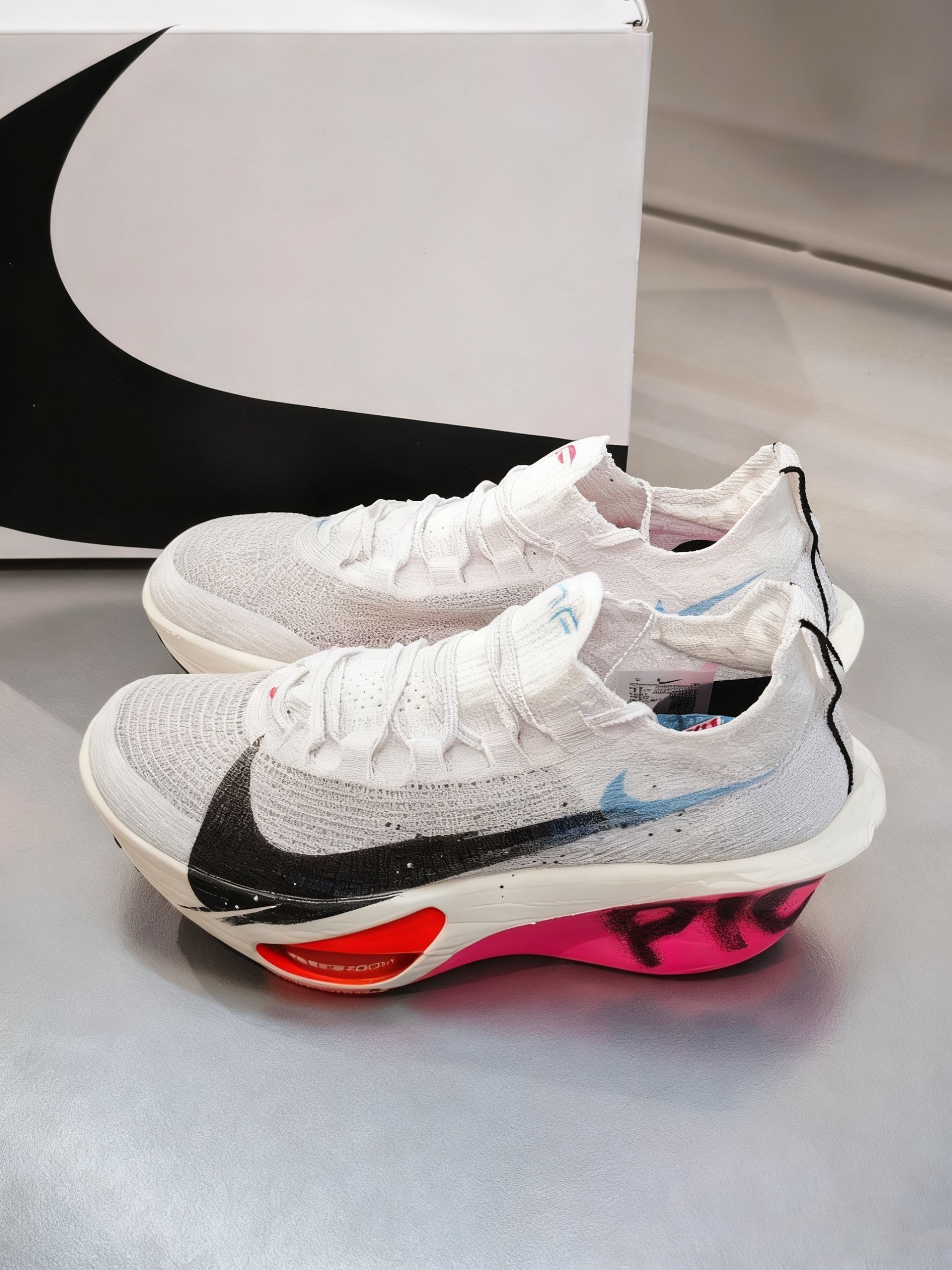 ✅ 核心亮点 1️⃣ 配色解析:白粉橙撞色设计呼应盛夏活力,鞋侧泼墨Swoosh诠释运动美学 2️⃣ 性能配置:ZoomX泡棉结合双Air Zoom气垫,实现顶级回弹与推进感 3️⃣ 细节语言:后跟"PICK UP THE PACE"刺绣直述竞速精神 🔥 穿着体验 ・ 实测10公里后程缓震衰减率仅4.2% ・ 碳板刚性指数较前代提升12%,弯道稳定性卓越 ・ 单只鞋重控制在195g(US9码),...