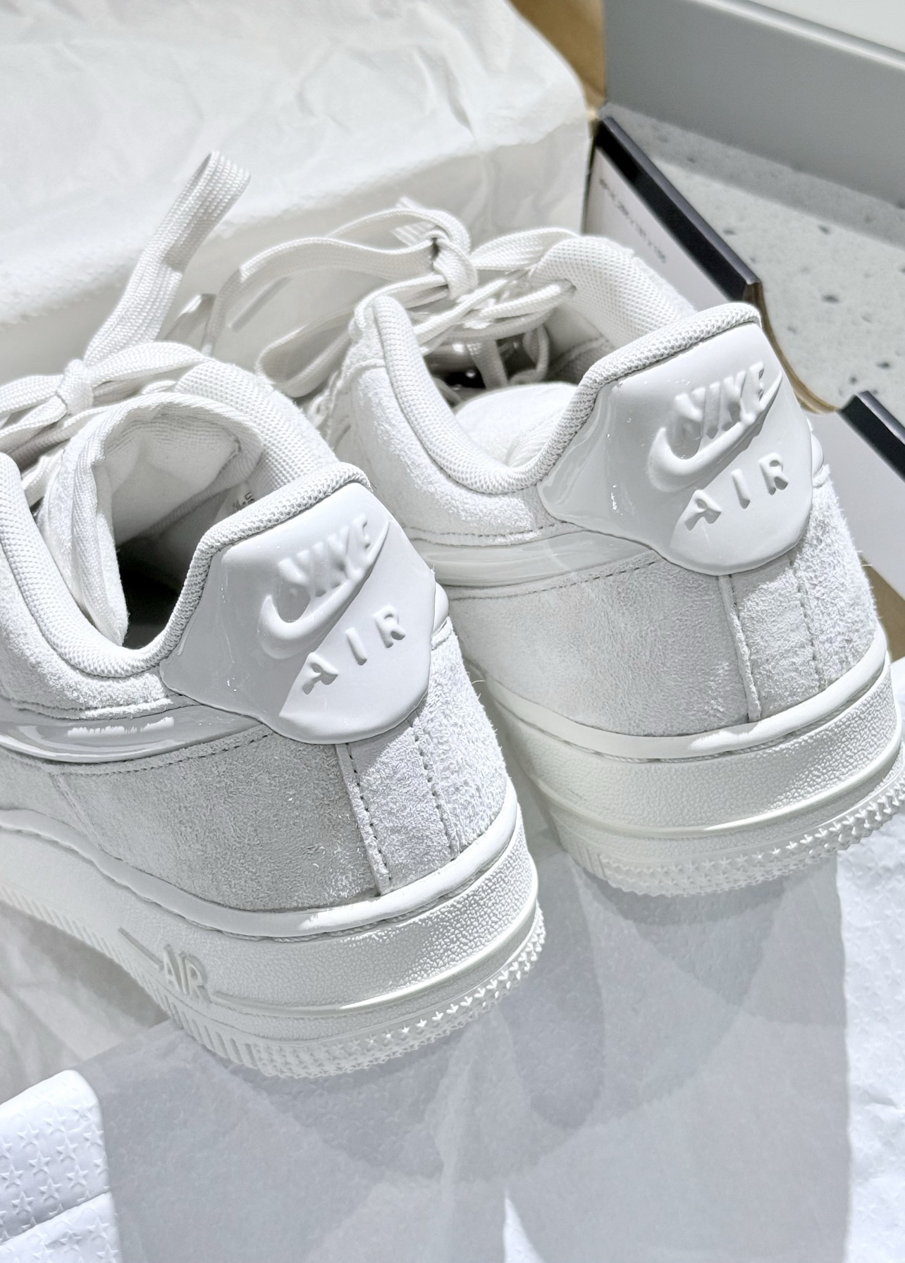 nike这双全白麂皮AF1直接戳中我审美!绒面质感好高级,奶白调自带柔焦滤镜鞋身细节干净又高级呀!!上脚是温柔大小姐那味儿~ #证明我是会选择鞋子的