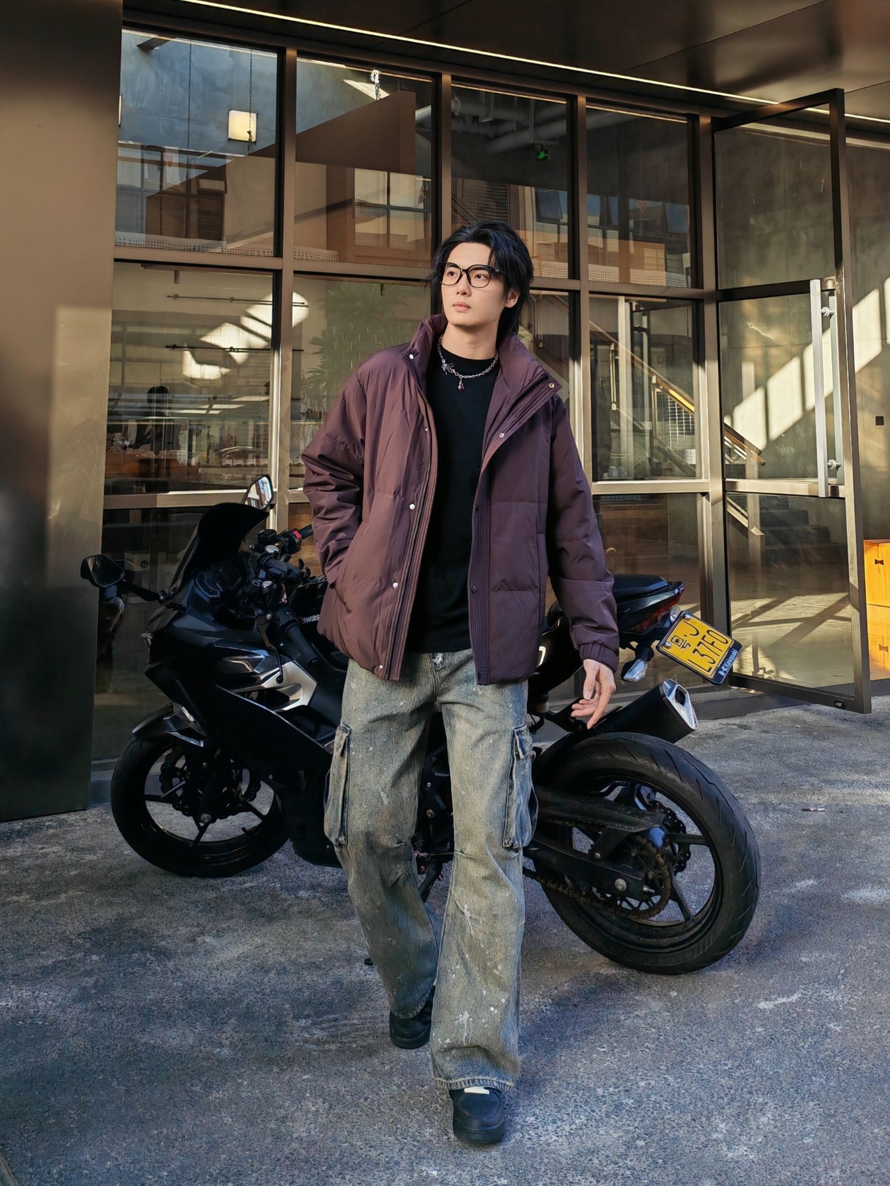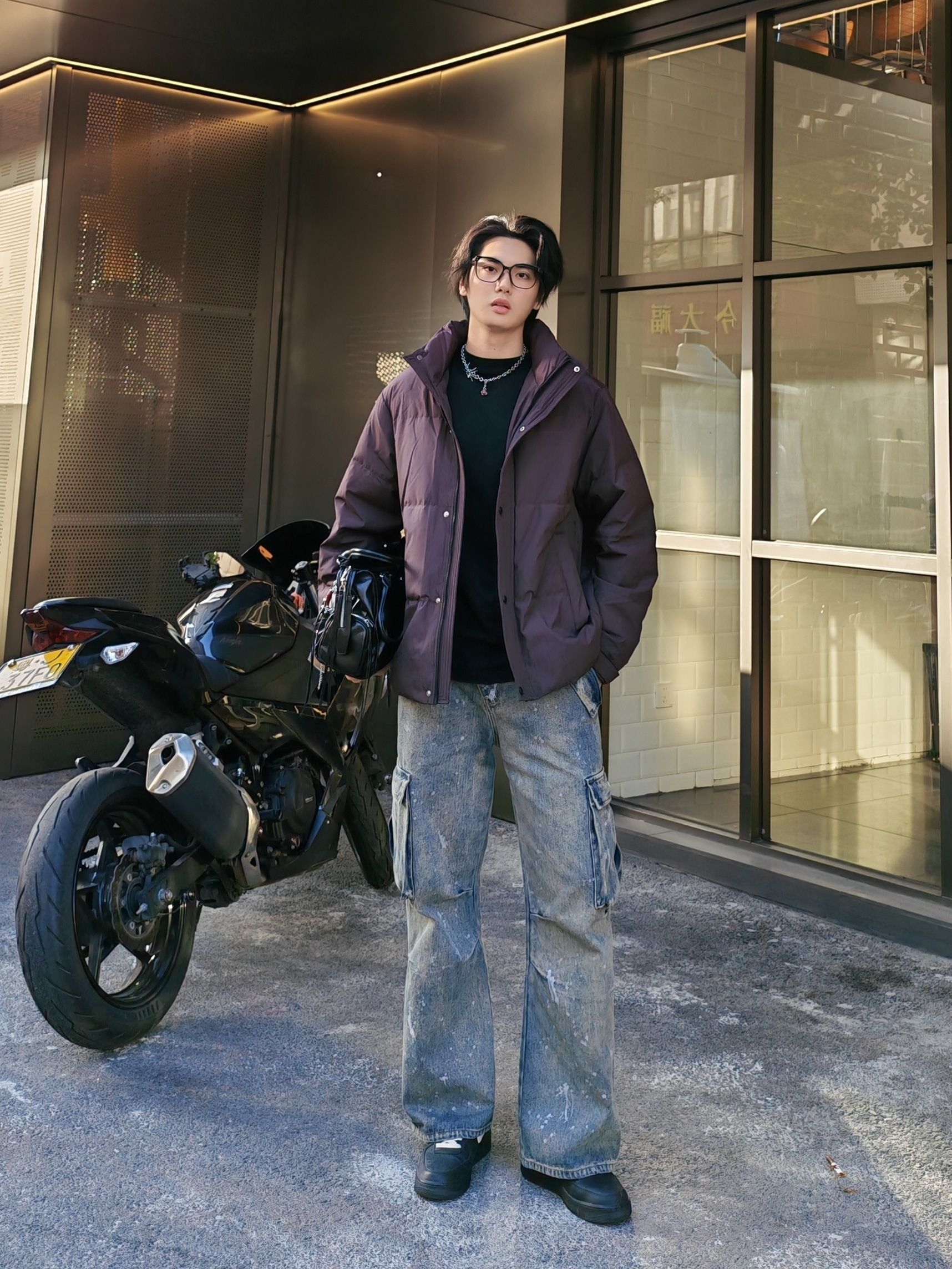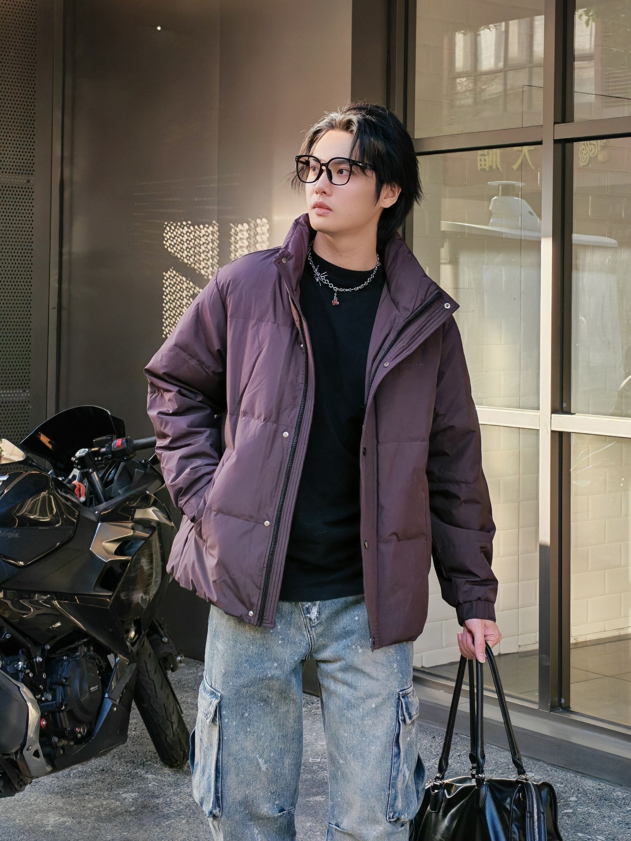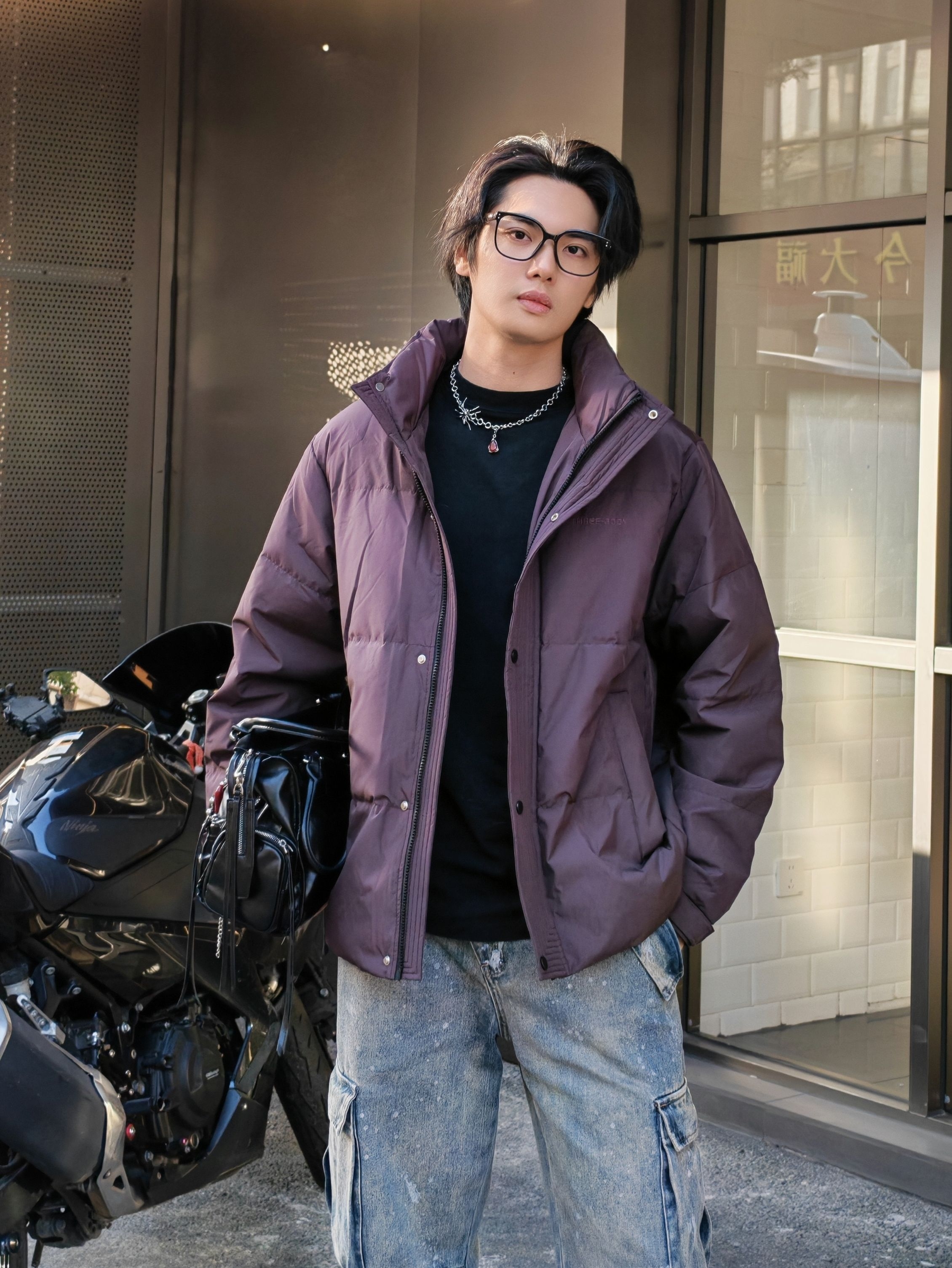 hello呀 这里是酷爱穿搭分享的镭子 海澜之家 HLA 三体联名系列,立领羽绒服,深酒红配色,自带高级感,90绒超轻蓬松面料,穿上暖呼呼,短款版型简约利落。 搭配做旧工装牛仔,泼墨水洗+大口袋,痞帅感直接拉满~ 踩双厚底鞋,背个机能小包,随便往咖啡厅门口一靠,松弛感氛围照秒出片📸