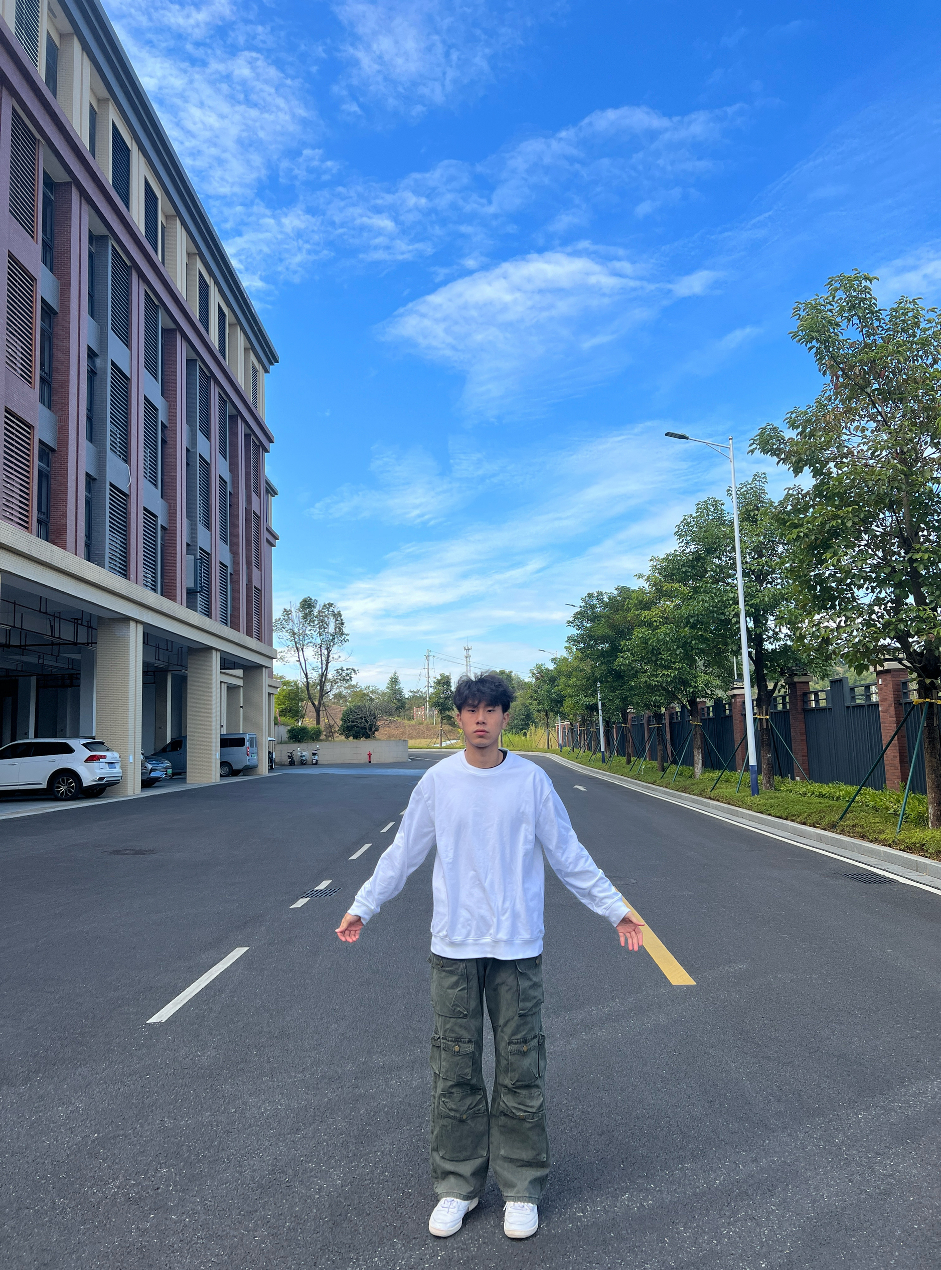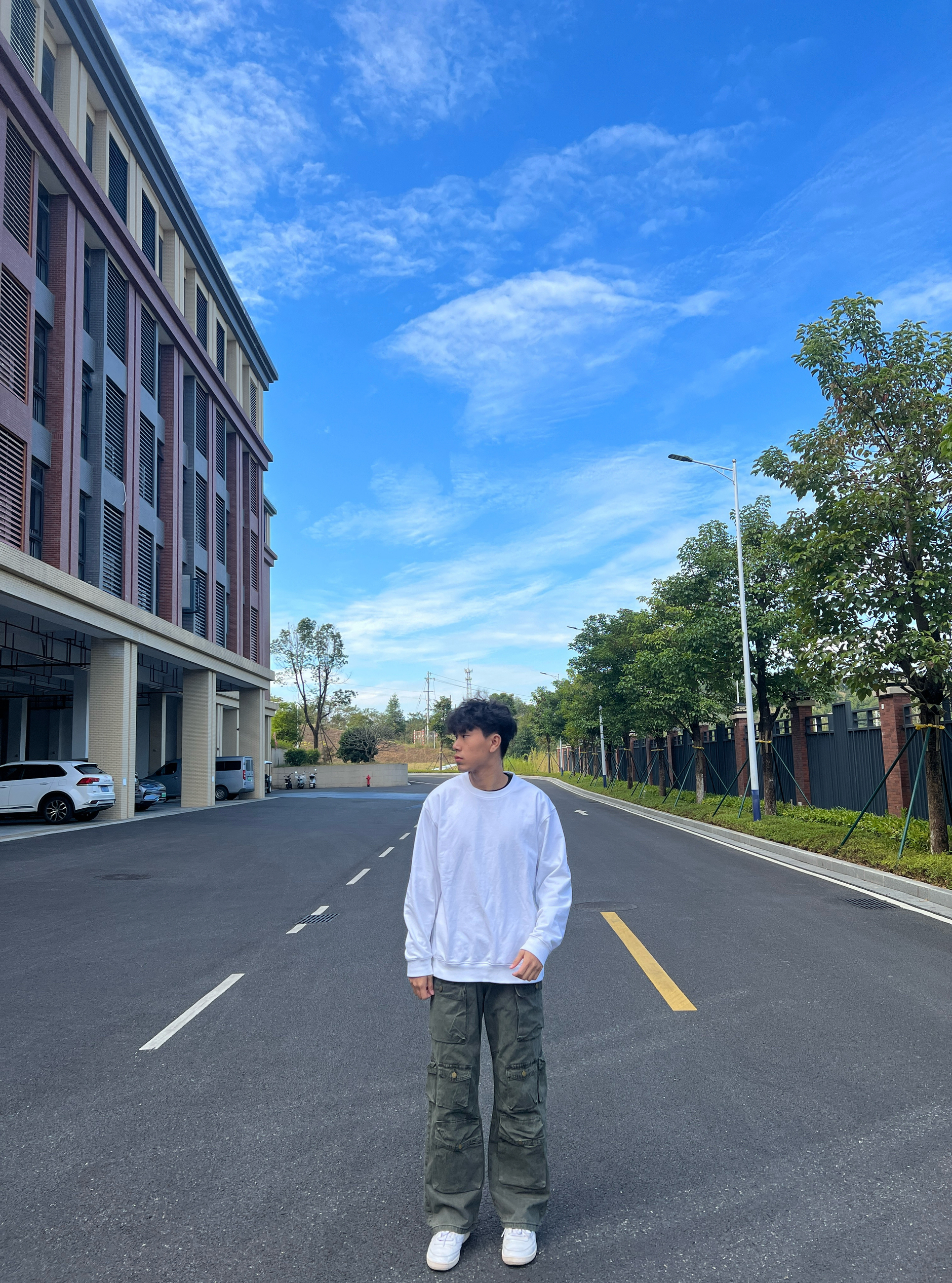 十二月 时而悦 这套穿搭以白色圆领卫衣为基础,简约干净;搭配军绿色多口袋工装裤,复古硬朗,大口袋设计增添街头感;再以白色休闲鞋收尾,整体风格休闲随性。搭配技巧上,利用基础款与工装单品的风格碰撞,通过同色系鞋衣呼应增强协调感,宽松版型营造随性氛围,适合日常出街打造潮酷休闲风。 你们觉得这套穿搭怎么样呢?这套穿搭适合早八赶可还是周末citywalk呢?评论区晒晒你们的穿搭吧!