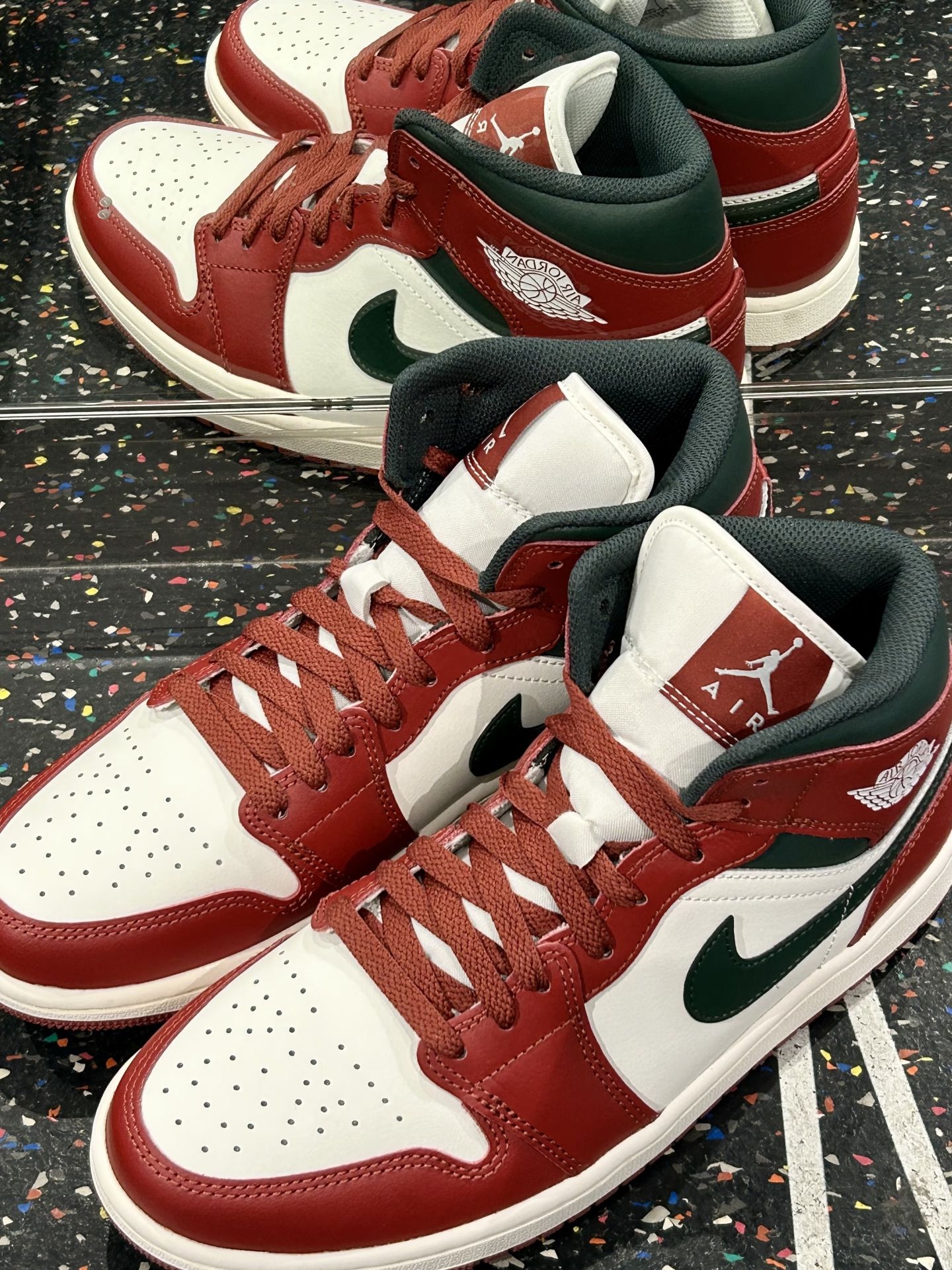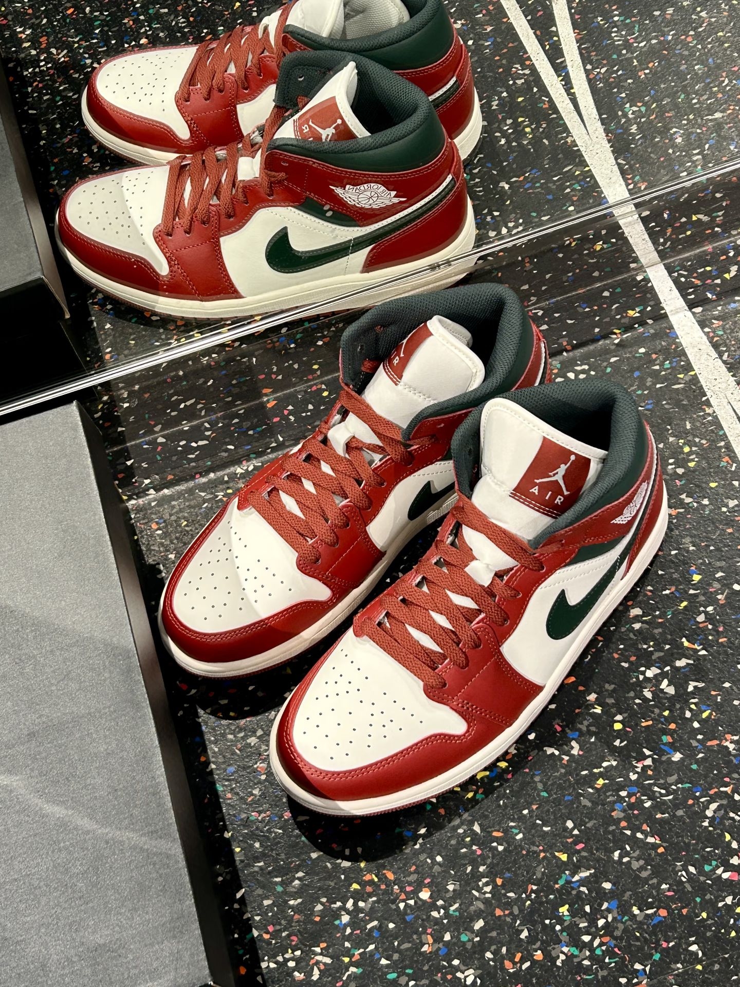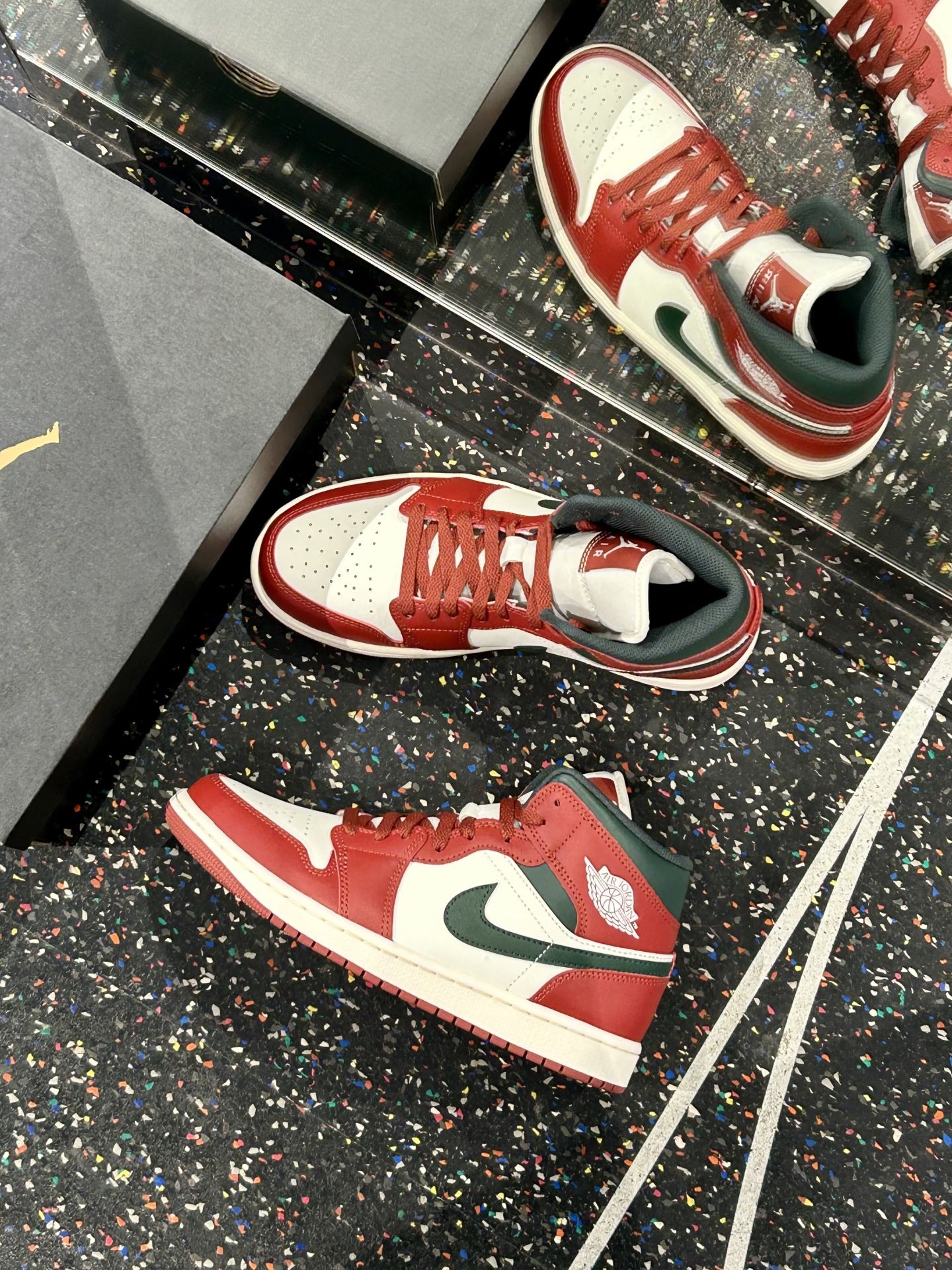 超绝好看的芝加哥配色 这双鞋我真的太喜欢了,感觉美爆了 ! 红白墨绿撞色真嘟吸睛呀! 复古感十足 有圣诞节🎄的氛围 鞋面用牛剖层革+织物拼接感 质感细腻又透气 秋冬穿它真的很保暖,搭配工装裤或休闲裤都很有复古潮流感!