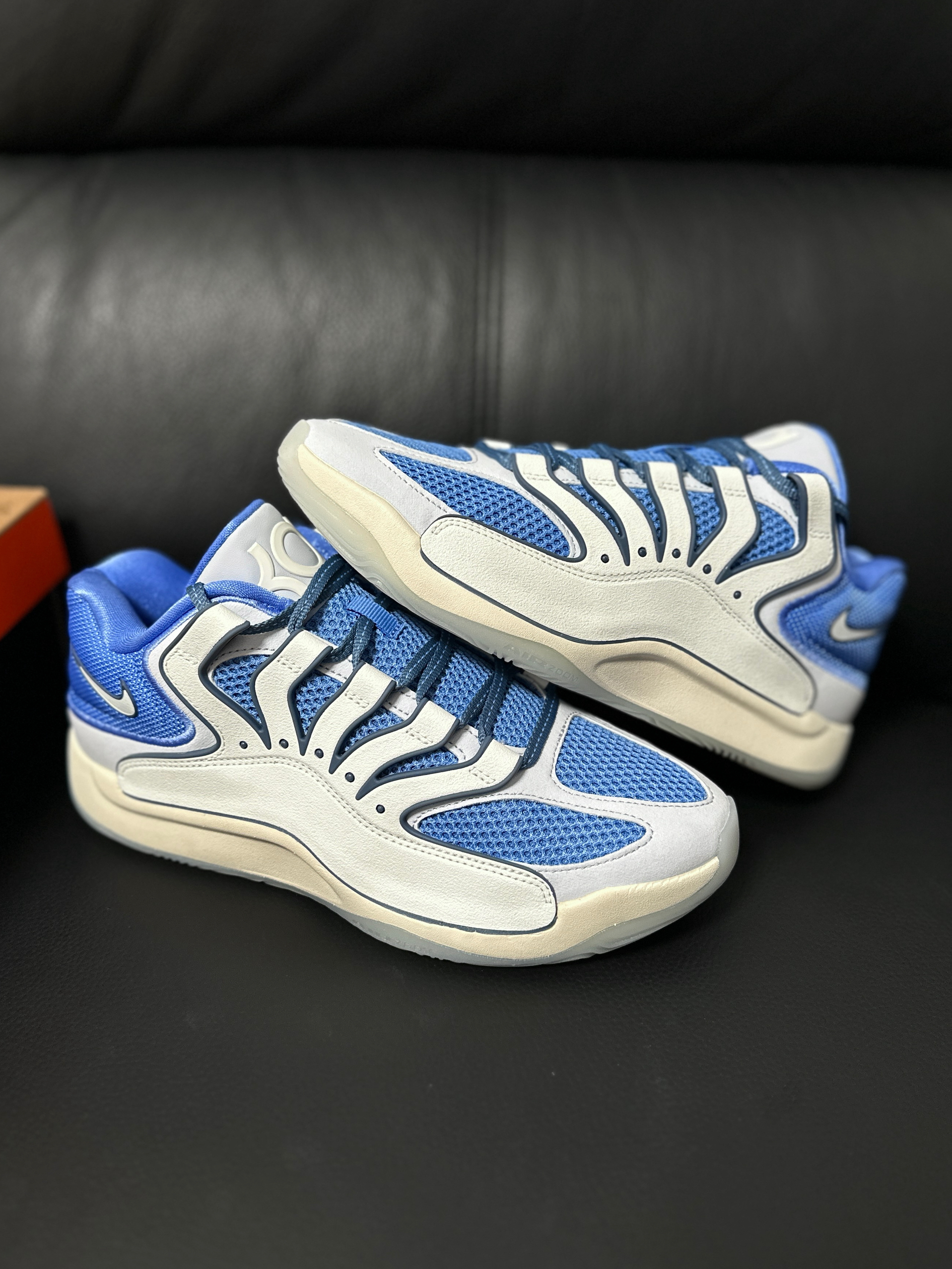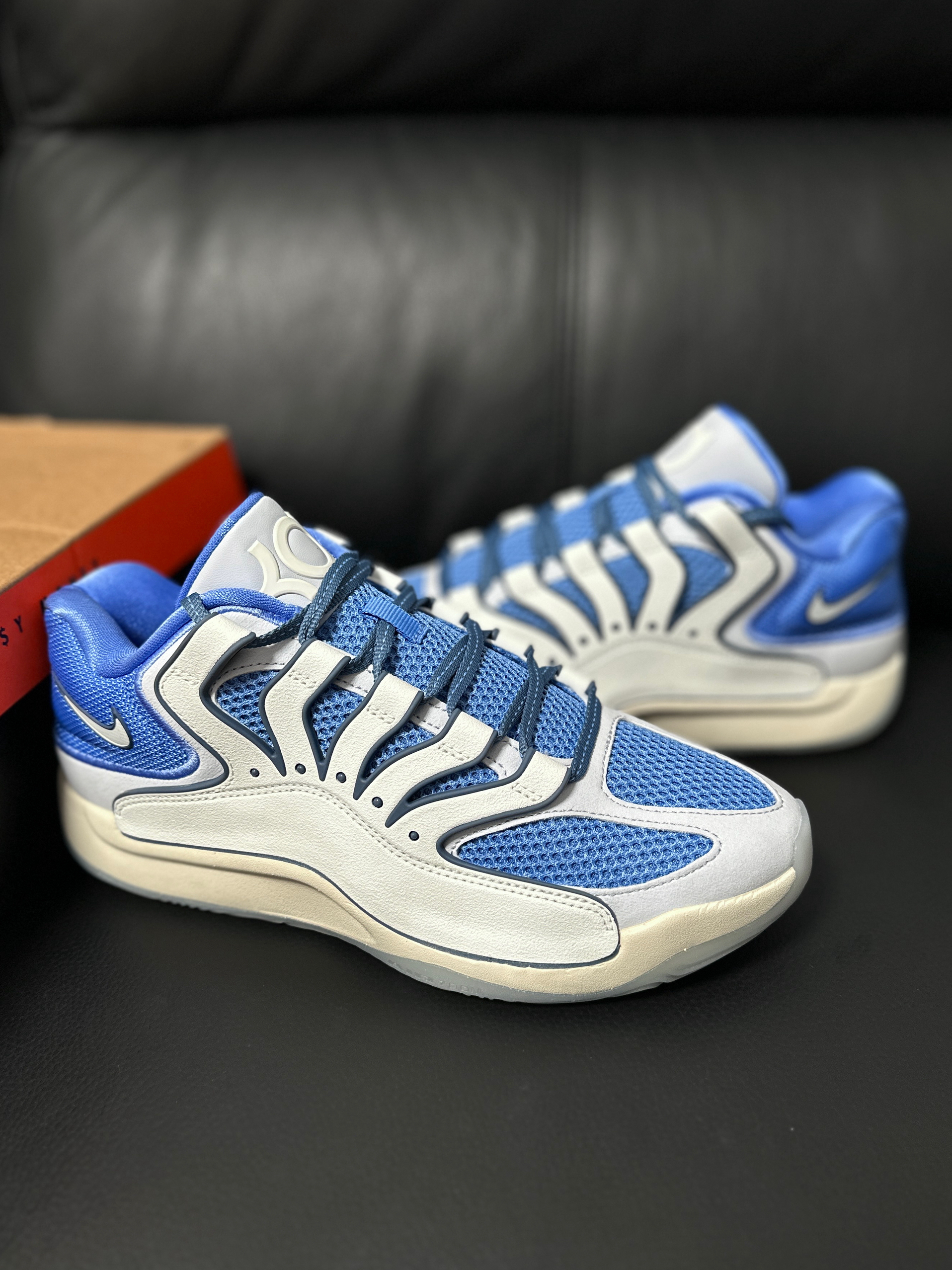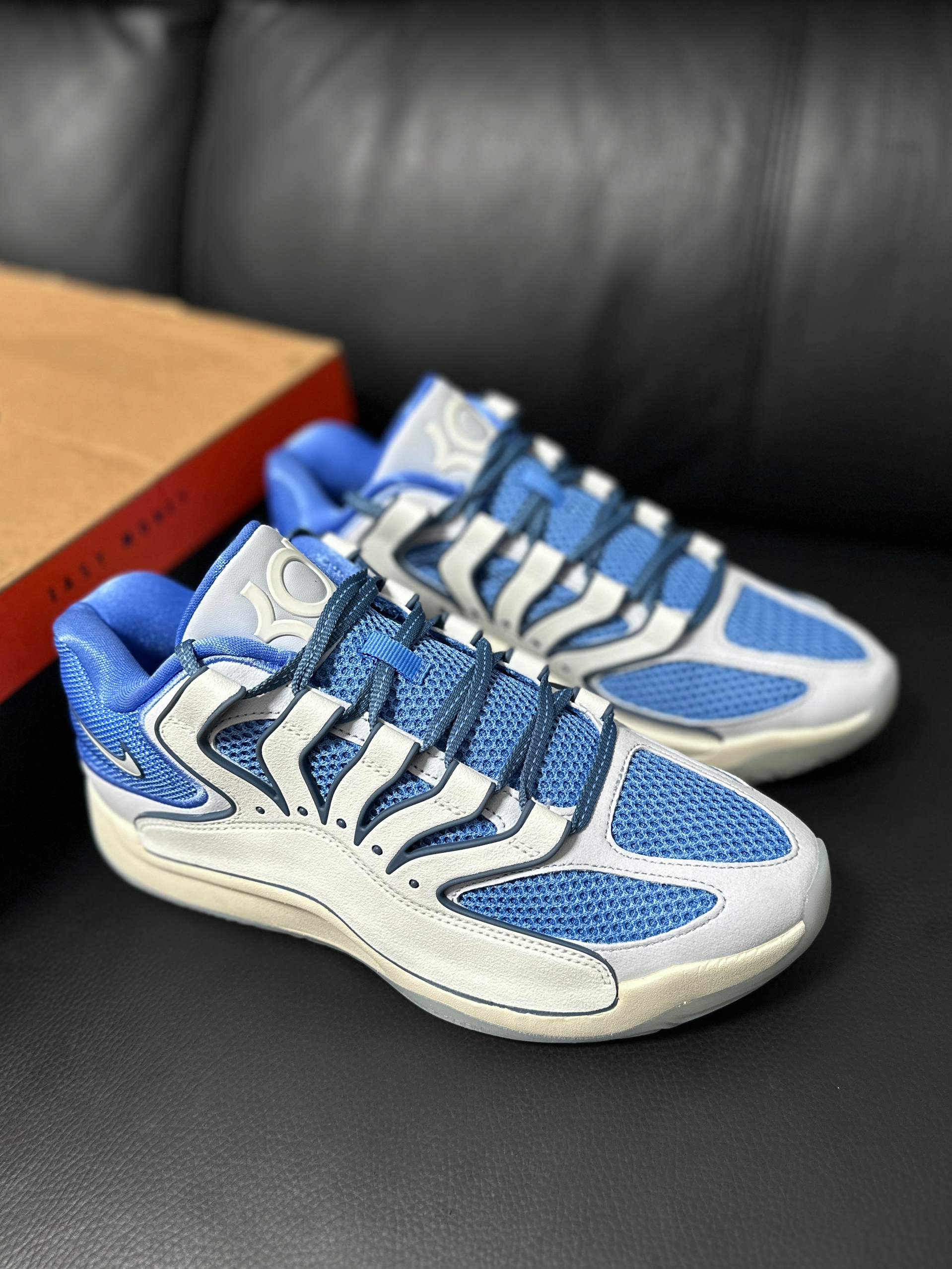 哈喽朋友们大家好呀,又是高冷同学全新一期的好鞋推荐!😝今天给朋友们带来的是一双白蓝色的kd18,这个配色相对来说比较冷门,但是颜值真的在线~ 最最新的杜兰特战靴,这双鞋子的实战性还是比较在线的!😍而且这个整体的外形设计很独特,白蓝色的结合让这双鞋子的外观显得非常好看~ 目前这个配色的价格还不是很高,而且白蓝色的鞋子我也比较喜欢,所以没有犹豫就拿下了~那么朋友们,你们对这双鞋又什么看法呢,在评论...