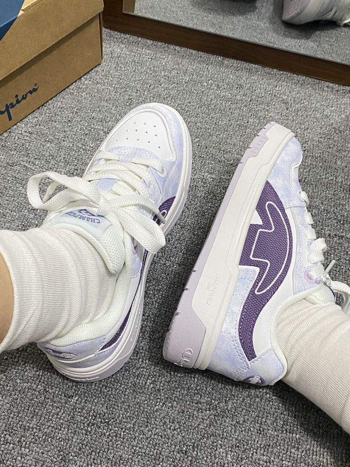 看看我近期敲爱穿的鞋子 就冠军介双板鞋 芋泥紫色我觉得敲温柔优雅风 鞋型也显脚细,不笨重 上脚脚感舒适还透气 我穿出去溜达也不觉得累脚呢 可以搭配牛仔裤休闲服都很好看呀 喜欢白色简约风板鞋的宝子可以冲了🛒