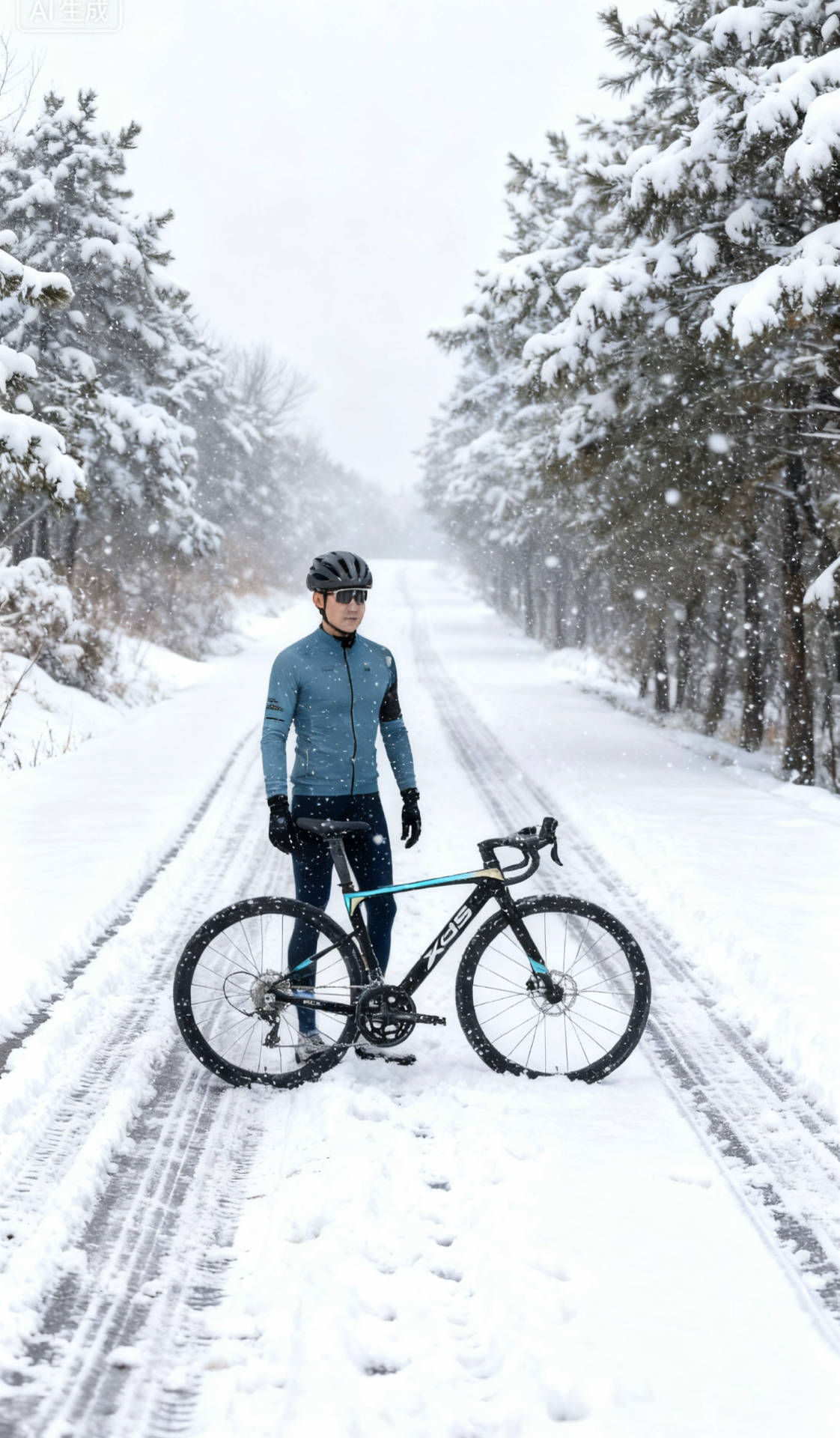 下雪也不是不能骑行的,找到没有积雪的大道路就能骑 我拍照这个地方肯定不能骑,我只是来这里拍照的 如果没有合适的道路不要强行在雪上骑,老老实实回家上骑行台吧 我这辆车铝合金车架很轻,顺泰变速套件换挡丝滑,油压碟刹制动也稳👍 图源网络侵删