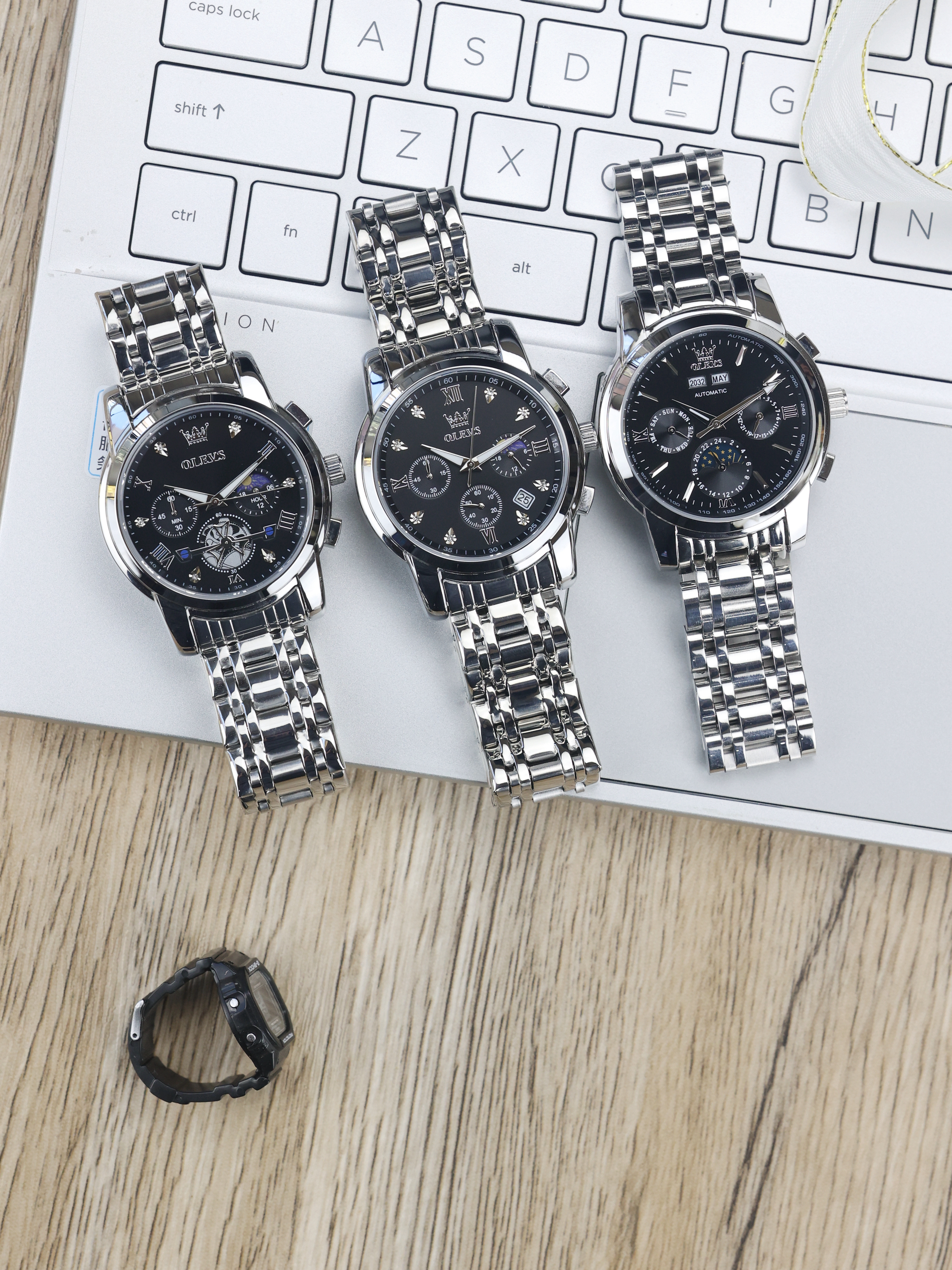 - 外观设计: 采用银+绿色撞色(表盘是复古墨绿色),搭配大数字刻度+夜光指针,表圈带计时刻度,整体是“复古运动风”,既适合日常通勤,也能搭配休闲装。 - 功能配置: - 50米防水(日常洗手、小雨可用,不建议游泳); - 石英机芯(每月误差±20秒内,电池续航约3年); - 矿物玻璃表镜(耐用防刮); - 日期显示功能(表盘右侧小窗)。 - 材质与尺寸: 表壳/表带是不锈...