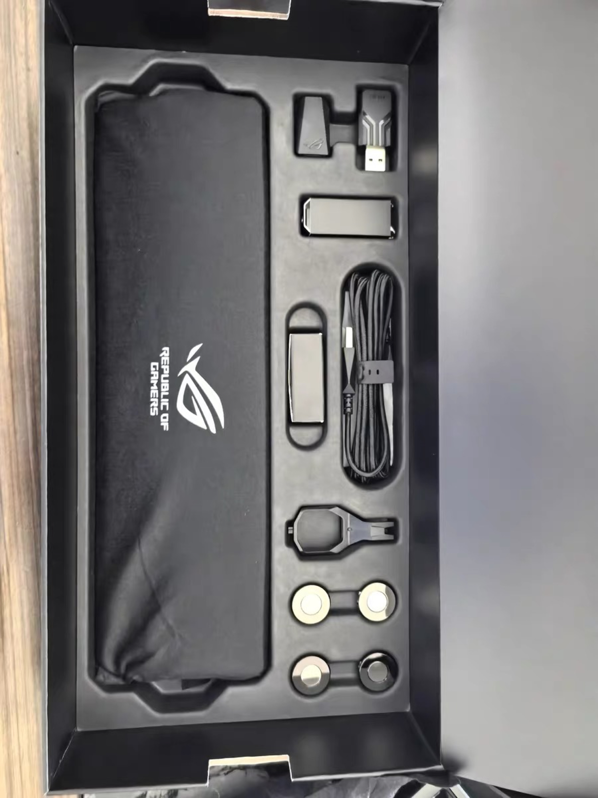 刚拆箱直接被仪式感砸懵——绒布收纳包+全套换轴/拔键工具+备用键帽轴体,ROG是把“高端”刻在包装里了🤯 ✅这个套装配件包括:绒布收纳包、换轴/拔键工具、备用键帽&轴体、数据线、磁吸配件、USB接收器支架。 聊聊实际体验: 1️⃣ 质感直接焊死“旗舰”:全铝合金机身+碳纤维定位板,拿在手里巨压手,刀纹细节+雷雕铭牌,摸一下就知道是贵货; 2️⃣ 手感能“一键定制”:可调Gasket拨杆切Har...
