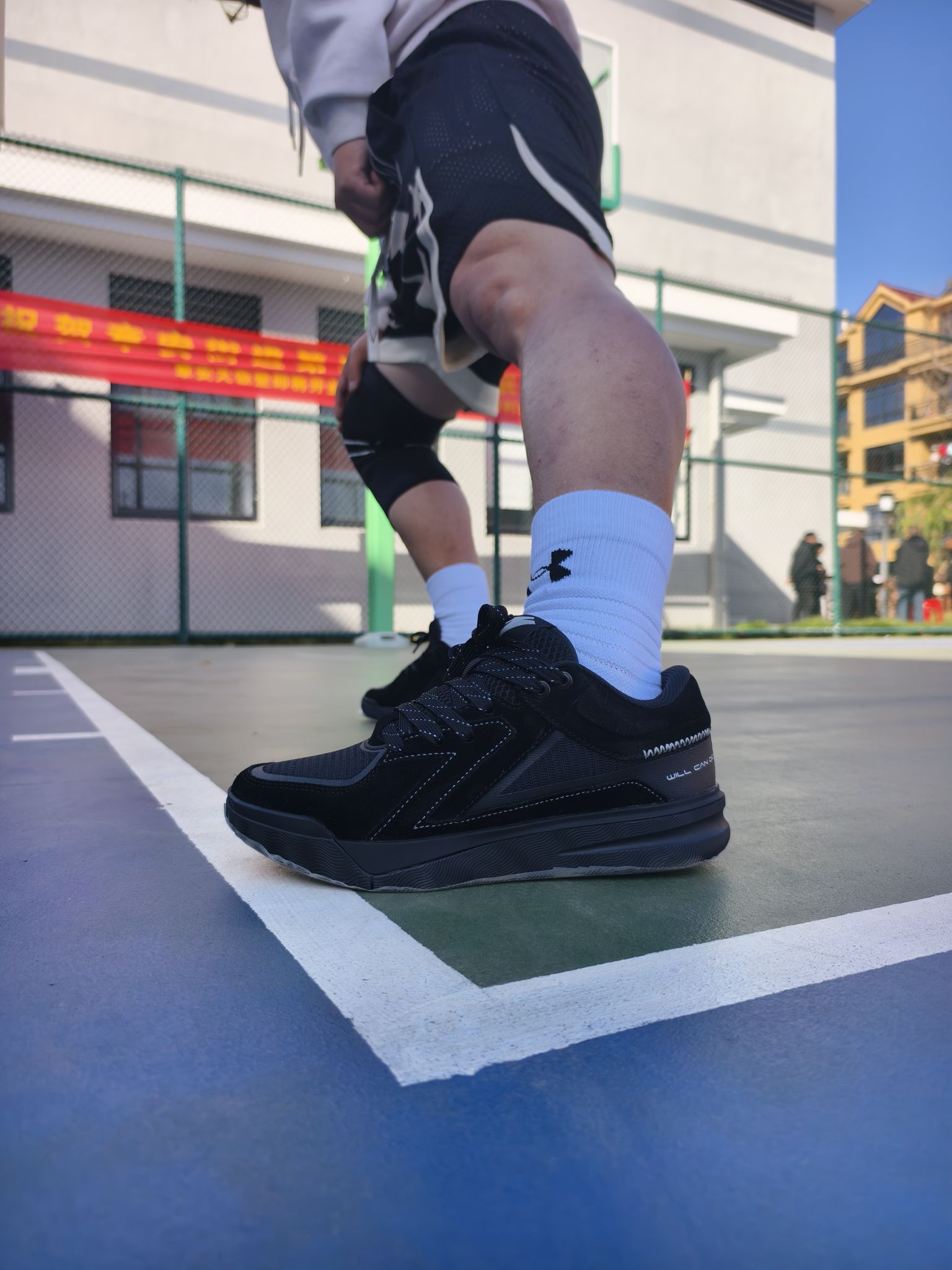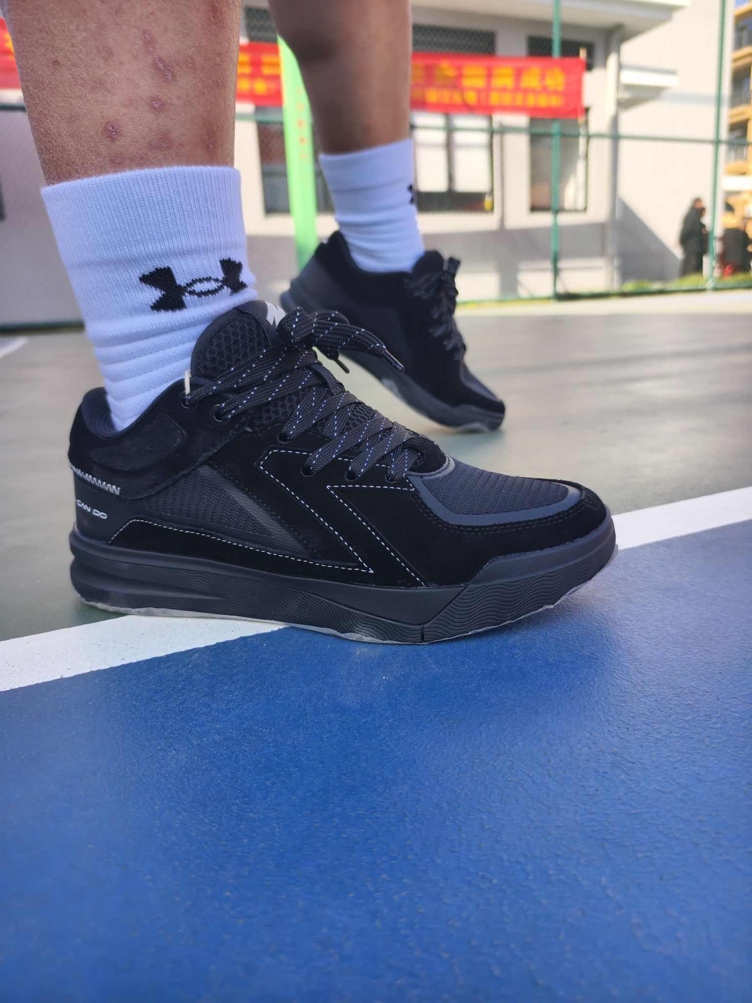 💼上班后,打球的时间减少,每次打球都争分夺秒,还要回家换个篮球鞋真的太麻烦了! 最近入手了这双有志者UZIS 全天一代V2完美的解决了这个问题!特别是这个黑武士配色更是懒人的福音!! ✨拿到手第一感觉就是“对味儿”——磨砂绒面和网眼拼接的鞋面,摸起来是那种软乎乎又带点韧劲的质感,“酷劲儿”十足。 👟上脚第一脚踩下去,中底是那种“软而不塌”的反馈,包裹感很舒服,绒面部分贴合脚踝,平时走路不会觉...
