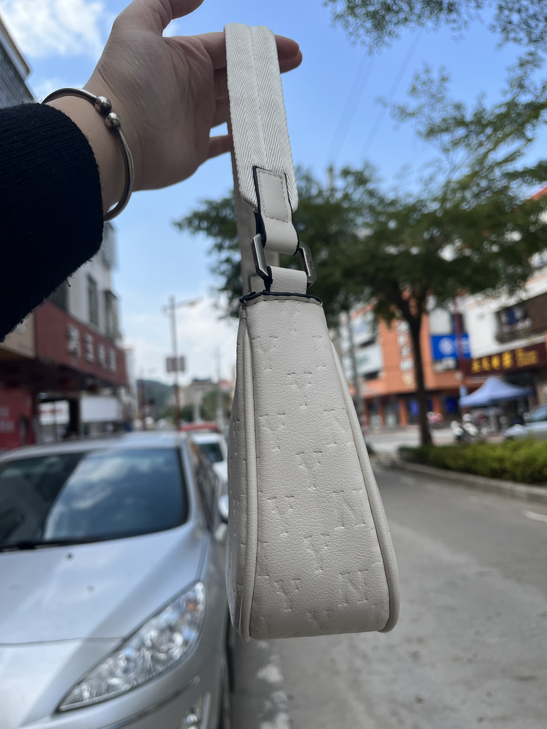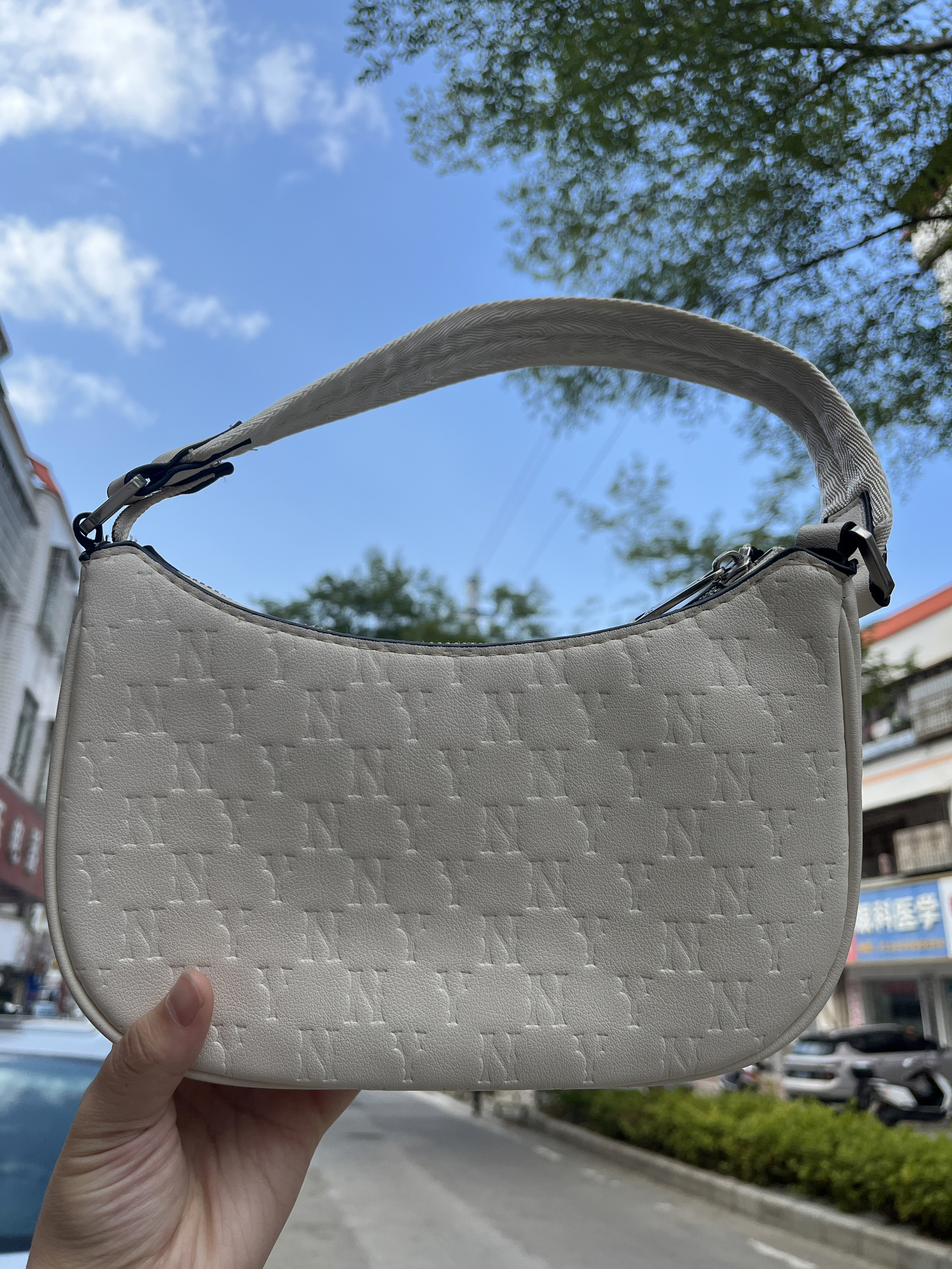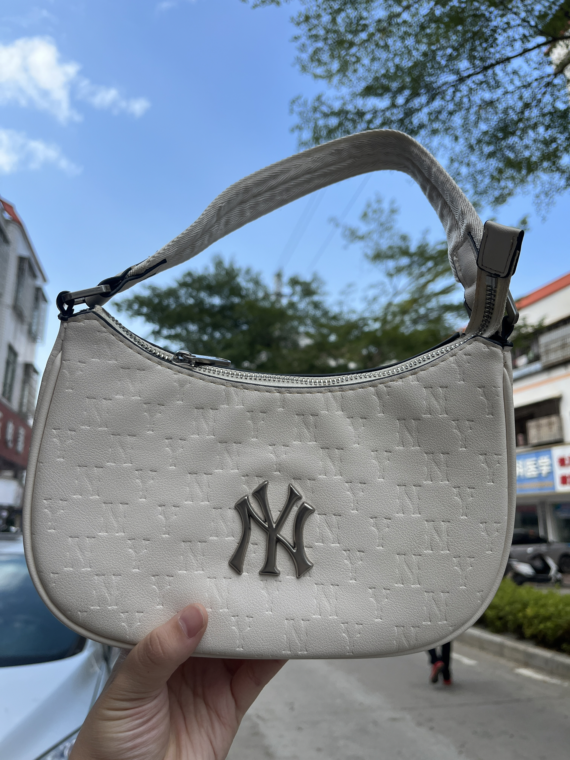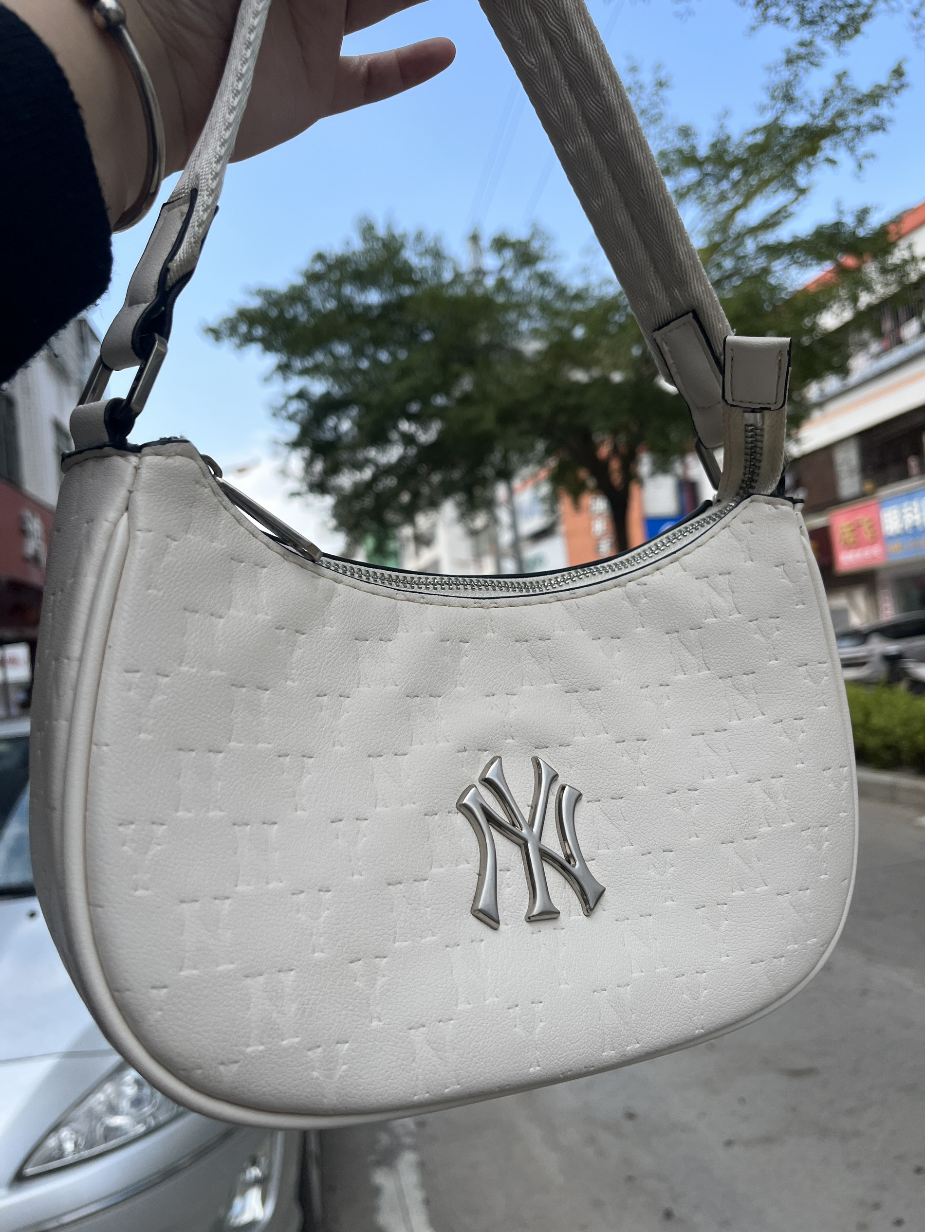 入手这款 MLB 腋下包啦,奶白色很清新,老花压纹+NY 标,日常搭衣服挺好看。容量装手机、钥匙、口红这些小物件没问题。但浅色容易脏,得小心护理,不过整体还是满意~🛒好物名称: