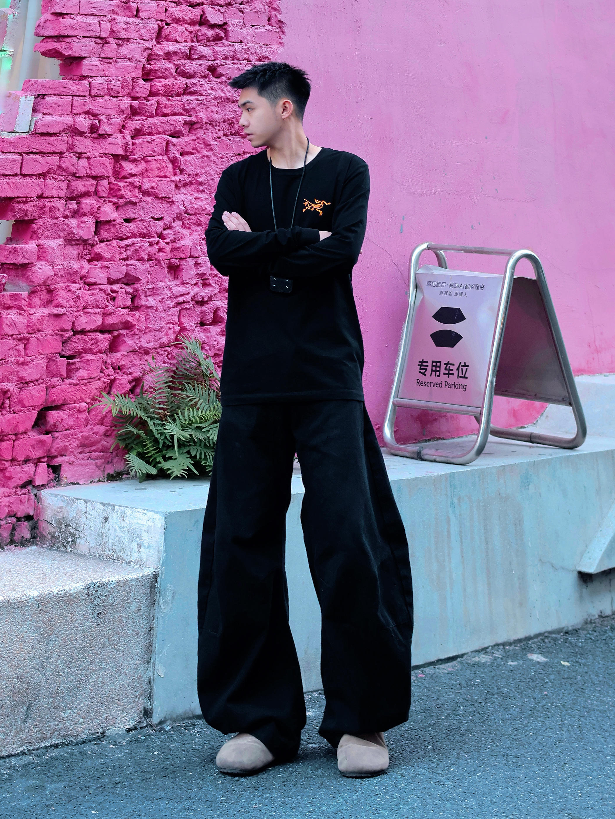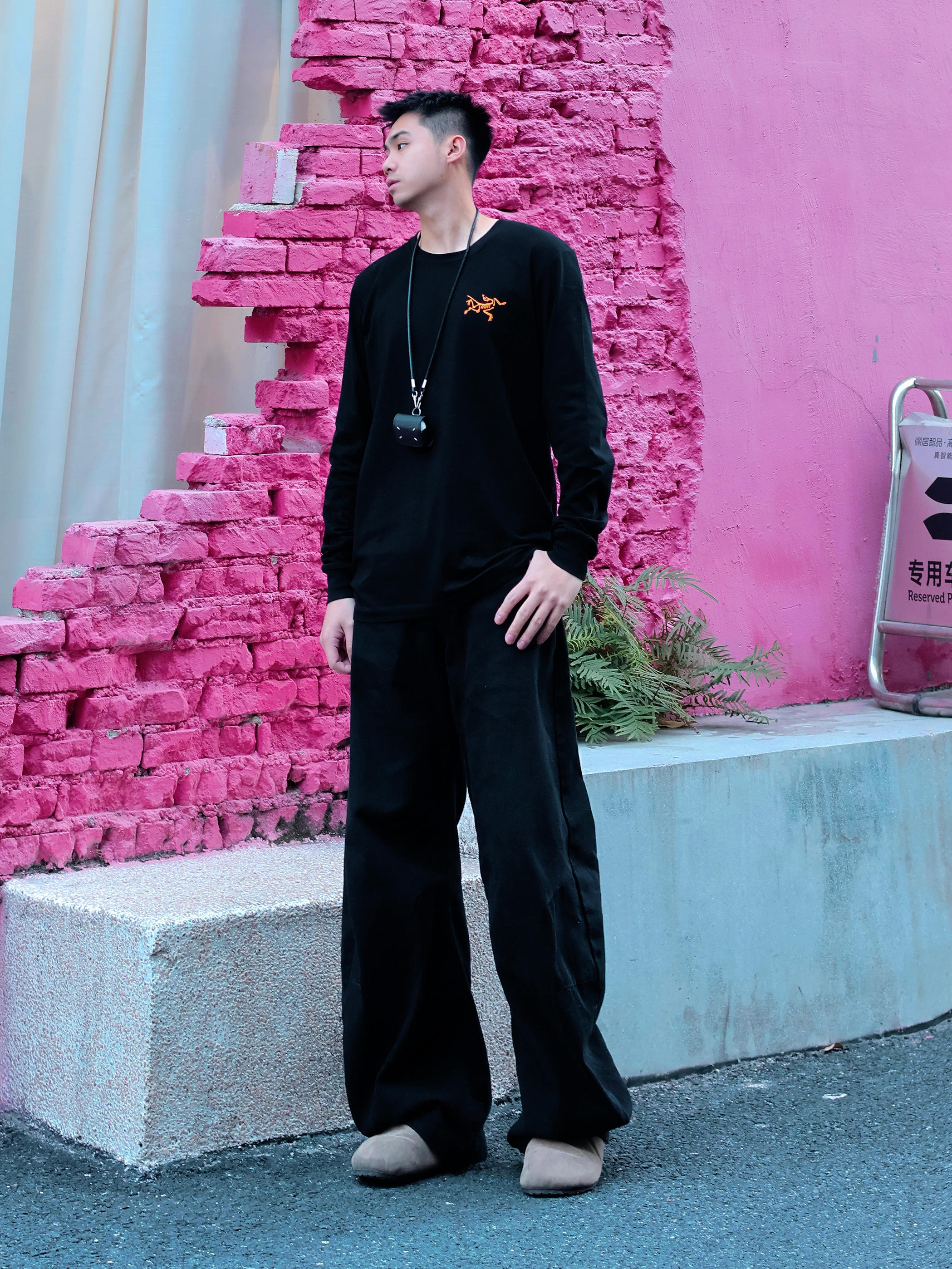 入冬不喜欢太臃肿🤔 来套复古休闲穿搭吧~ 冬天也喜欢穿all black 上身一件始祖鸟长袖,内搭或者外穿都很酷! 不出意外这应该是鸟牌最大的标了(背面)😁 下身可以搭配一条弯刀西裤 配一双复古博跟鞋 这套我还选择了一个(挂式的耳机壳)作为点睛之笔 这套出街也是松弛感拉满啦~ 你们觉得还能搭配什么小物件增加层次感?