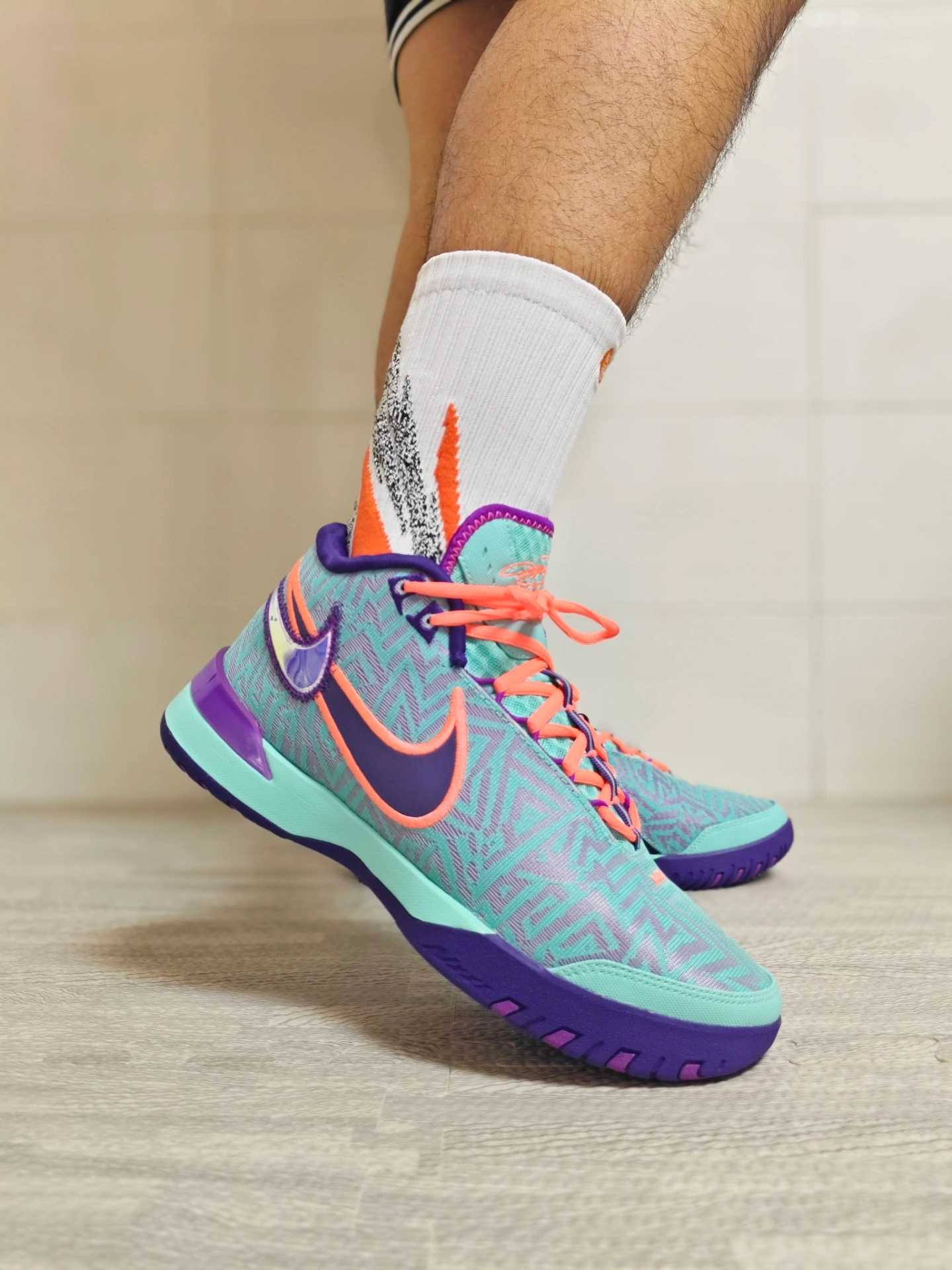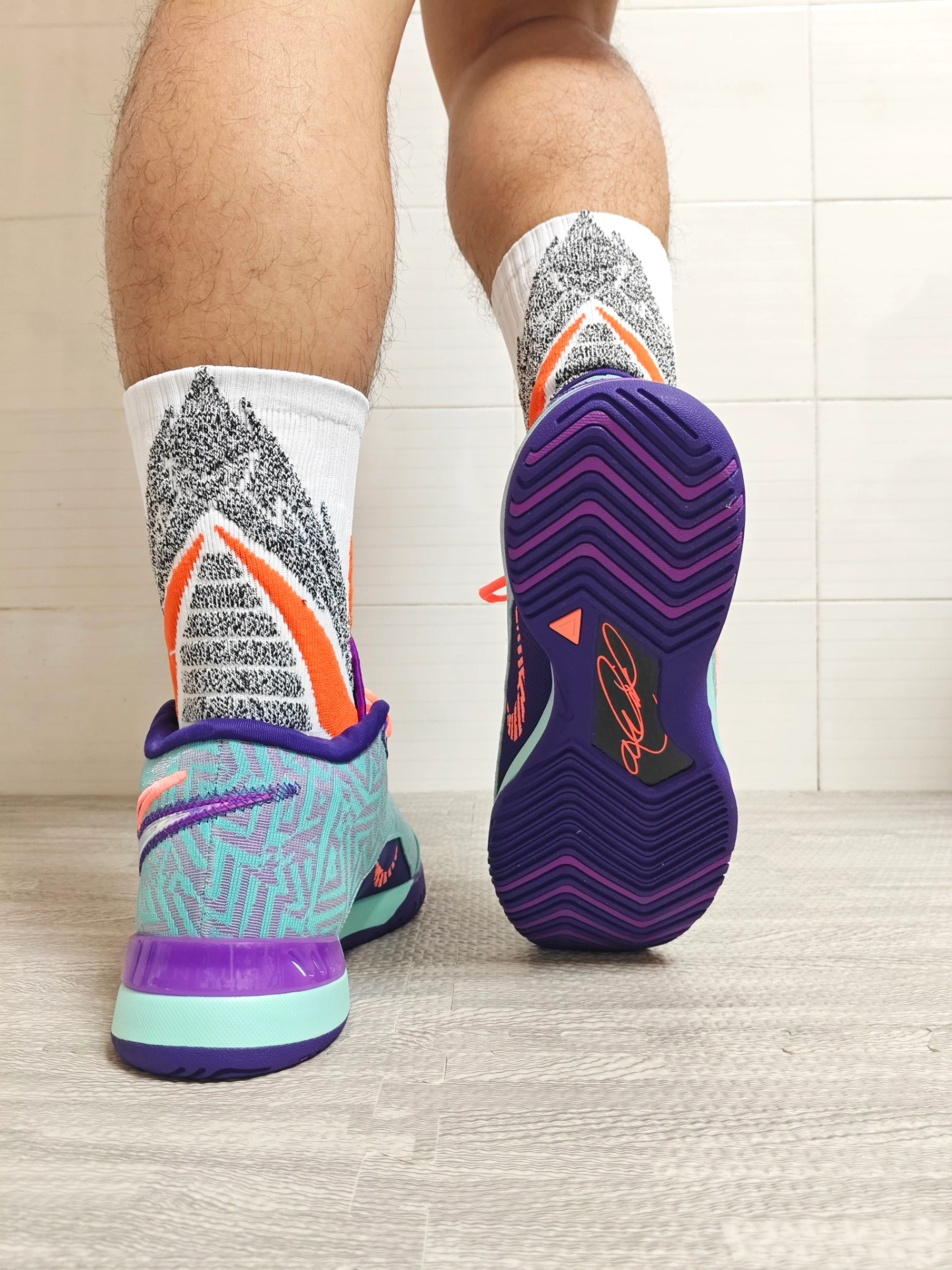 最近我上脚体验了这双维动淬炼pro篮球袜,不仅颜值在线,而且上脚舒适度高搭配这双球鞋也是很合适💥 🧦球袜大部分区域的防滑纱设计搭配脚底大面积防滑纹路,大大提升了脚与鞋内的摩擦力,打球时急停变向稳得很,不会出现打滑的情况。不管是学生党日常训练还是打球实战,都是性价比超高的靠谱选择👍