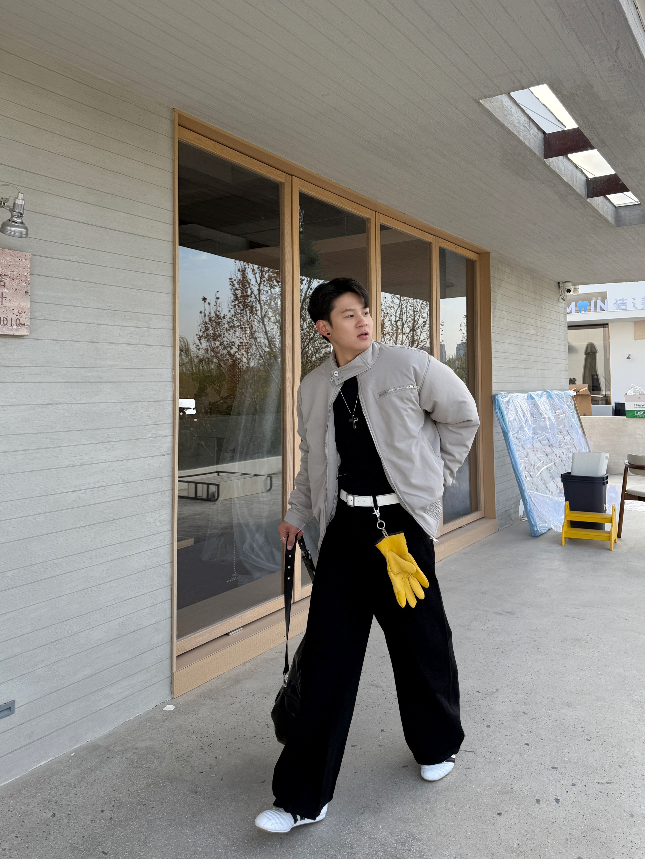 一直在找一款不夸张的直筒微喇阔腿裤 这款BOTANICA完全符合我的审美 高腰直筒微喇的版型穿起来显高还藏肉 棉质面料穿起来舒服而且、垂感十足~ 微喇的裤腿脚口还有褶皱收紧,整体看起来不会显腿粗 最重要的百搭,穿起来泰酷了! 我180/140上身XL刚刚好合适 上衣我选择是一件飞行夹克 整体下来cleanfit感十足~ 很chill的一套通勤穿搭~