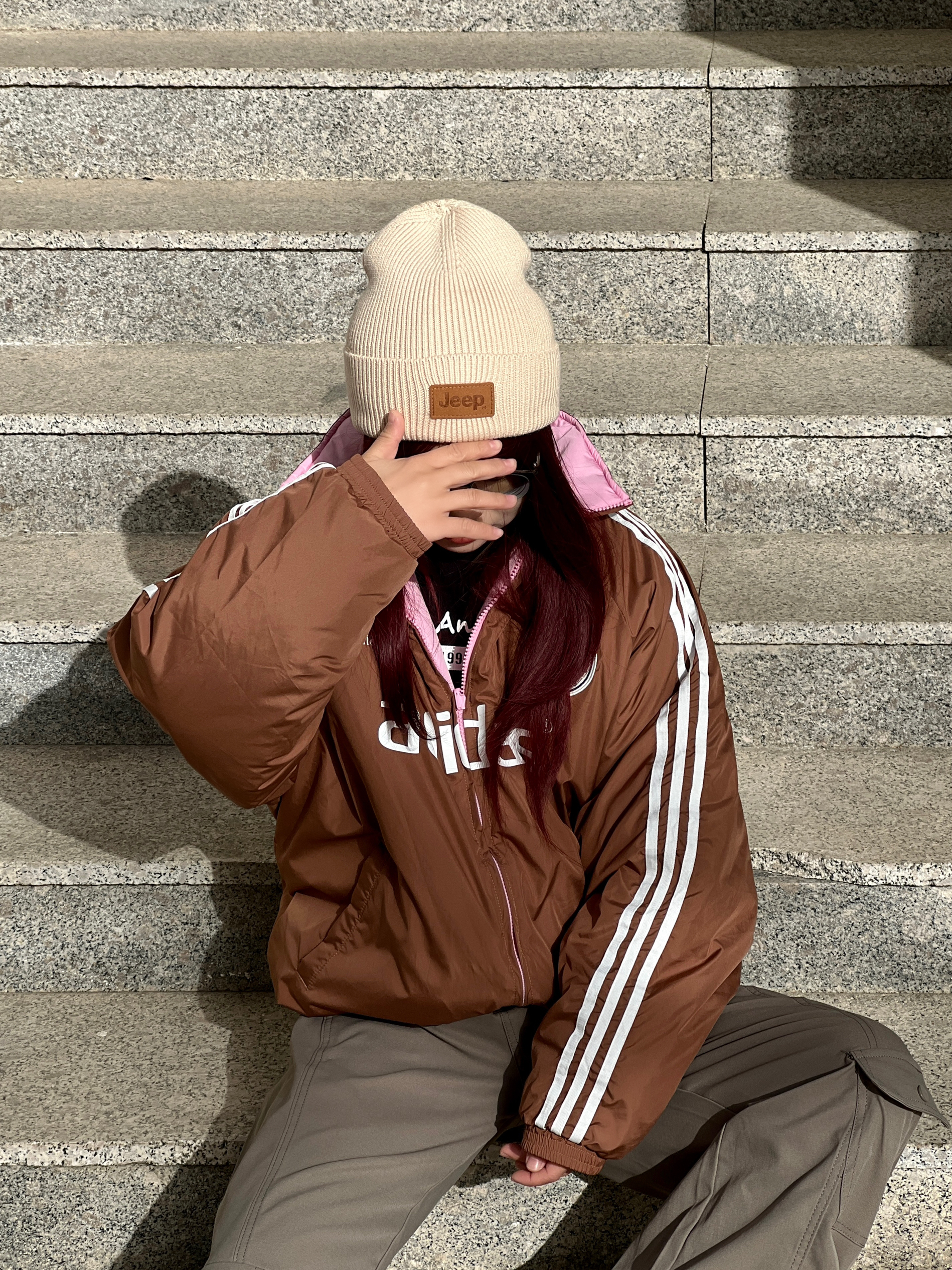 #冬天就要穿简单点 棕绿才是冬日复古配色天花板❗️ 🏾棕色阿迪棉服➕灰绿色工装裤➕棕色主调的keen➕卡其色冷帽 全身以低饱和色调为主 穿不腻的复古色🎨