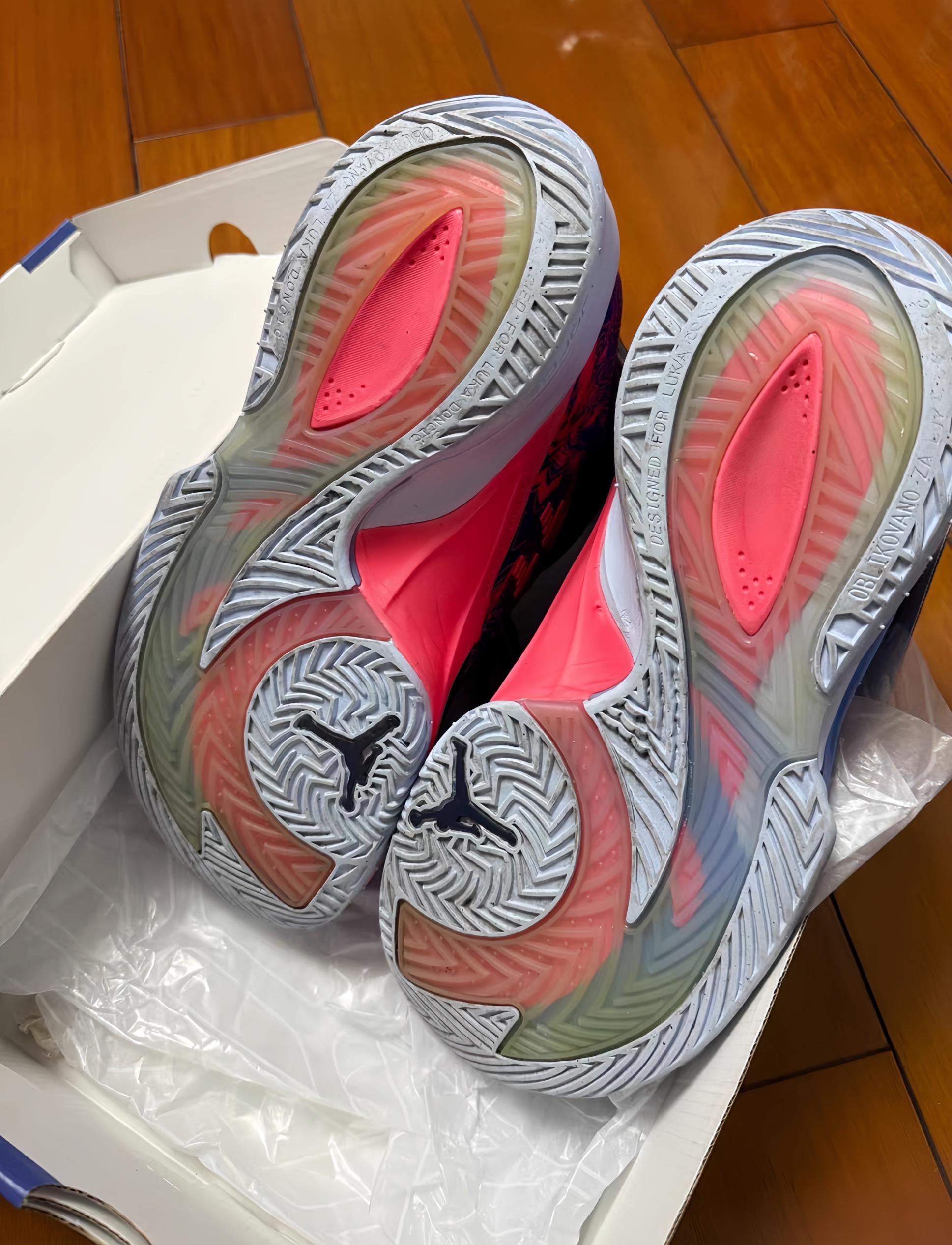中底采用Cushlon+Phylon组合,吸震效果出色,后跟制动蓄力起跳时稳定性足,落地缓冲够用,大体重或力量型锋线、内线穿着无压力。外底全掌大人字纹+厚实橡胶,在木地板、塑胶地抓地干脆,纹路深且耐磨,室外实战也能扛,偶尔吸灰擦一下就能恢复抓力。
