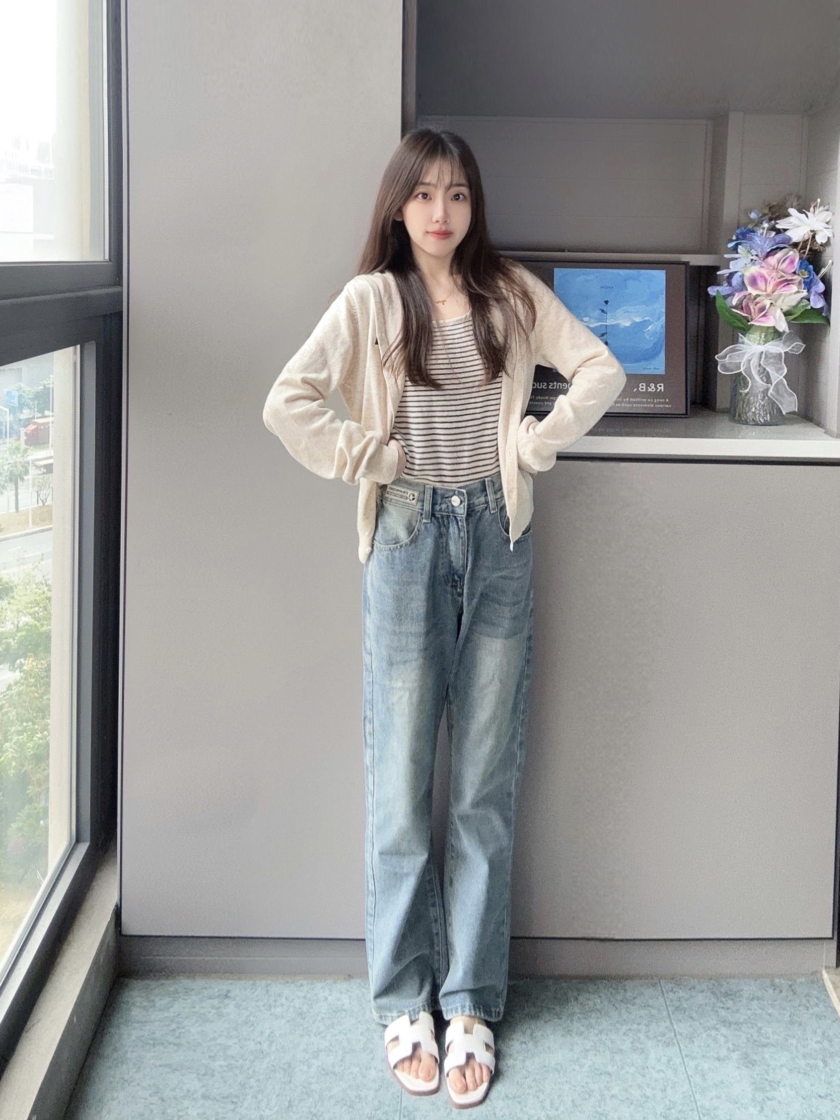 秋冬喜欢穿的简约舒适🐾 简单的条纹针织衫假两件 搭配 阔腿牛仔裤👖 很舒服又很时髦的一套穿搭哟