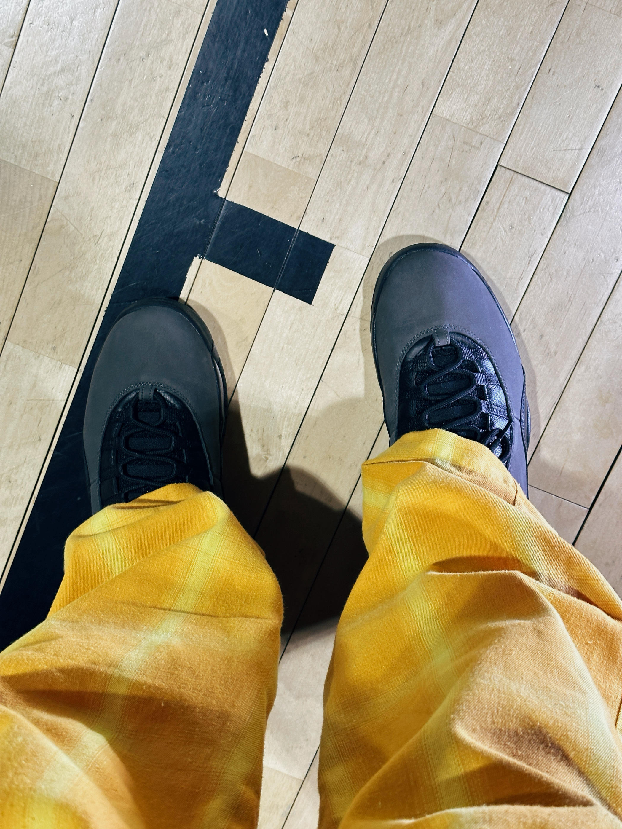 上脚以后我是 45 的 窄脚型 低脚背 扁平足,我穿 45 的鞋有点紧,鞋楦做的偏窄,而且鞋头处的空间不是很宽阔,所以脚趾头在里面有点紧绷,如果你是 宽脚型 建议选择大半码,可能会更舒服一些! 静态穿着的时候呈现出前低后高的重心感受,厚度适中偏薄,有意思的是因为是 3/4 的全掌 Air Sole 嘛,所以你的脚趾其实更贴地一些! 缓震方面:只能说有点效果但不多,比普通板鞋要软,比篮球鞋...
