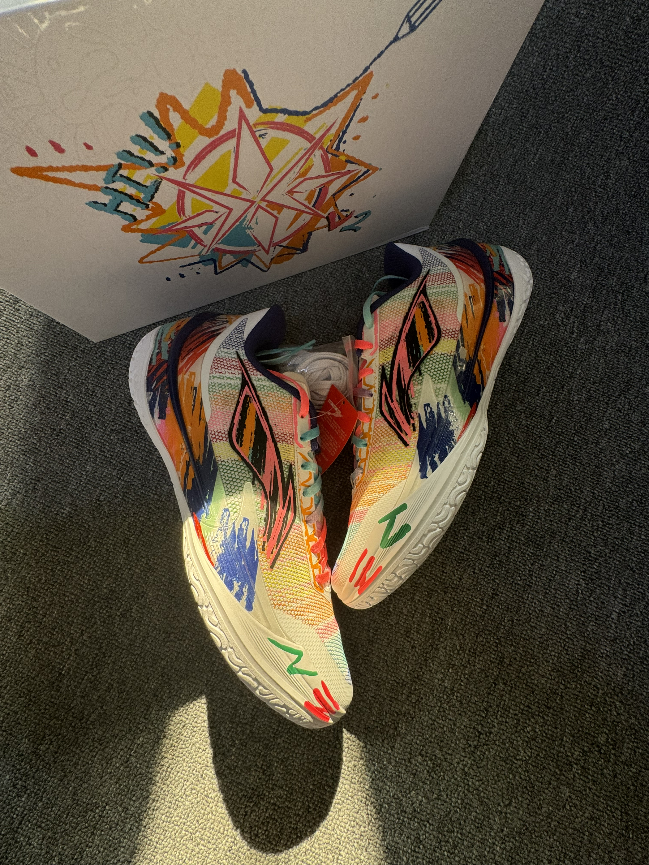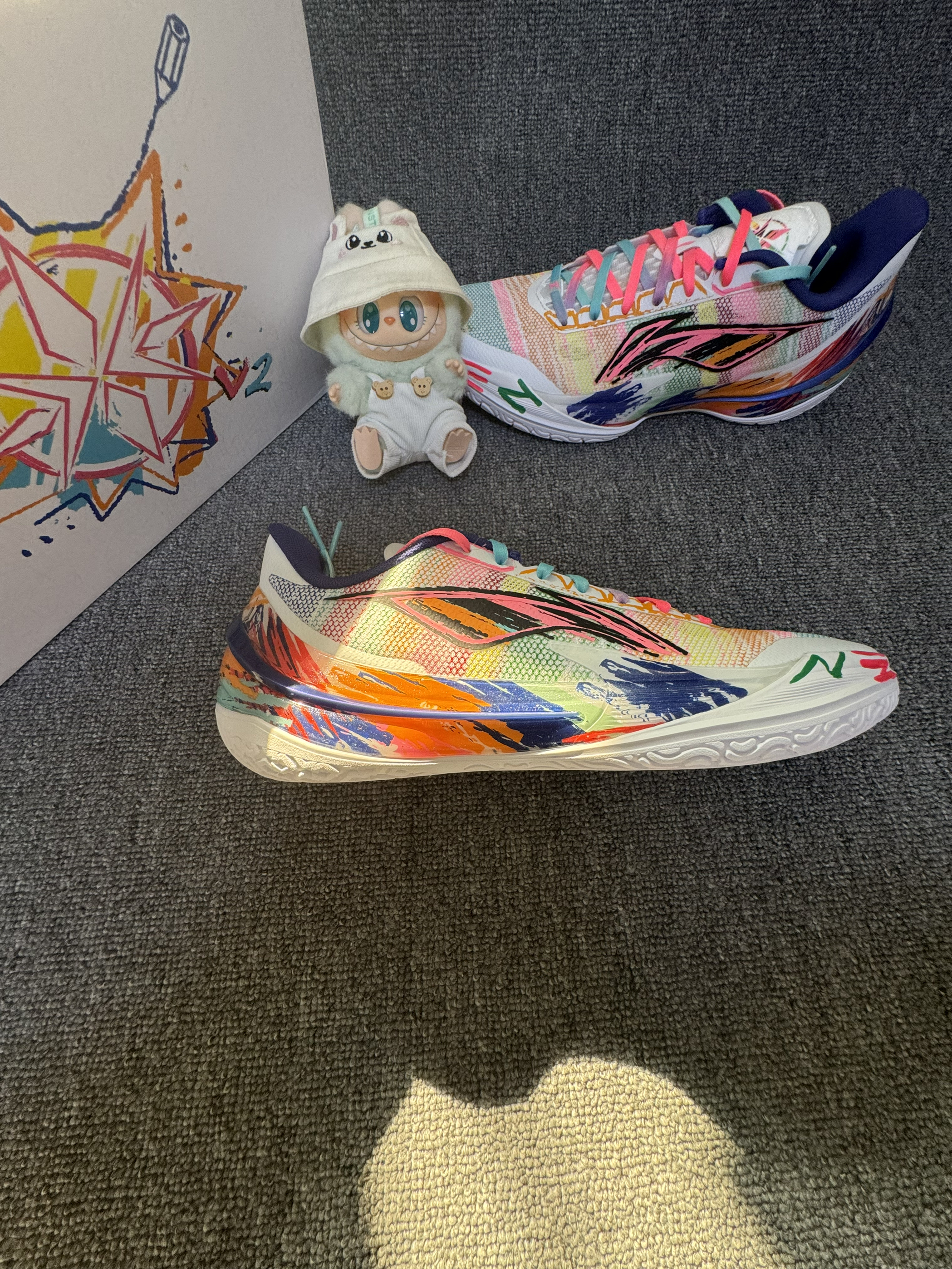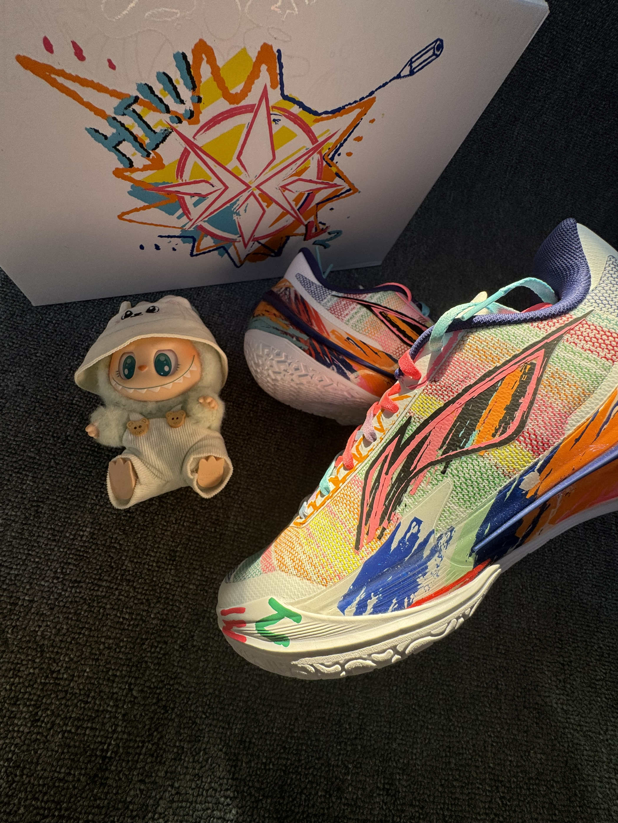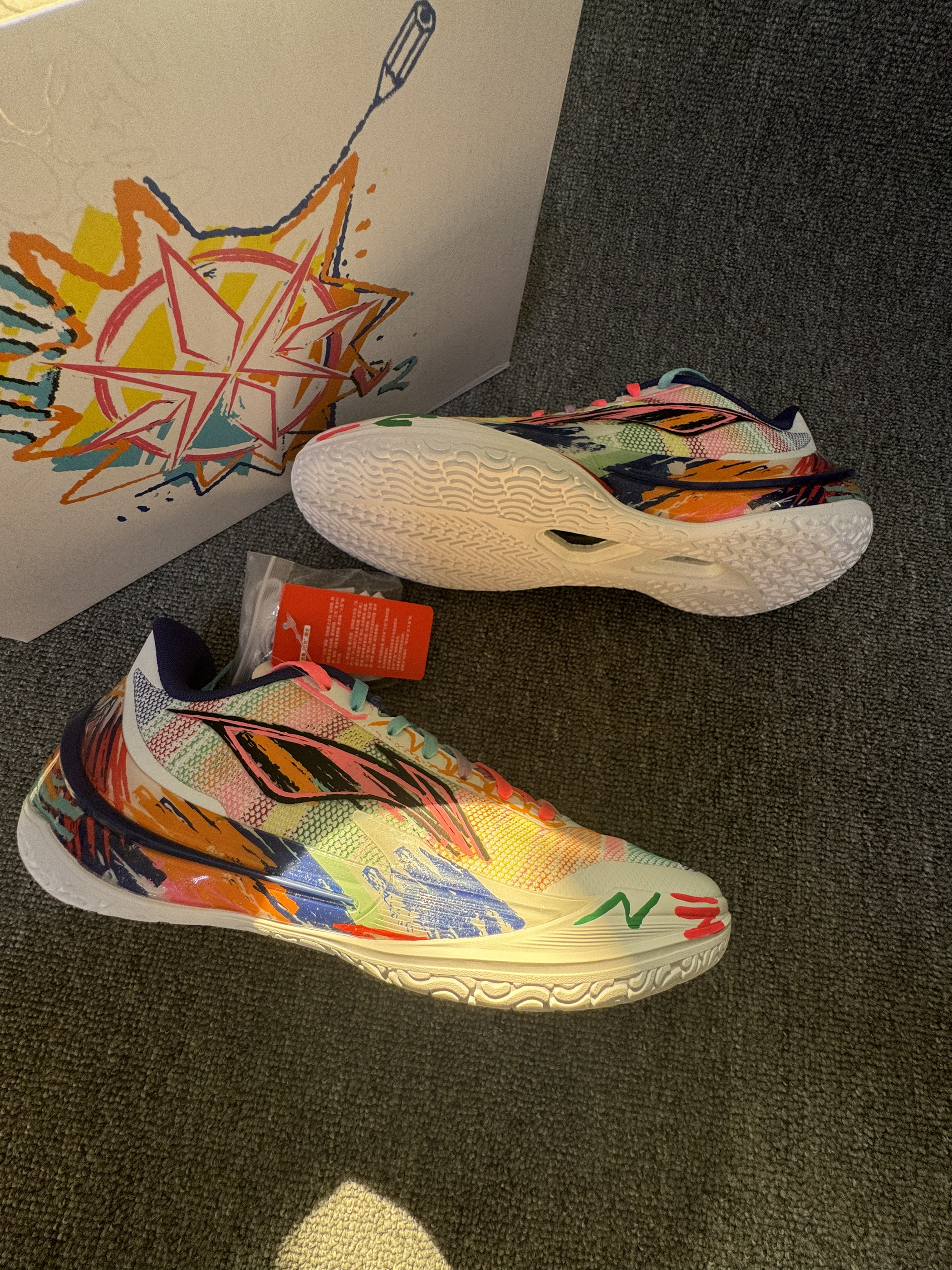 李宁的这款内向艺术家初见很惊讶,满身涂鸦。居然是一款篮球鞋,灵感来源于关爱自闭症儿童,彩色的鞋身配色很有意思,能打又很有温度的一双鞋子! 鞋舌可撕设计,也是细节感满满! 包裹一体性很舒服,但是个人感觉偏适合正常及偏瘦脚型,编织鞋面贴合度很高,可稍偏大半码或者袜子不要太厚,低帮7孔设计,很灵活,但是脚胖或者宽可能会压脚背,同时鞋楦前掌要窄一点,宽脚初期可能会磨脚趾,尽量试穿好合适的尺码,谨慎选择! ...