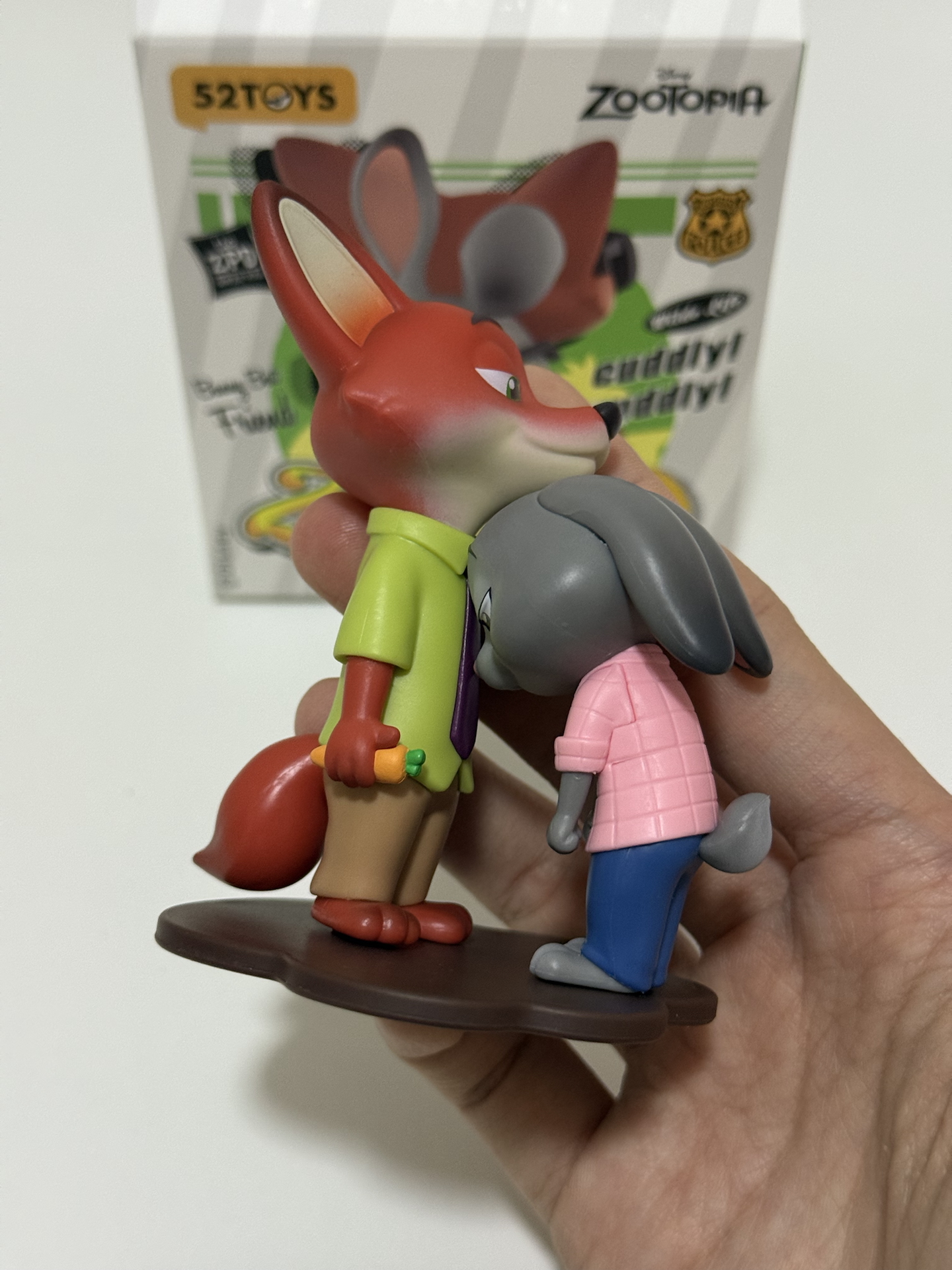 我拆到尼克朱迪相拥款啦!造型软萌细节还多,摸起来也细腻好rua~摆桌上像把电影里双向奔赴的瞬间留住了,心情都亮堂些✨ 就是盲盒抽到想要的款得看运气,我这次算欧气附体咯~