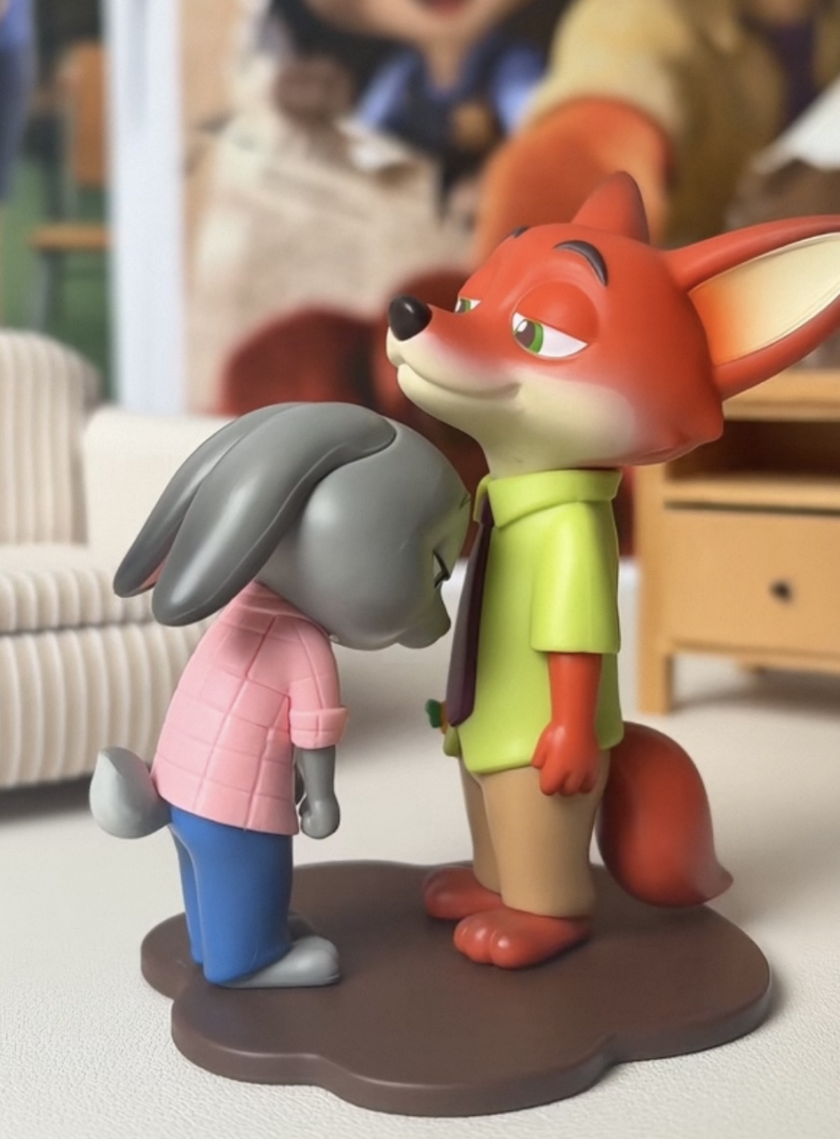 迪士尼粉看过来!🎀 我入了52TOYS疯狂动物城的盲盒,拆到想要的尼克和朱迪款,直接爱住!实物8 - 9cm左右,触感硬实很有质感~朱迪委屈耷拉头,尼克像大哥哥护着,这互动感绝了!📸 摆桌上超有氛围感~不过盲盒随机性强,要是没拆到心仪款还挺失落的🥀 但喜欢这对CP的宝子可以冲!