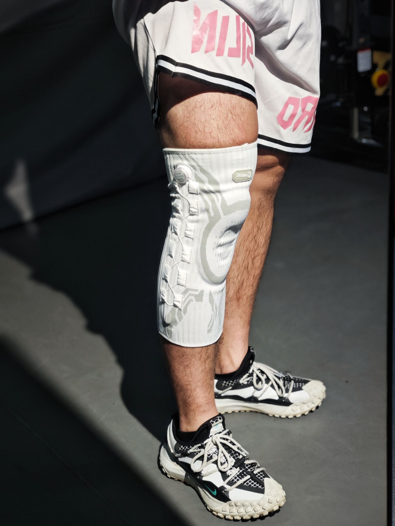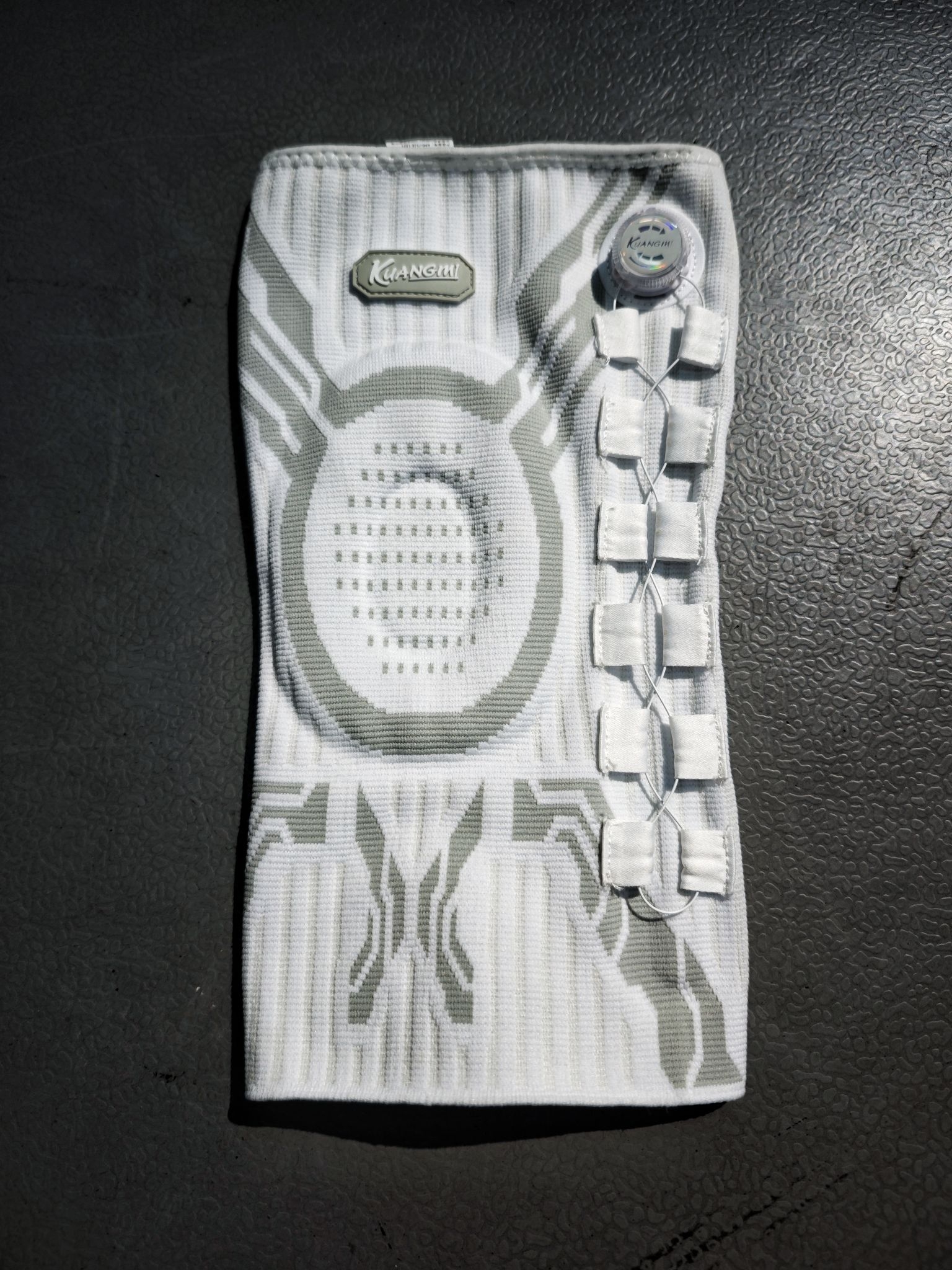 今天去健身房练腿,特意戴了狂迷这款护具护膝,全程练下来还挺安心的。 它的旋转纽扣太好调了,拧几下就能精准加压,牢牢护住髌骨。做杠铃深蹲时,膝盖不管是弯曲还是发力,护膝都贴得很稳,没有移位晃荡的情况,支撑感很足。练完腿切换到椭圆机,持续踩踏时膝盖转动顺畅,护膝不会卡腿,也没影响动作幅度。 透气性也做得不错,练腿出了一身汗,膝盖周围没闷出黏腻的汗渍,面料贴着皮肤不闷也不磨。要说小细节的话,刚开...