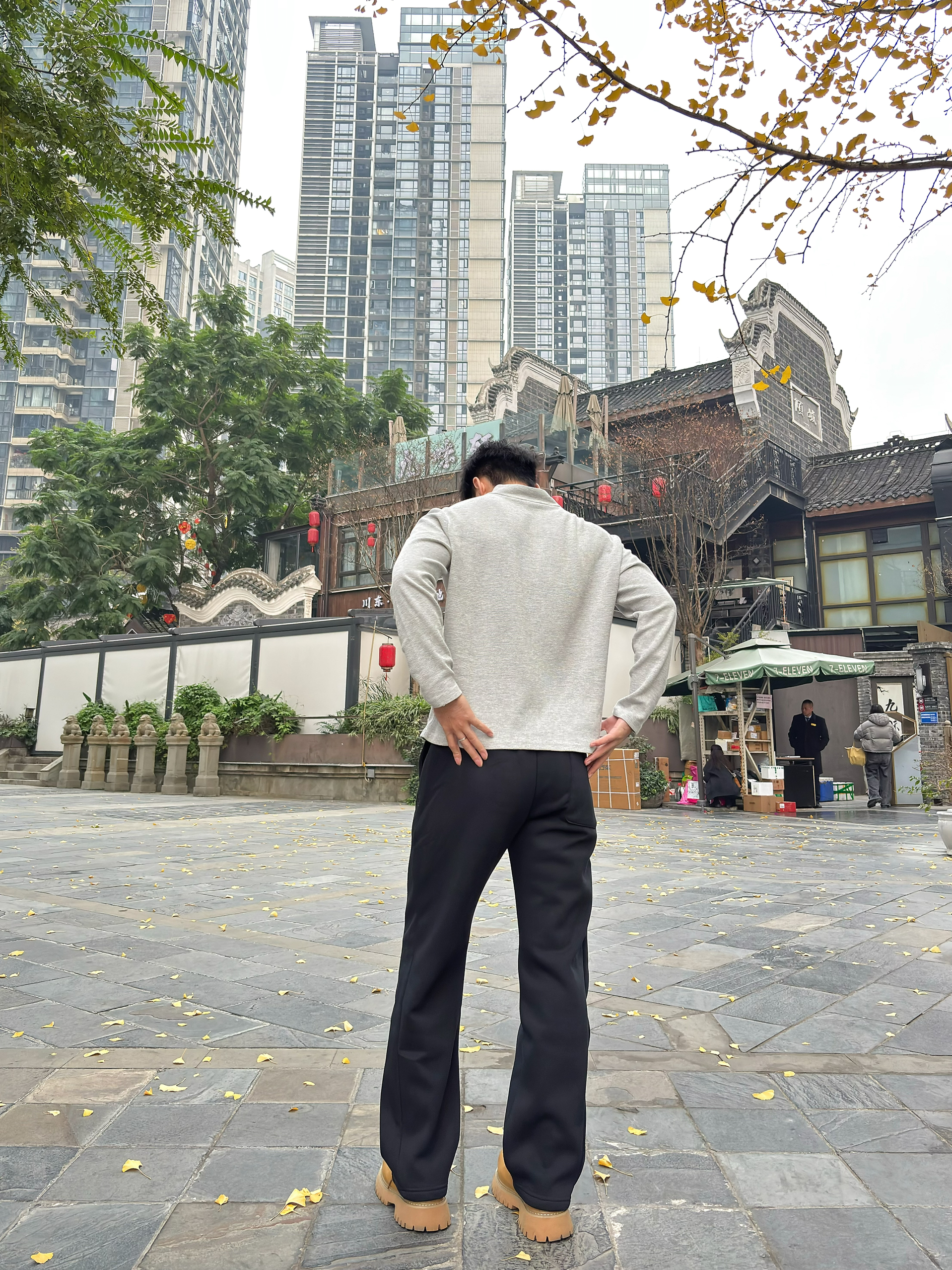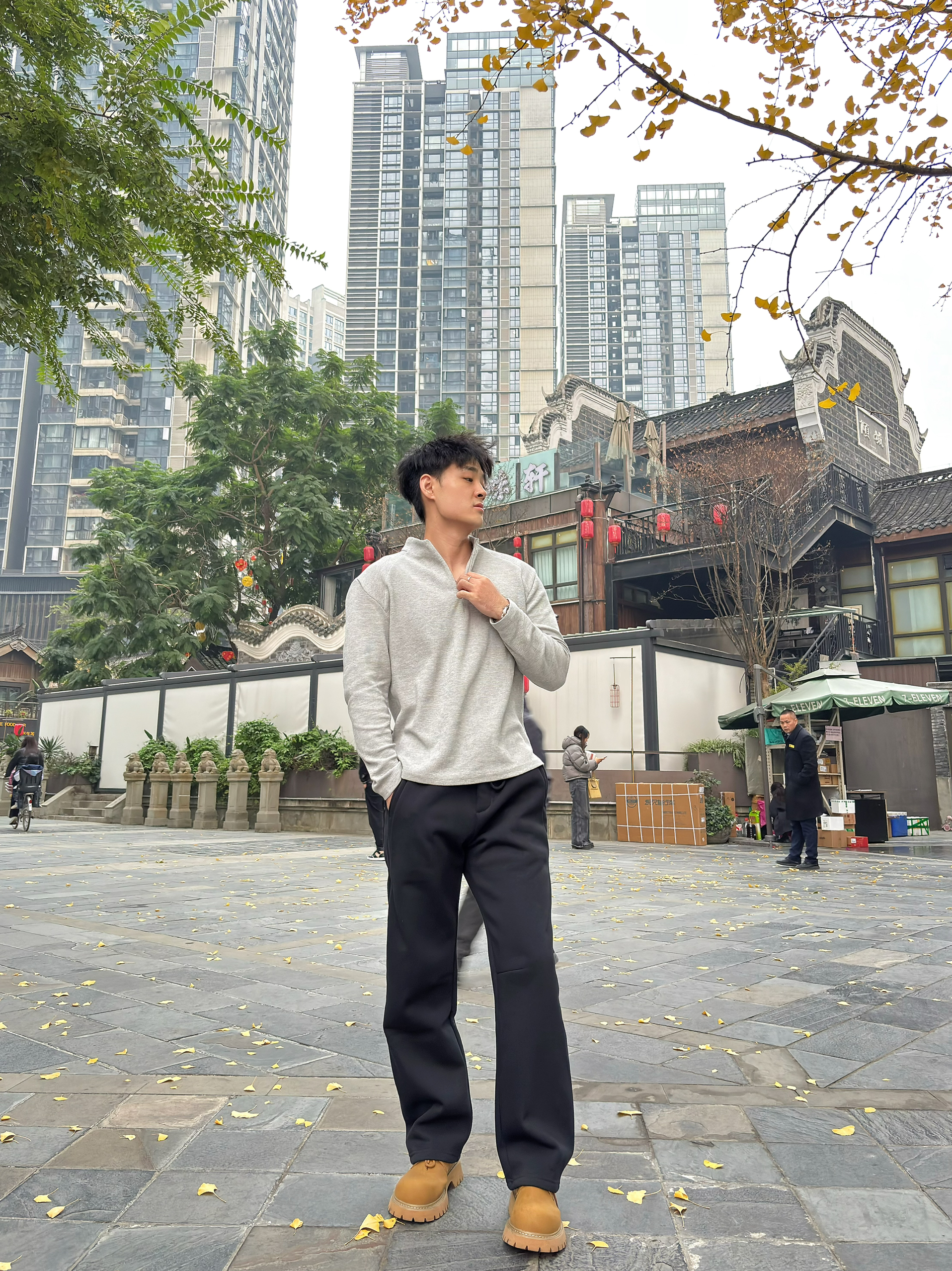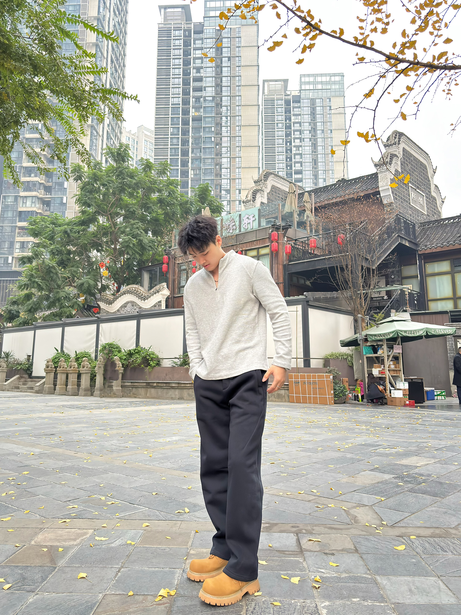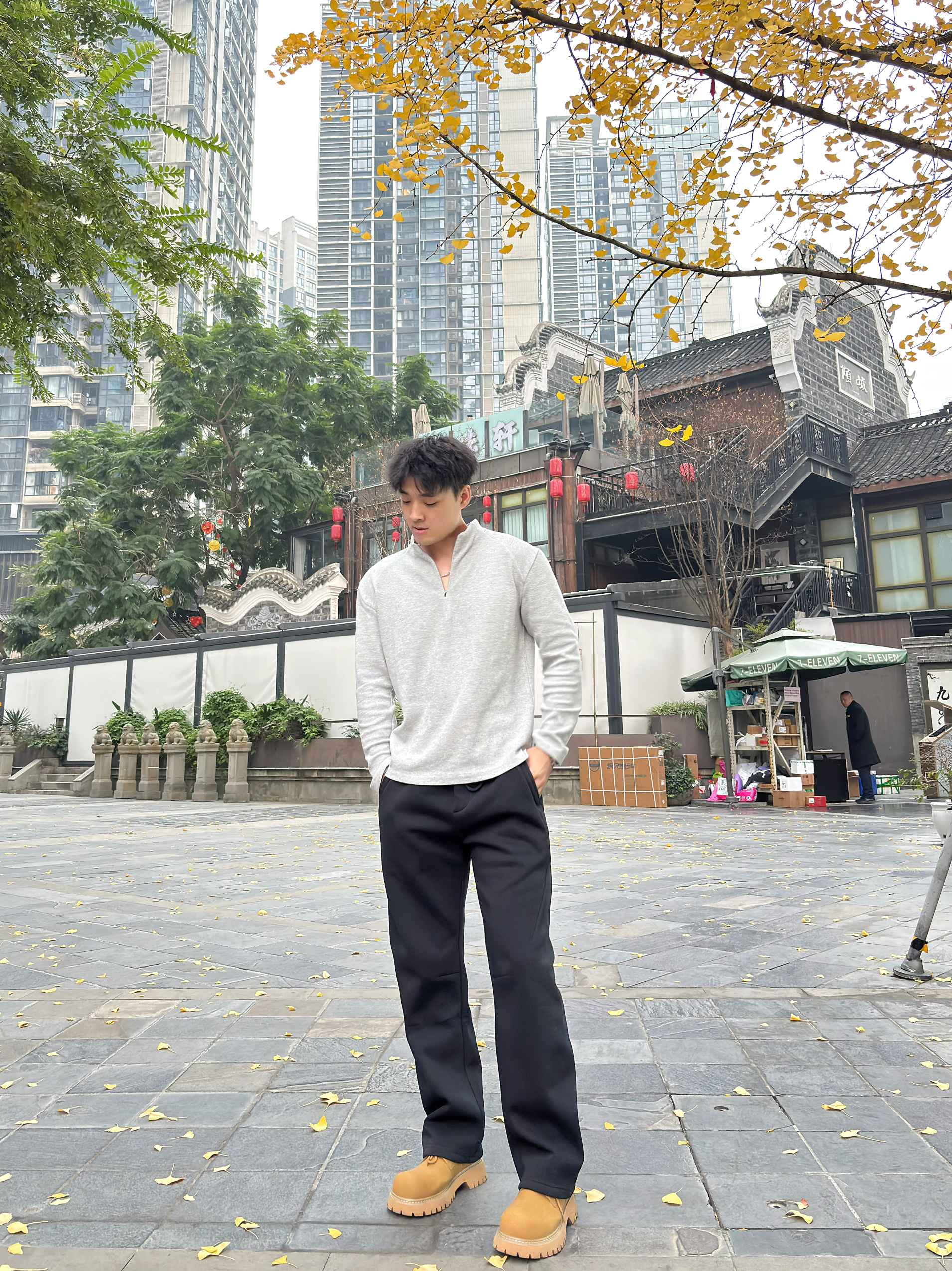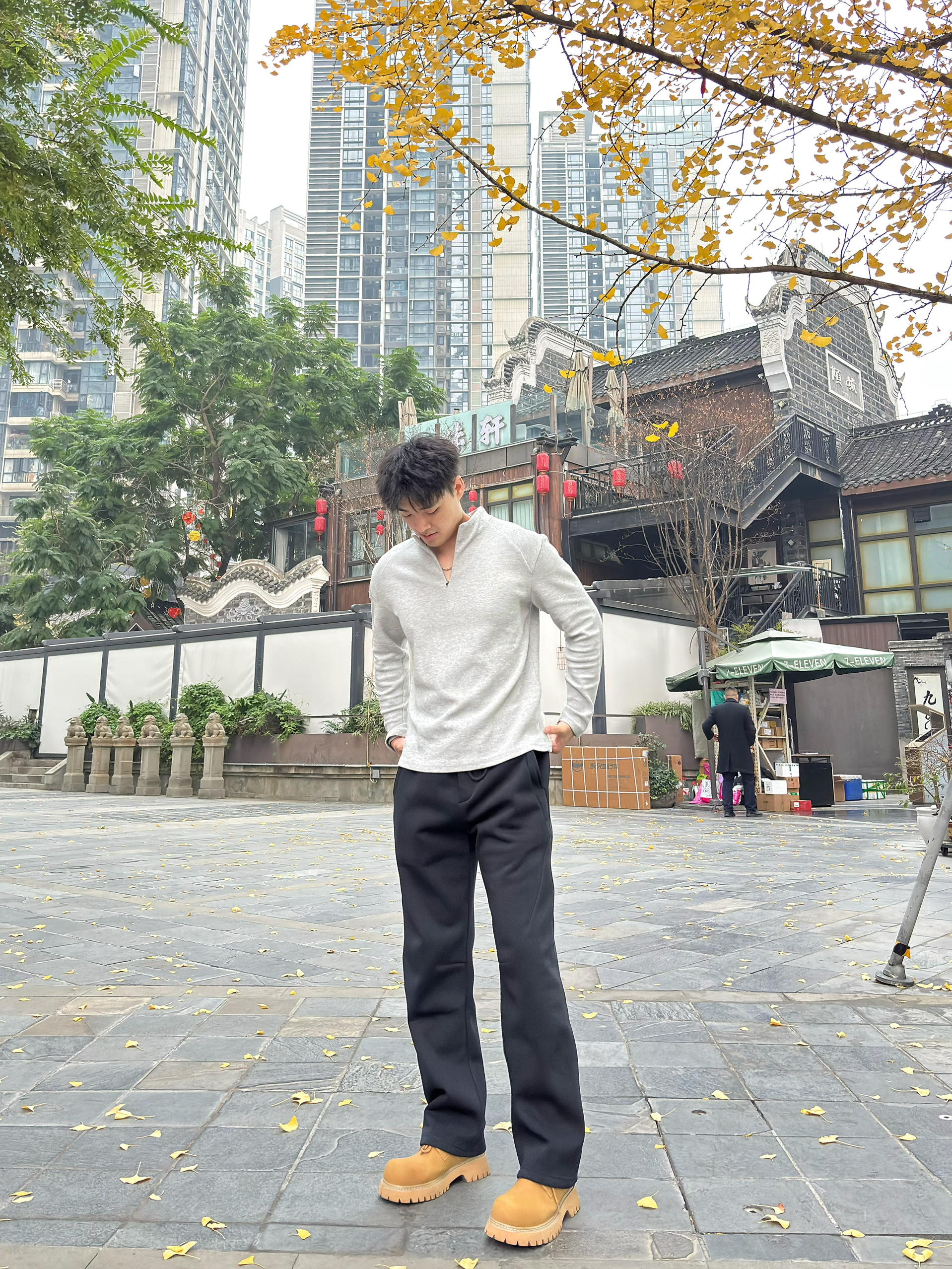 今天这套属于“随便穿穿但帅得很自然”那种! 浅灰色半拉链针织衫软软糯糯的,贴身穿贼舒服,还能搭各种外套; 黑色阔腿裤垂感绝了,遮腿型还显高,走路带风那种; 最后踩双大黄靴,直接把秋冬氛围感拉满,出门不用想搭配,套上就能走!