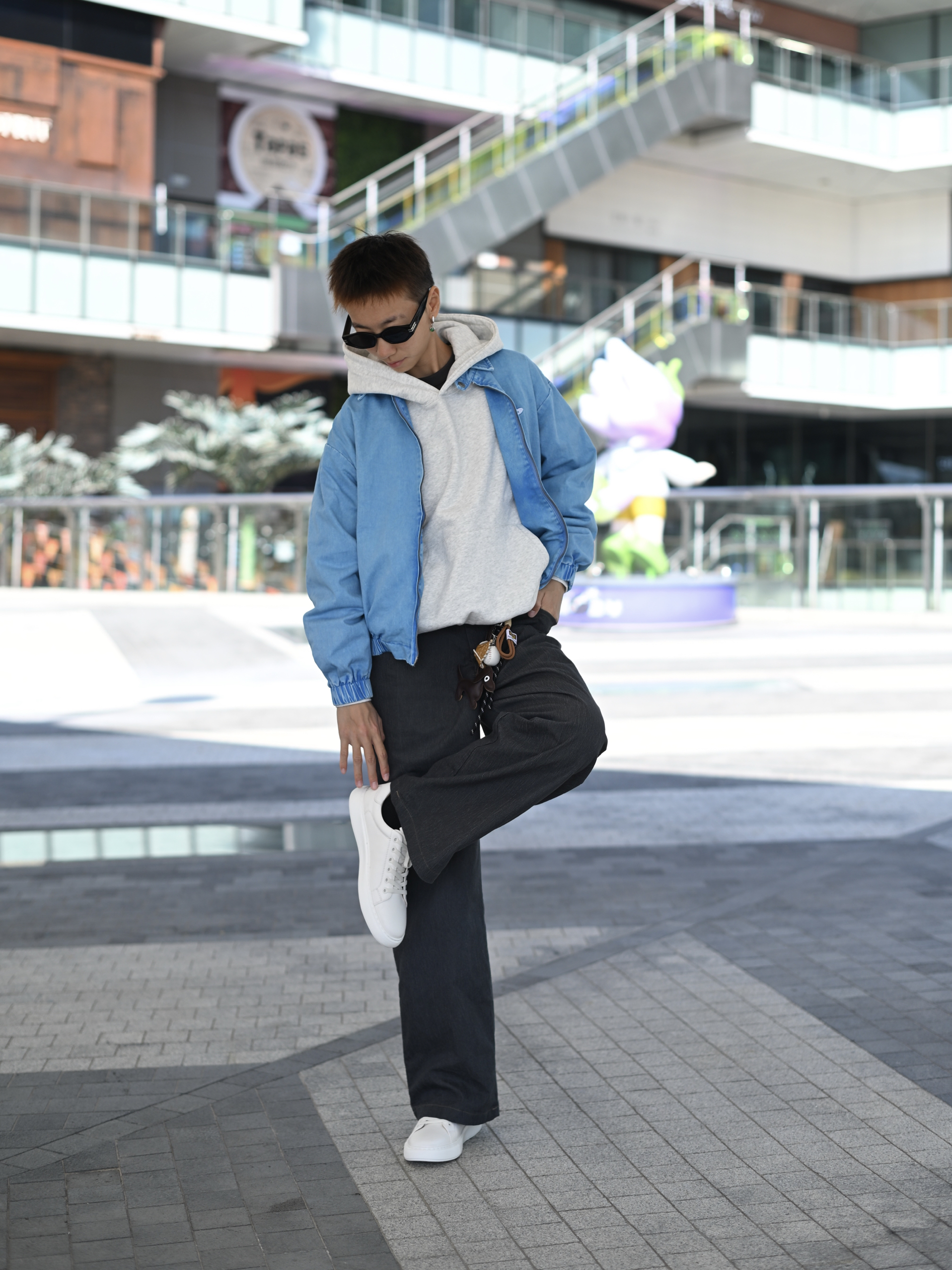 172CM|55KG 👔:m👖:m|👟:39码 降温季的衣橱年度穿搭总是需要一双能撑起各种风格的鞋 今日份上脚FED白色德训板鞋 百搭的嘞 上身牛仔外套 内搭卫衣 层次感拉满 下半身搭配西装阔腿裤穿出街头松弛感 行走轻便不笨重 Gogogo出街~