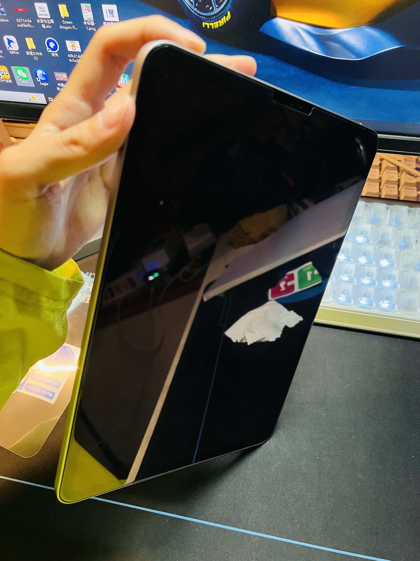 家人们,最近给我的iPad Pro安排了新钢化膜,体验感直接拉满!高清高透到我有时候都恍惚“我到底贴没贴啊”,追剧刷题画质一点没打折,沉浸感直接拉满🎬~9H硬度抗造得很,平时不小心磕到或者Pencil摩擦,都不用慌!还有那纳米疏油层,指纹一擦就没,滑动起来丝滑得像德芙纵享丝滑一样🤣~全屏覆盖没黑边,3D弧边也不翘边顶壳,我这种手残党都能靠自动吸附一次贴好,尊嘟很爱!不过要是价格能再美丽点就更完美啦...