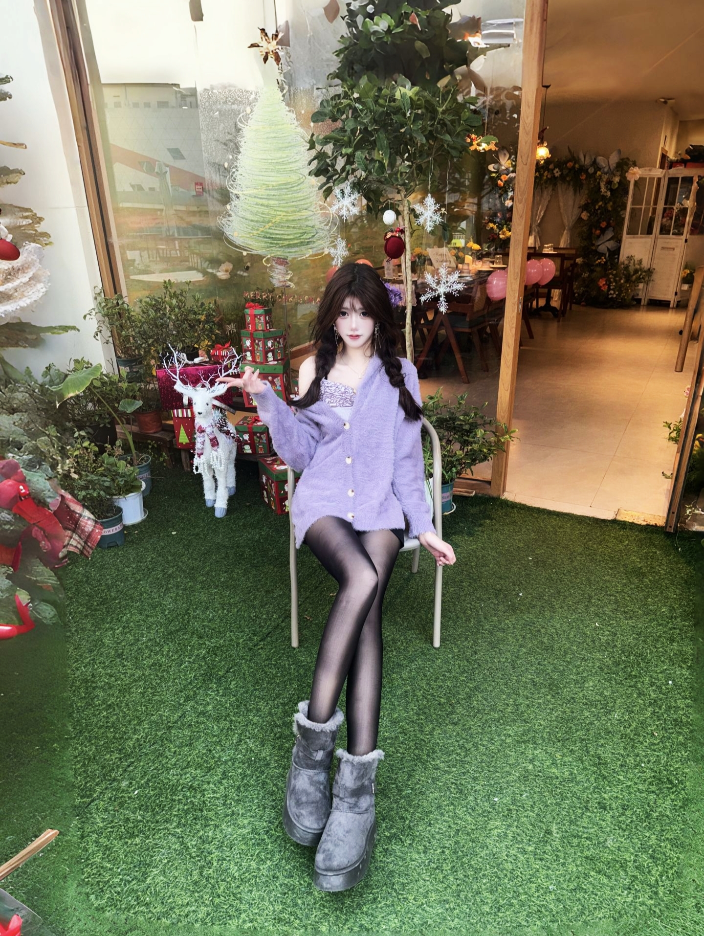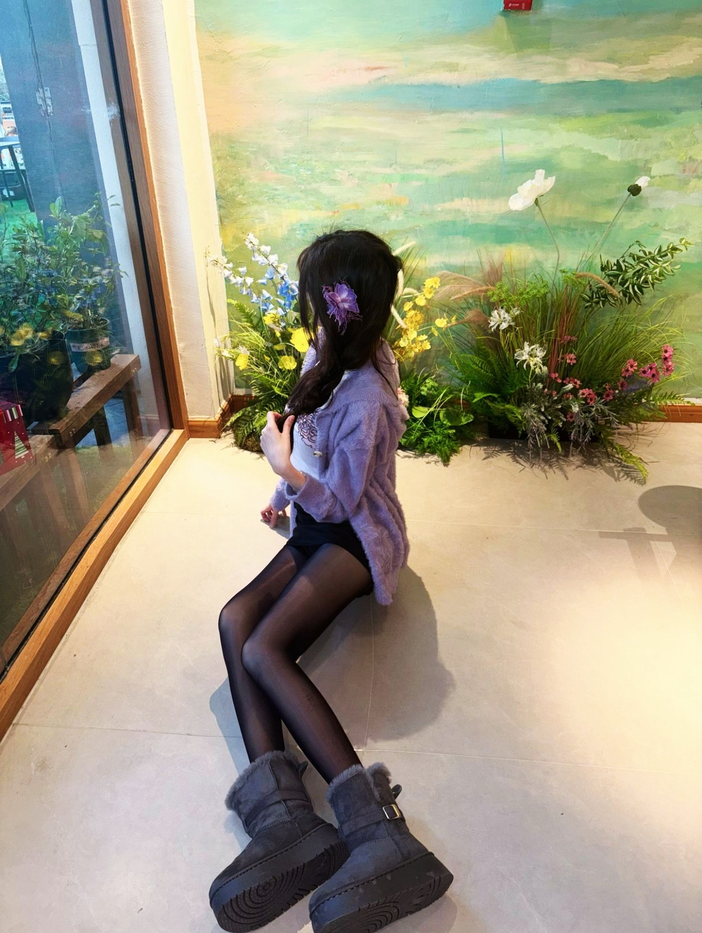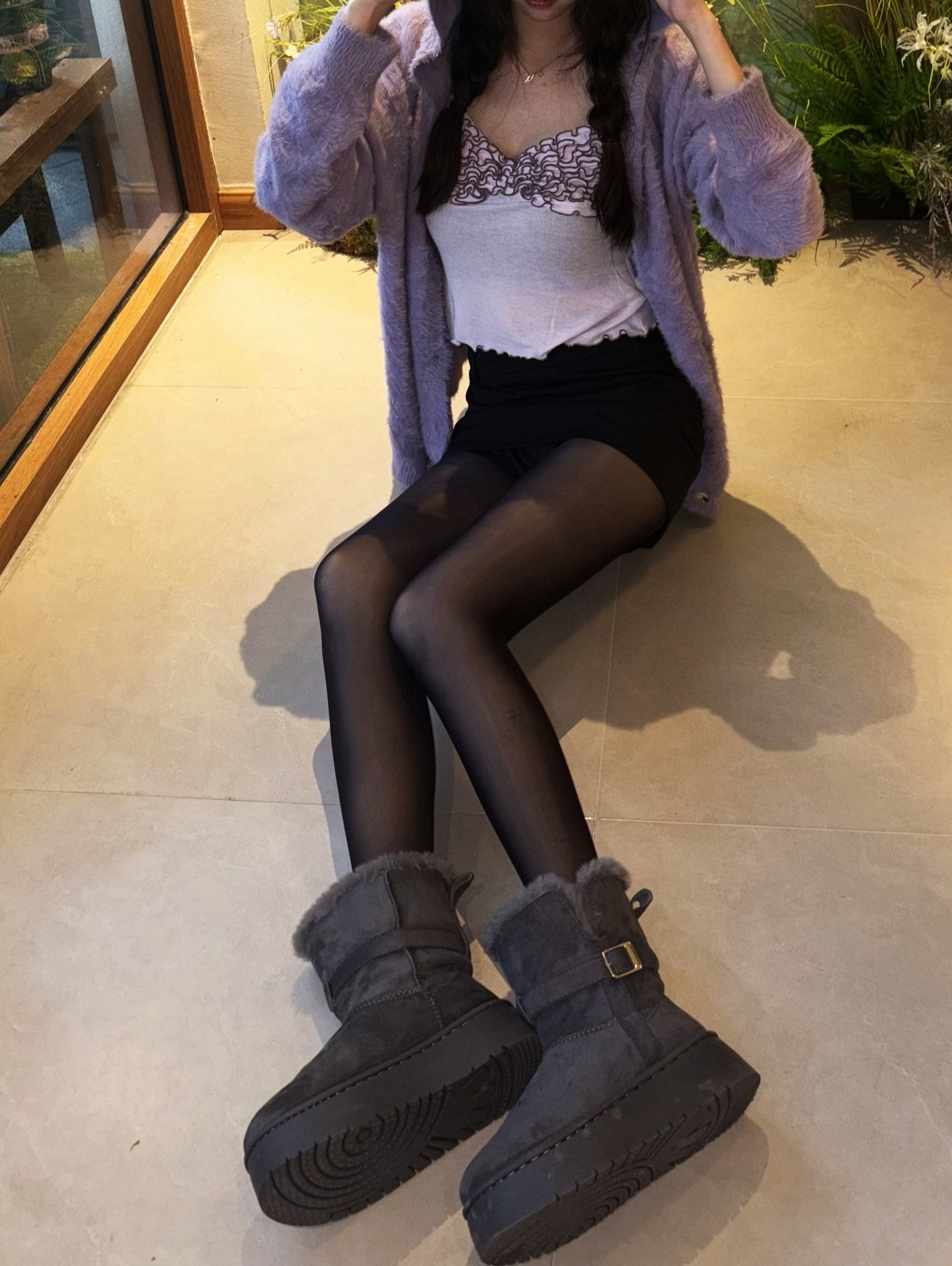 今天穿了一条紫色的连衣裙,然后穿了一双淡淡灰色的绵绵鞋,这双棉棉靴子穿着真的好舒服,天气冷的时候穿真的暖和了,又穿着很舒服,又很好看,性价比拉满了