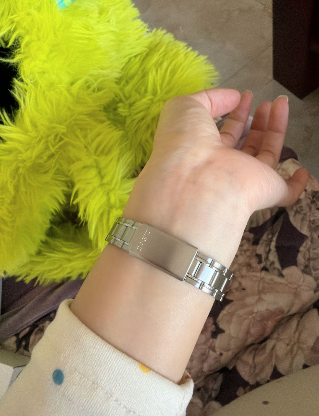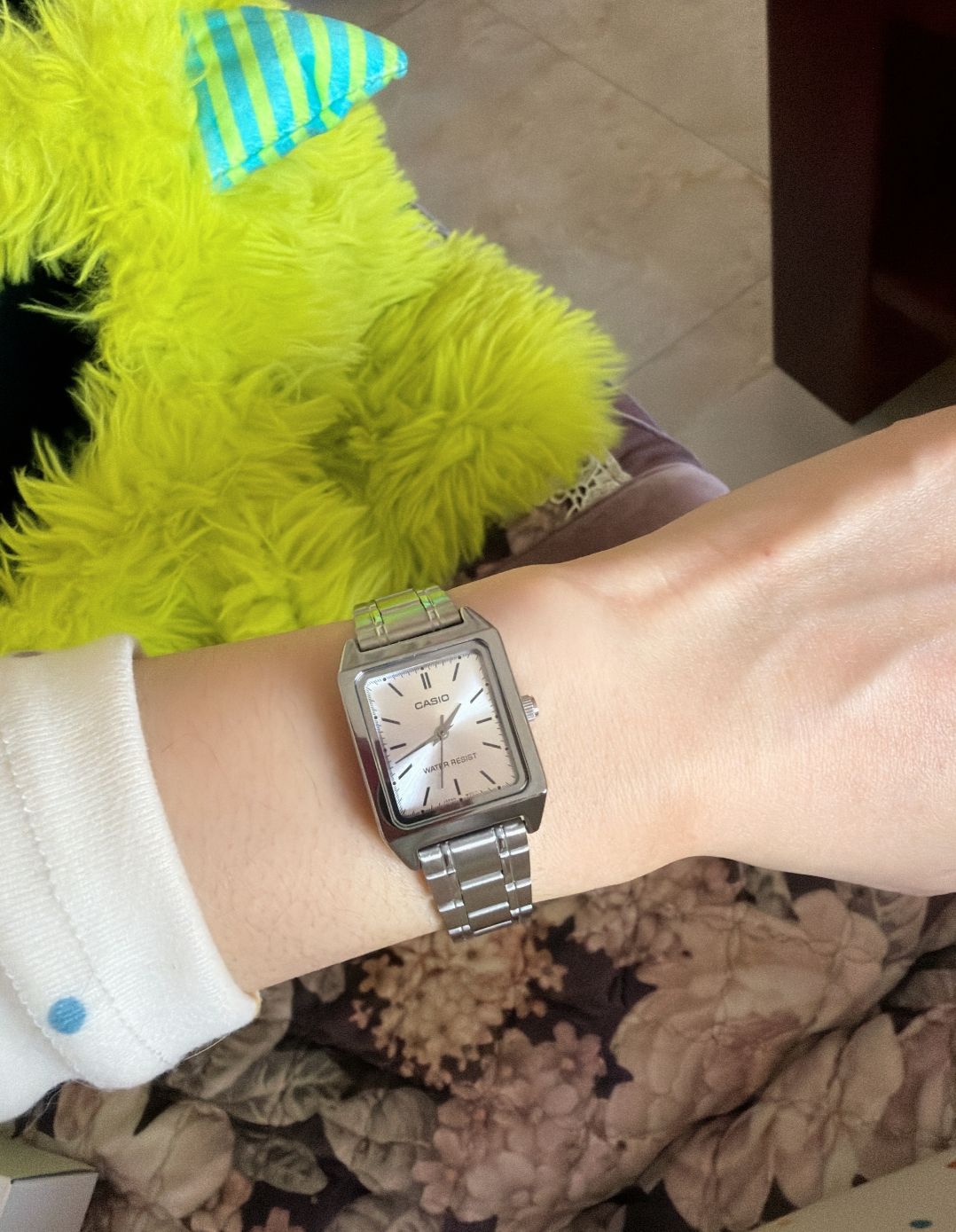 这块卡西欧方形小手表真的是近期挖到的“颜值+实用”宝藏!先从外观说起——复古方形表盘太戳审美了!银灰色金属表带带着细腻的哑光质感,不是廉价的亮面,搭配清透的浅银表盘,精致又不张扬,尺寸刚好适配女生手腕,戴上之后衬得手腕纤细又显气质,不管是搭连衣裙、T恤还是通勤衬衫,都有种“低调精致”的氛围感,属于那种“别人会偷偷问链接”的款式~ 佩戴感也完全超出预期:金属表带是分段式的,贴合手腕但不会勒,夏天...