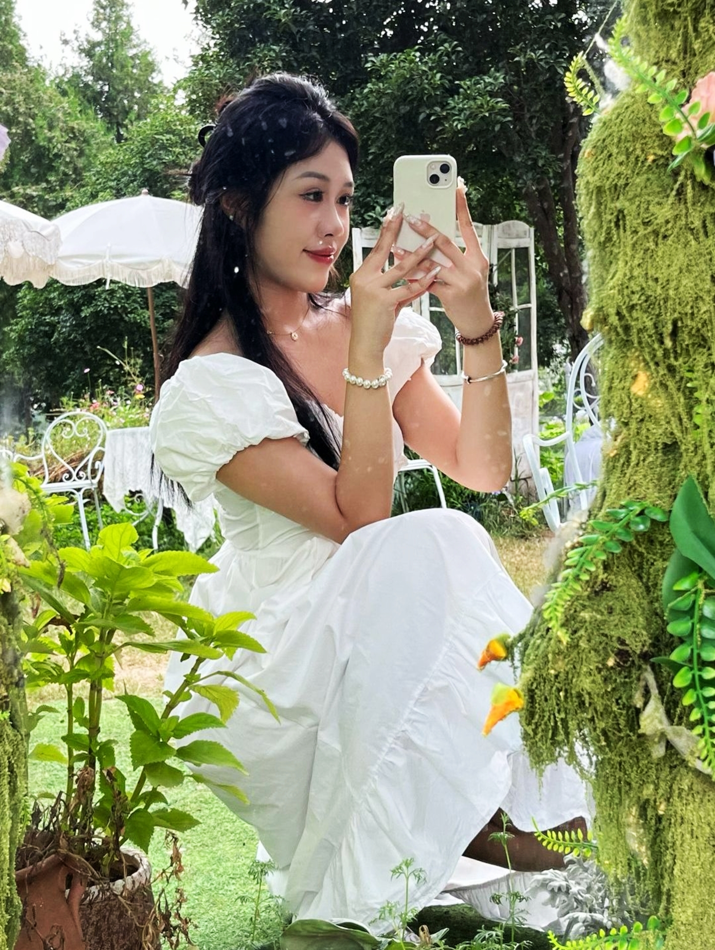 174的“海拔”+微胖身材 以前总觉得自己穿甜妹裙会像“偷穿小裙子的巨人”… 直到遇到这条白色泡泡袖长裙!! 💡高个甜妹穿搭小心机: 1. 裙长选脚踝以上5cm:刚好露出纤细脚踝,不会压身高,还能弱化“壮实感” 2. 收腰+大裙摆:收腰掐出腰线,大裙摆藏住胯宽/腿粗,134斤也能穿出轻盈感 3. 泡泡袖选短款+软材质:长泡泡袖会显肩宽,短款+软面料反而能增加甜美度 这条裙我穿的是均码(高...